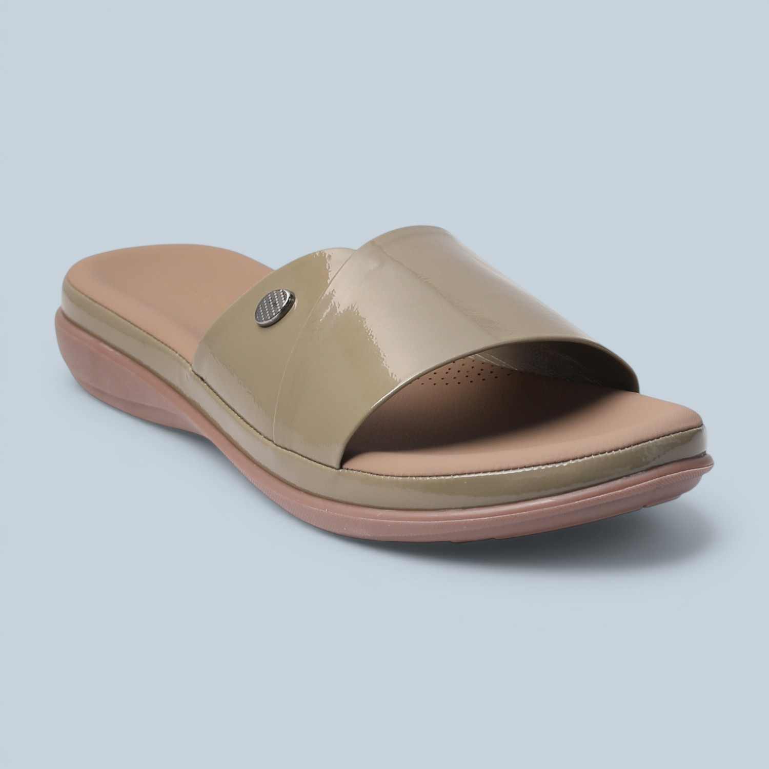 Step out in style and comfort with these chic slide sandals from MELONZ. These sophisticated slides feature a wide, single-band upper finished with a fashionable glossy look, making them a versatile and eye-catching addition to your casual and everyday wardrobe. Designed for ease and all-day wear, they feature a comfortable footbed and a stylish profile