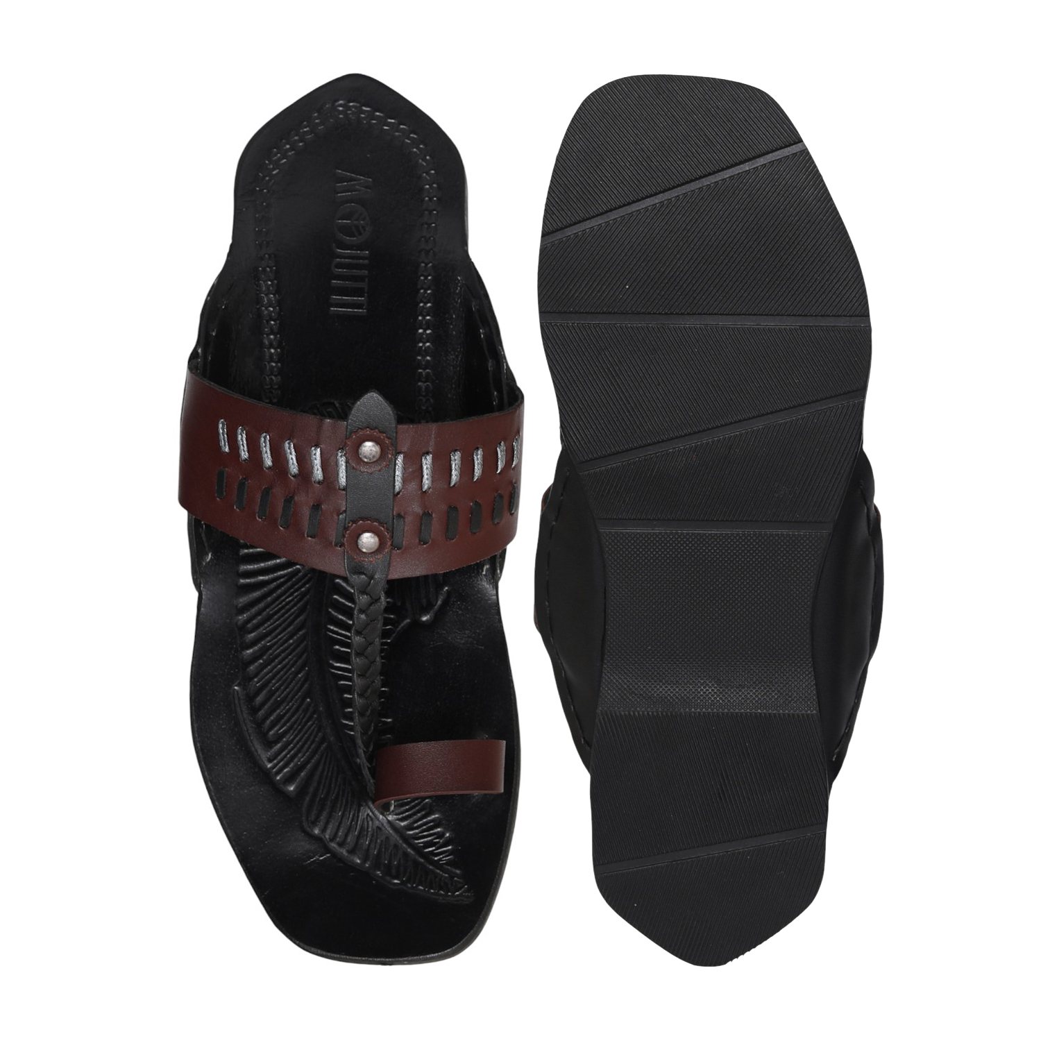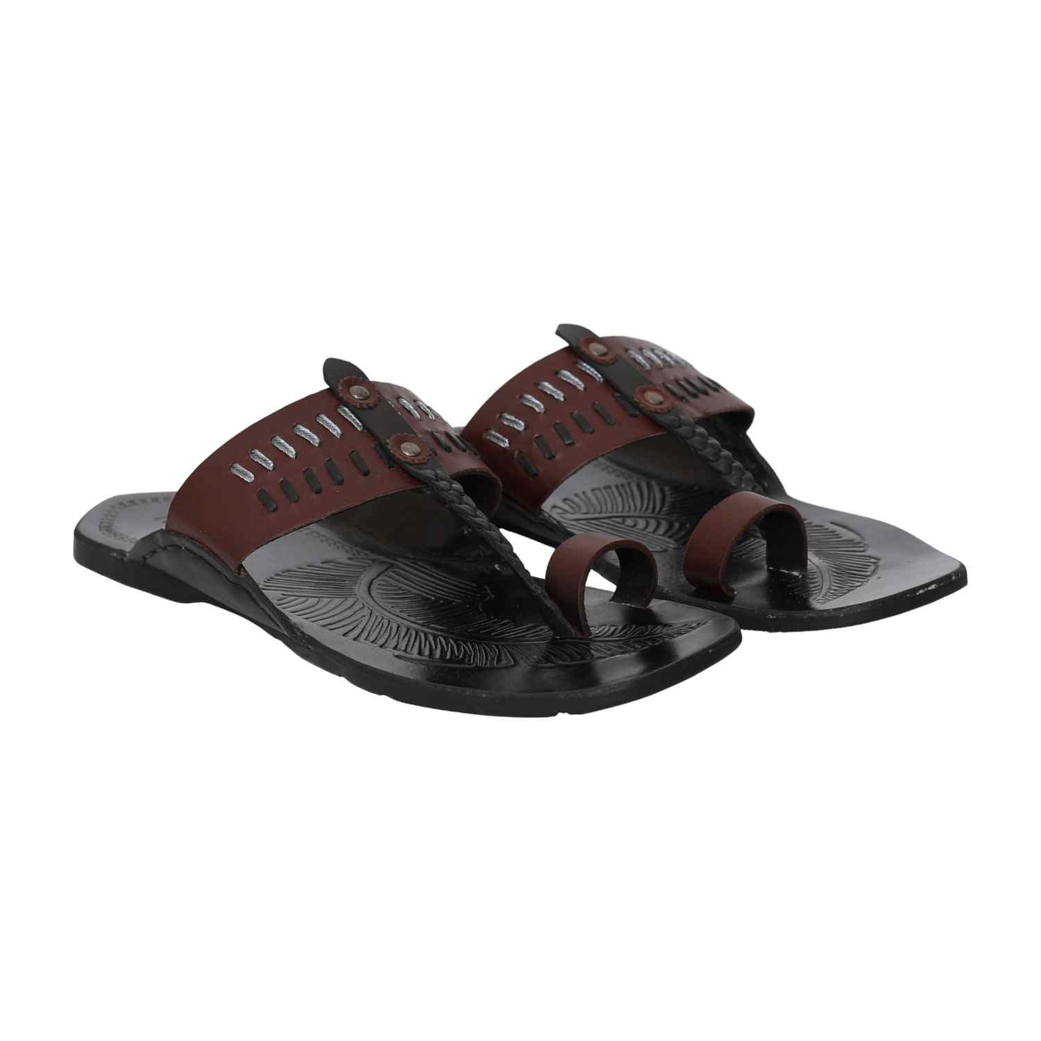Crafted with timeless appeal, this pair blends rich auburn tones with detailed etched patterns for an authentic, handcrafted feel. The sturdy sole and traditional strap design offer both comfort and style, making it a perfect pick for ethnic wear or everyday casuals. Designed to exude rustic elegance while ensuring long-lasting wear.