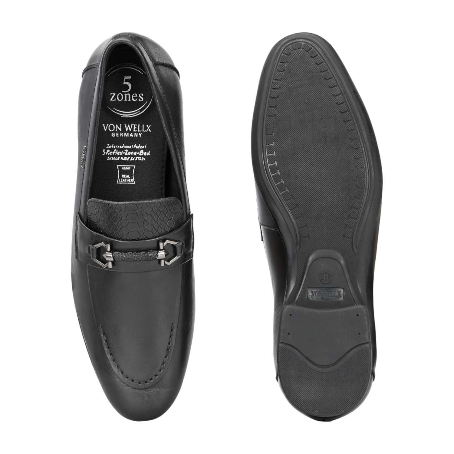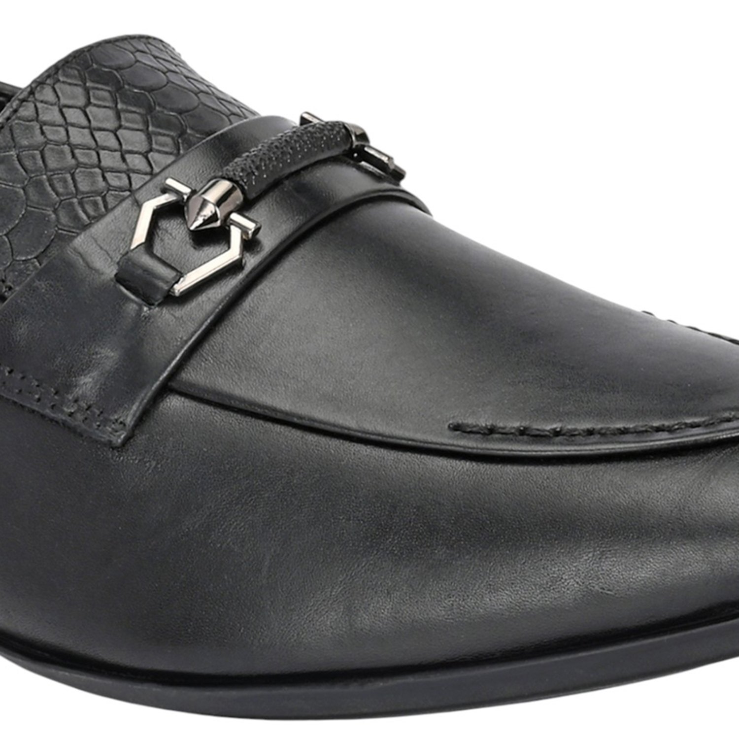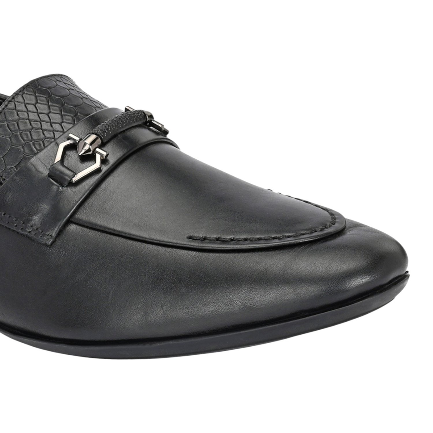 Introducing a modern and refined pair of Men's Black Bit Loafers. These slip-on shoes are crafted from smooth black leather, offering a polished look perfect for business-casual and semi-formal occasions.