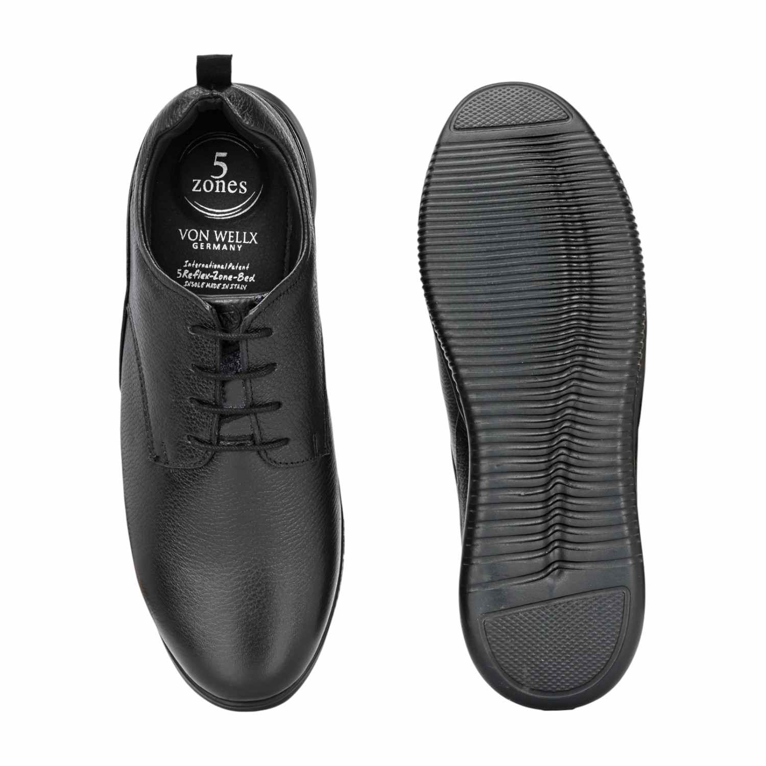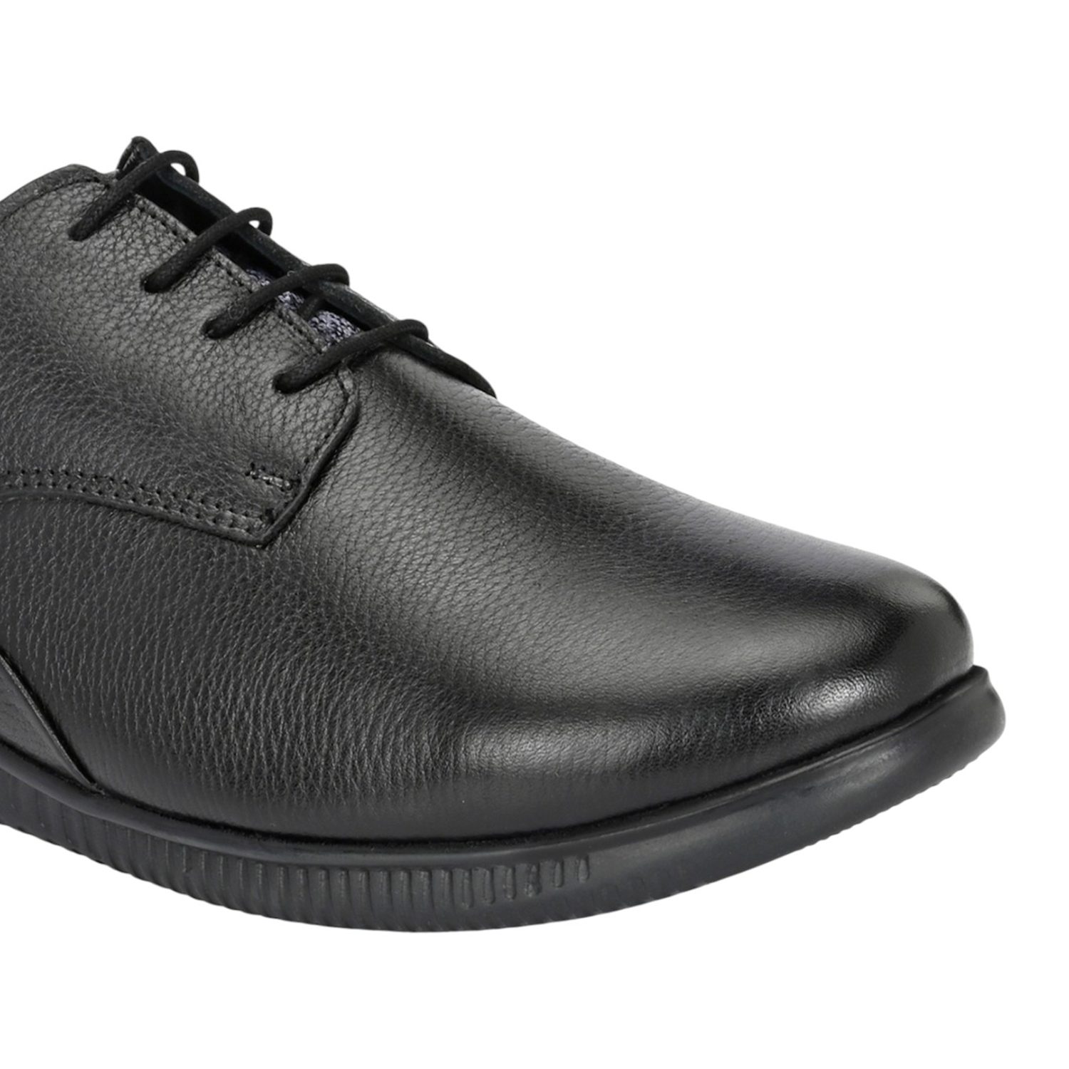 Introducing a sophisticated blend of formal style and everyday comfort: Men's Black Comfort Derby Shoes. This lace-up shoe offers a contemporary take on the classic Derby, featuring an open lacing system that is generally more comfortable and easier to adjust than an Oxford.