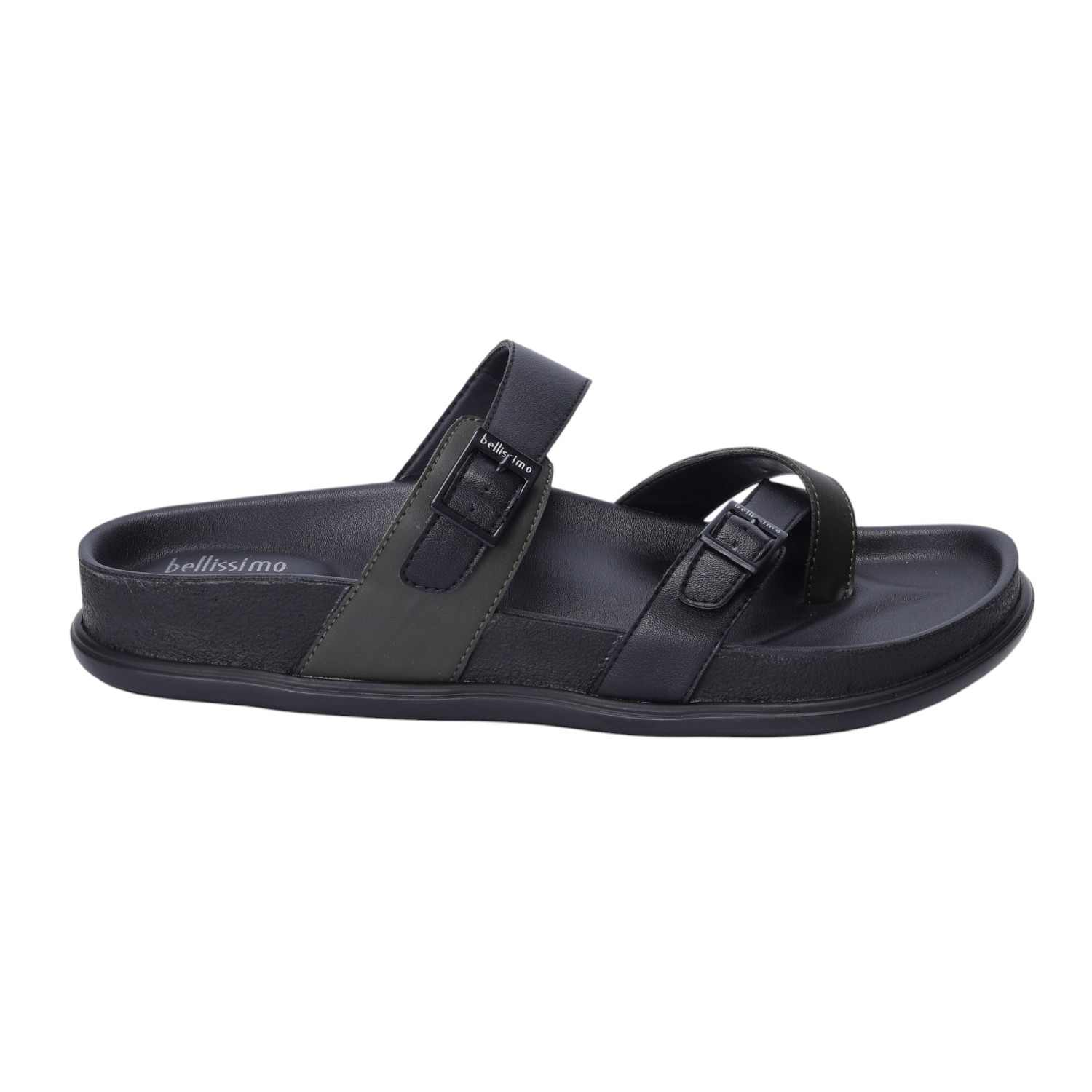 Upgrade your everyday footwear with these Bellissimo men dual strap chappal, designed for maximum comfort and style. Featuring a sleek black finish with adjustable buckled straps, these slip-on chappal provide a secure fit and a contemporary look. The ergonomically contoured footbed offers superior cushioning and arch support, making them ideal for all-day wear.