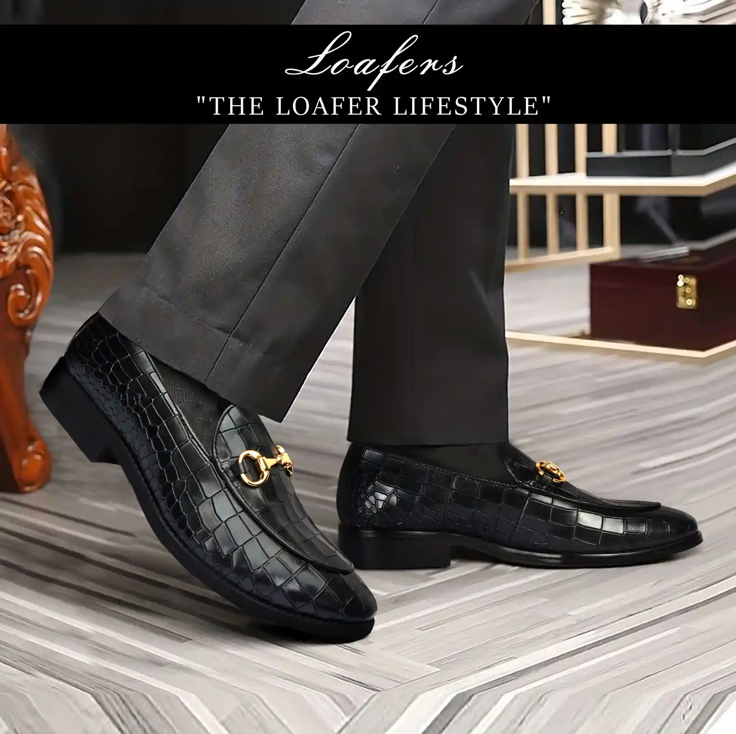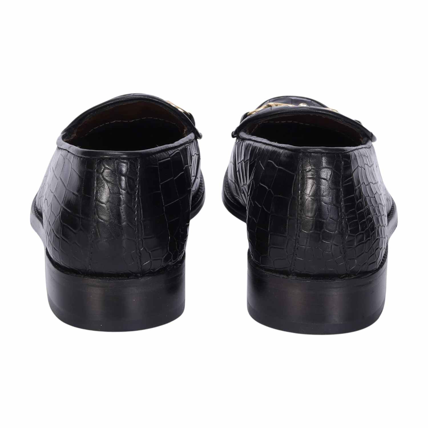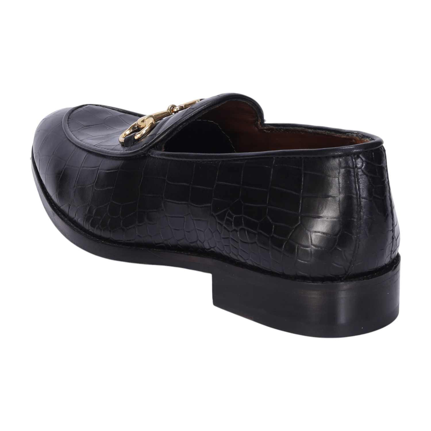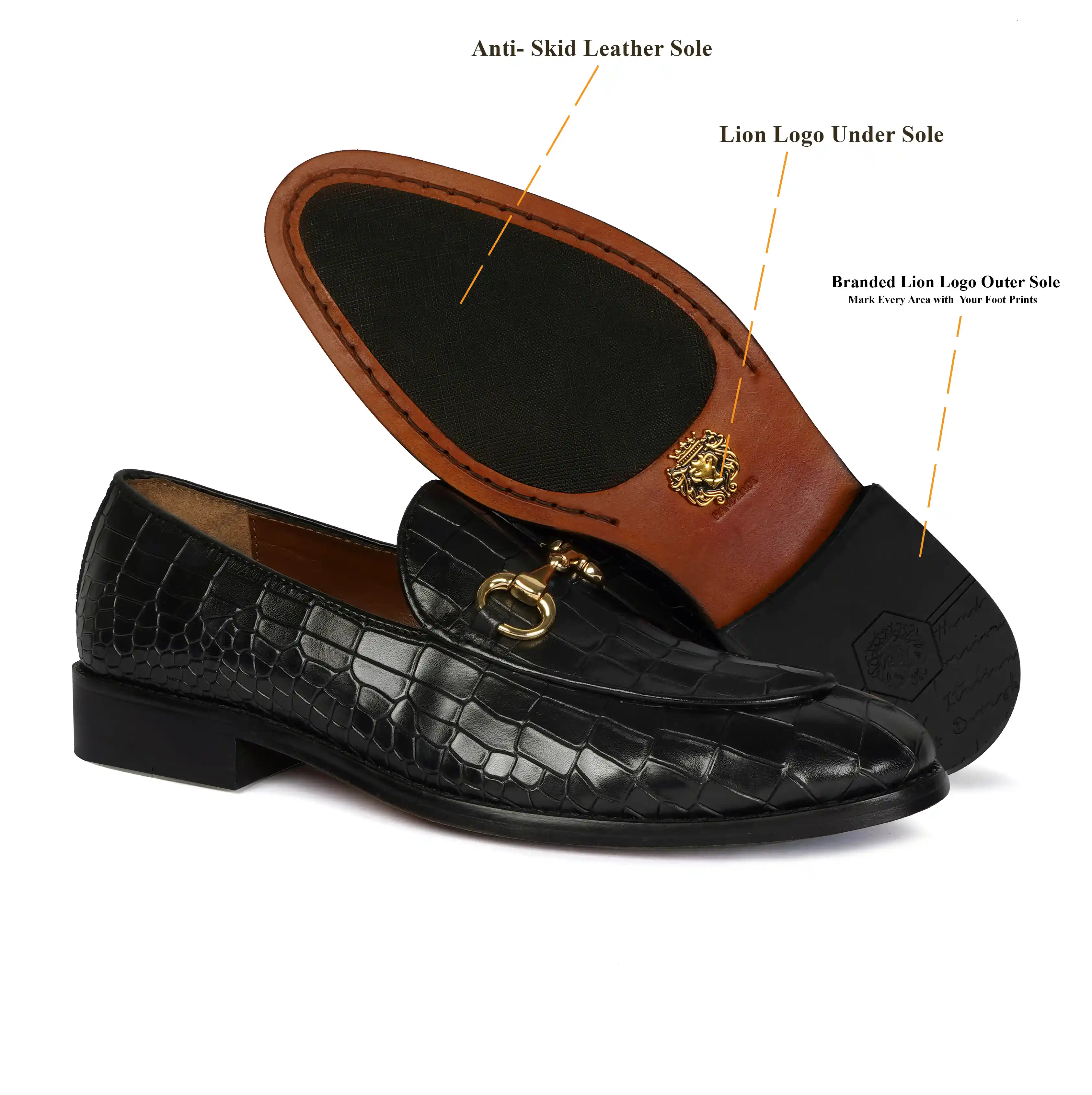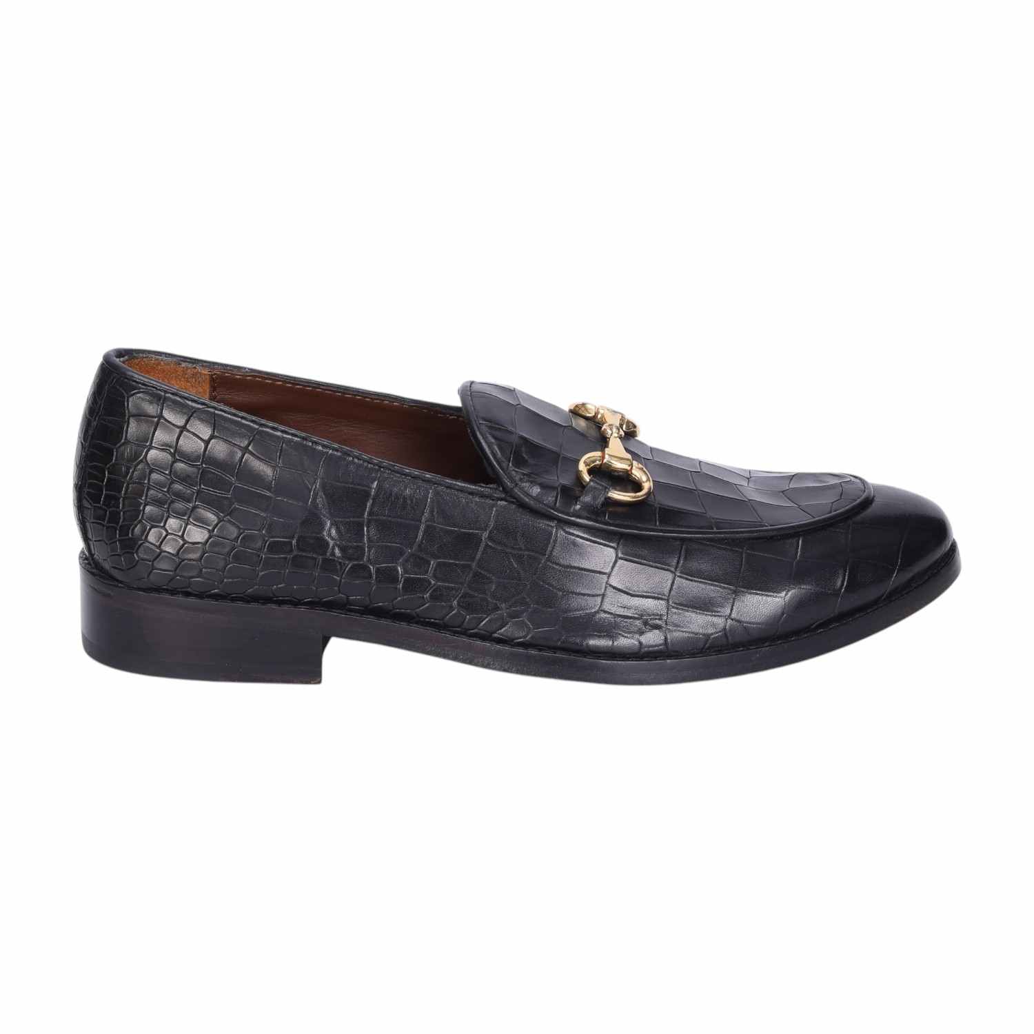 Make your everyday special with these classy men's loafers. It is the best shoe category for any men's closet. Loafers remain the favorite style of shoes, as they are convenient to use and spell minimum fuss. The Black Deep Cut Croco Leather shoe looks lavishing with metal horse-bit on it. And when they are made of exemplary fitting and finish as that of the brand Brune & Bareskin, you can be sure that the shoes are nothing short of excellence. These black leather shoes, with a perfectly round apron toe design, have a very rich appearance. This is a must-have pair in your footwear collection.