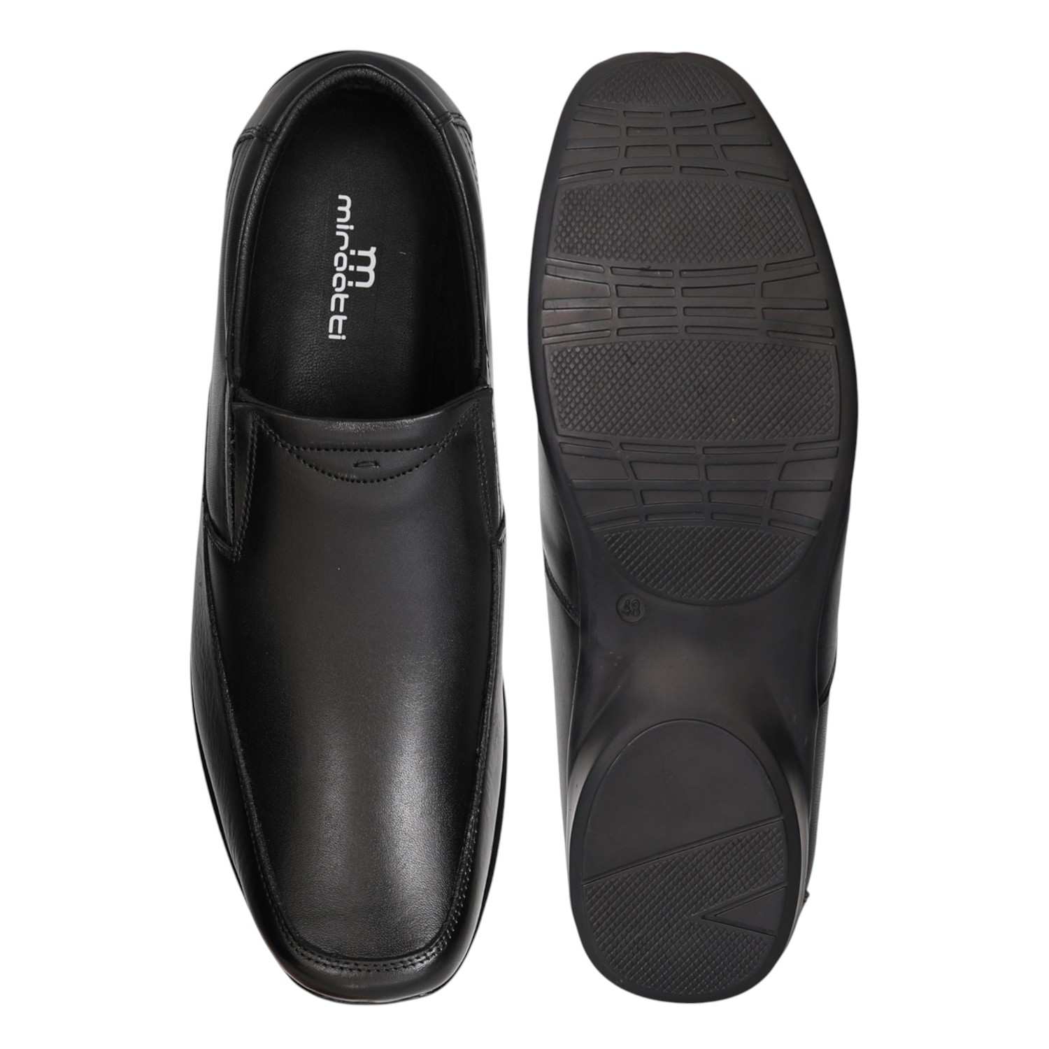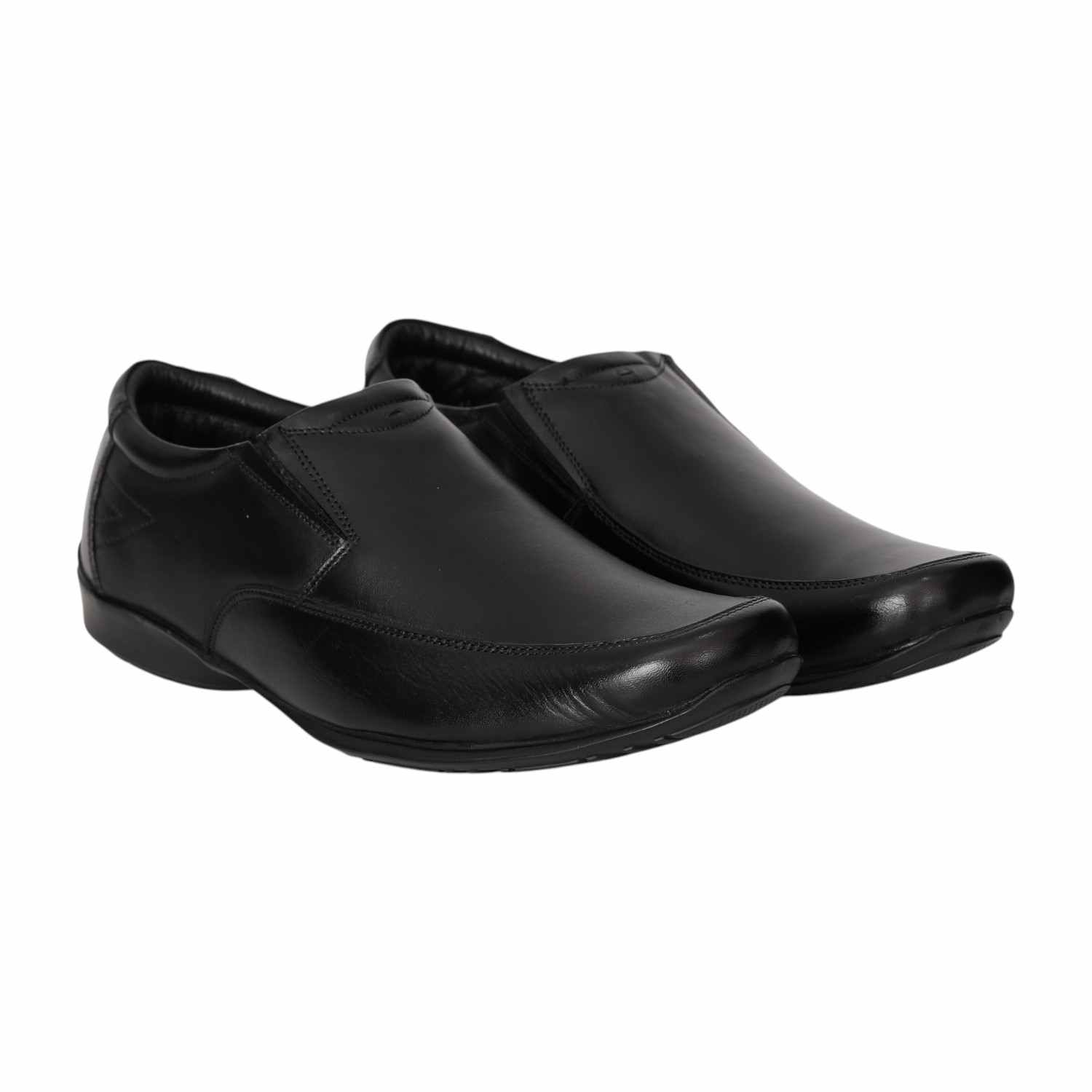 A sleek pair of black slip-ons with a glossy finish, combining timeless style with modern ease. Built for comfort and durability, they elevate both professional and evening wear.