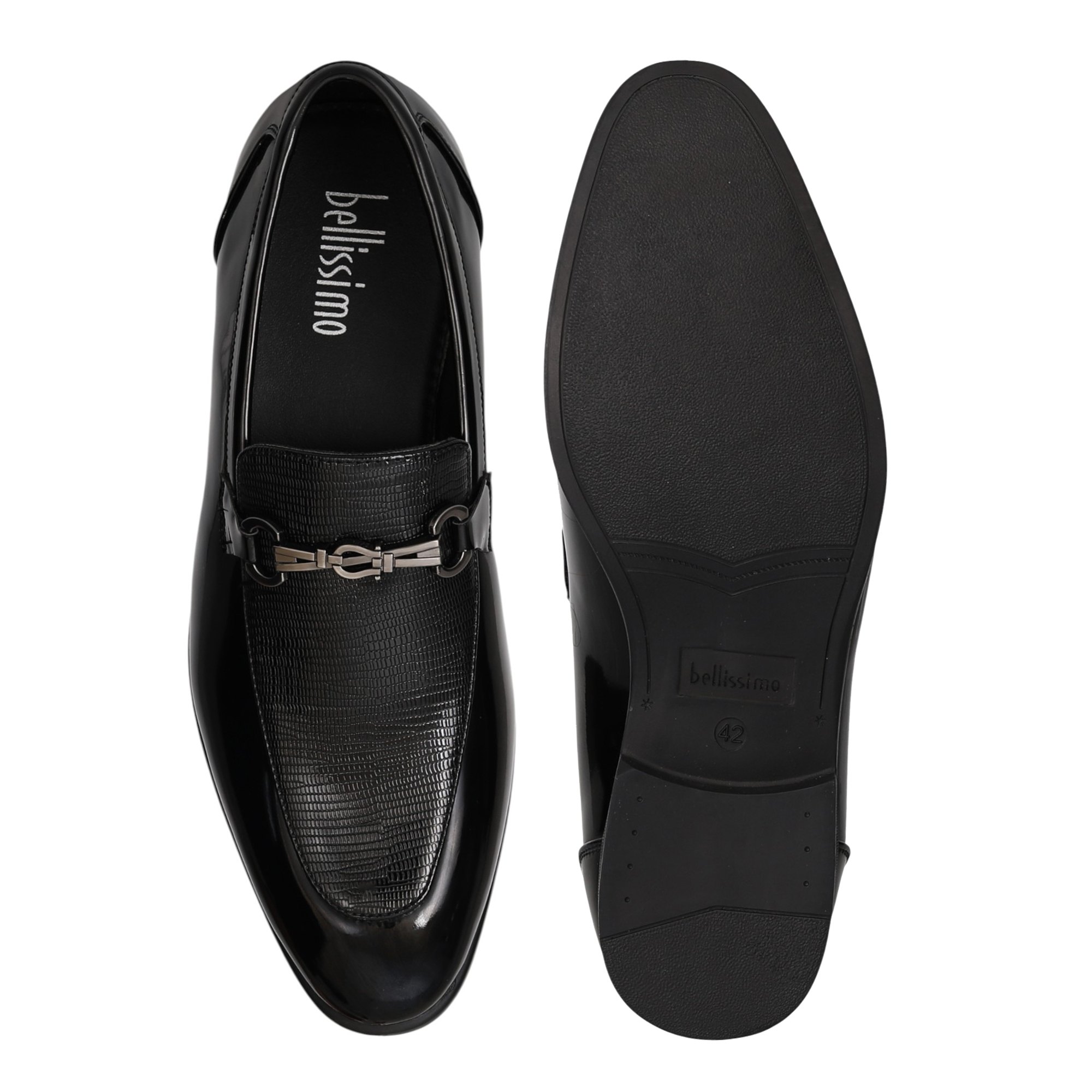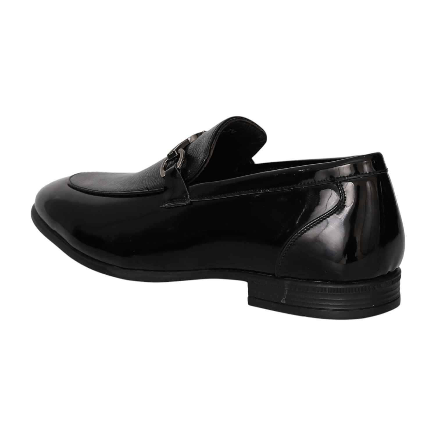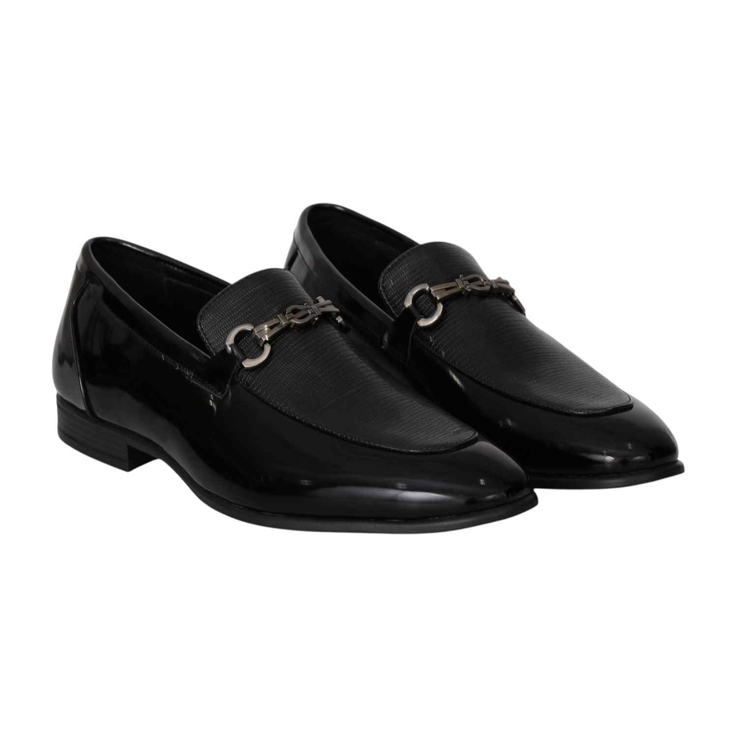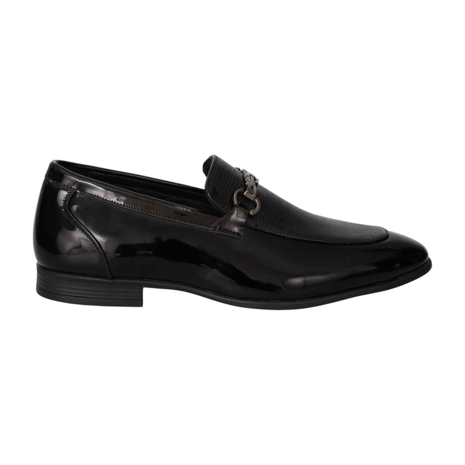 Crafted with a sleek glossy finish and textured upper, these loafers bring together modern sophistication and timeless charm. The polished design with a metallic accent makes them a perfect choice for formal events, office wear, or evening occasions.
