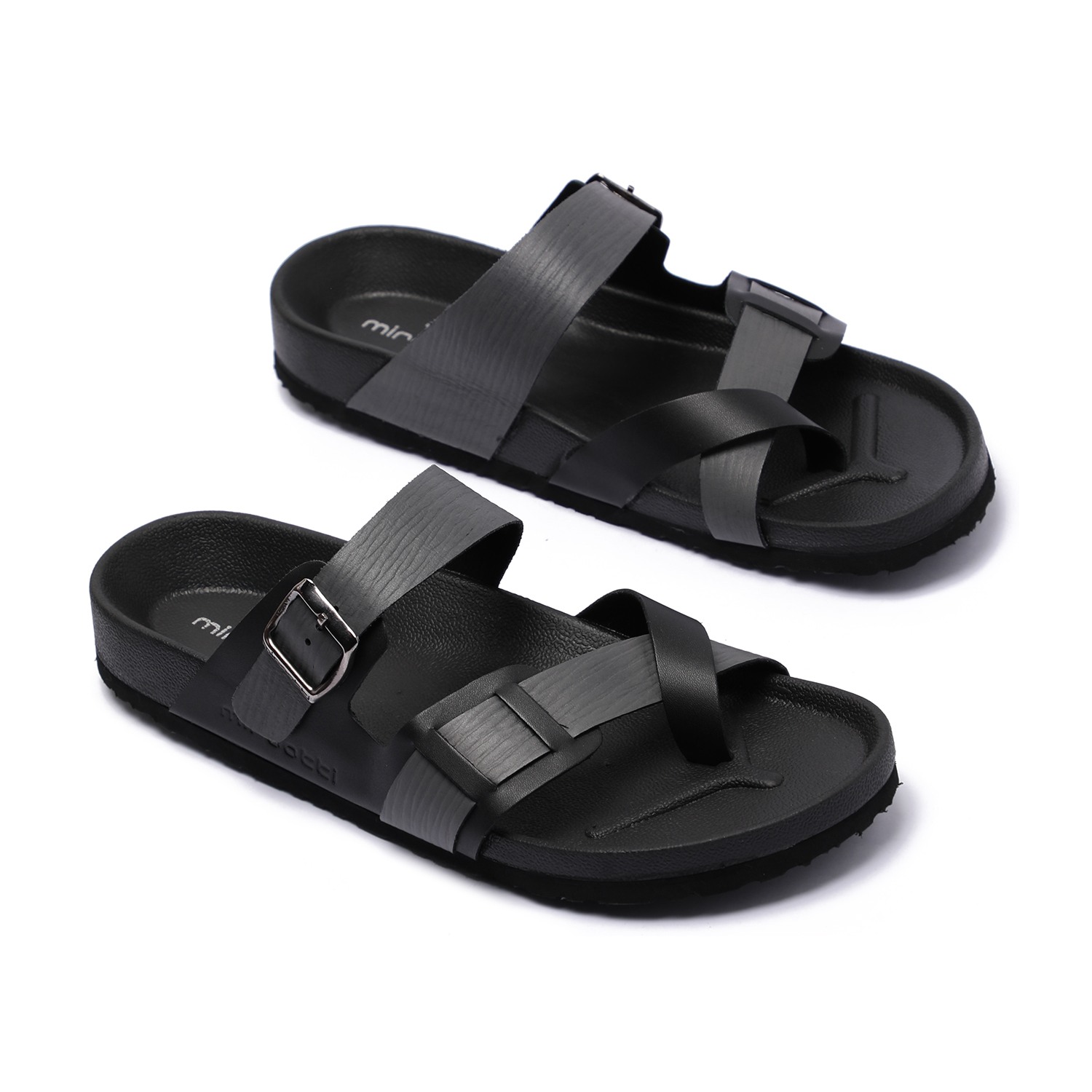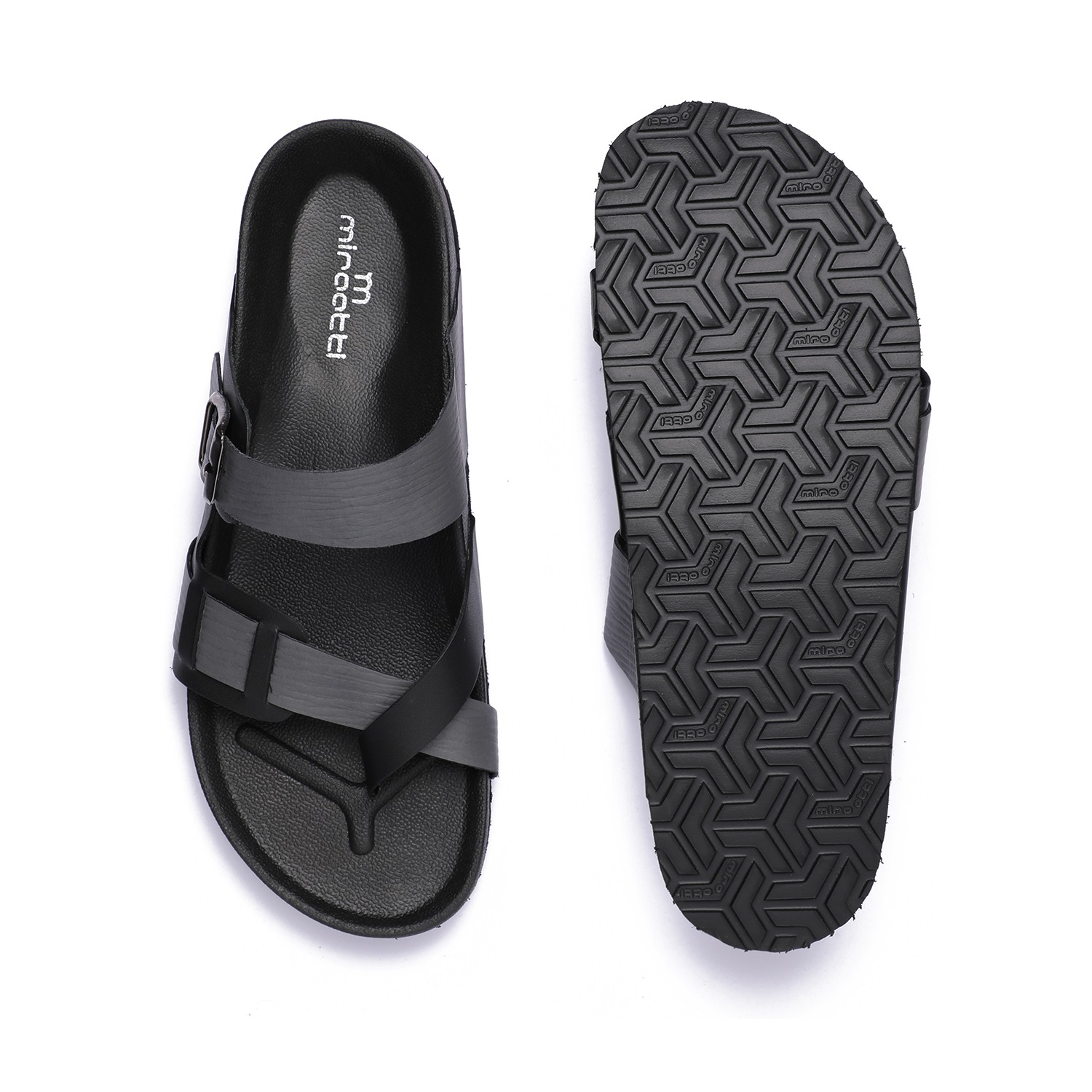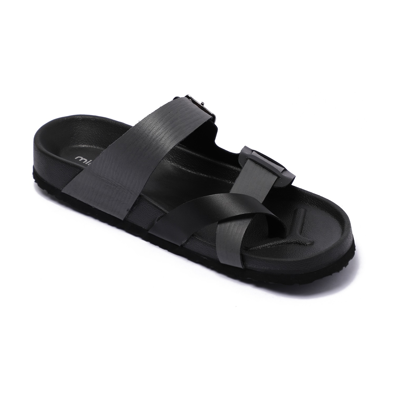 Step into effortless style with these sleek black slip-on chappal for men. Featuring a modern cross-strap design with a functional buckle for a custom fit, these chappal offer both fashion and function. The contoured footbed ensures optimal comfort, while the durable sole provides excellent grip for everyday use.