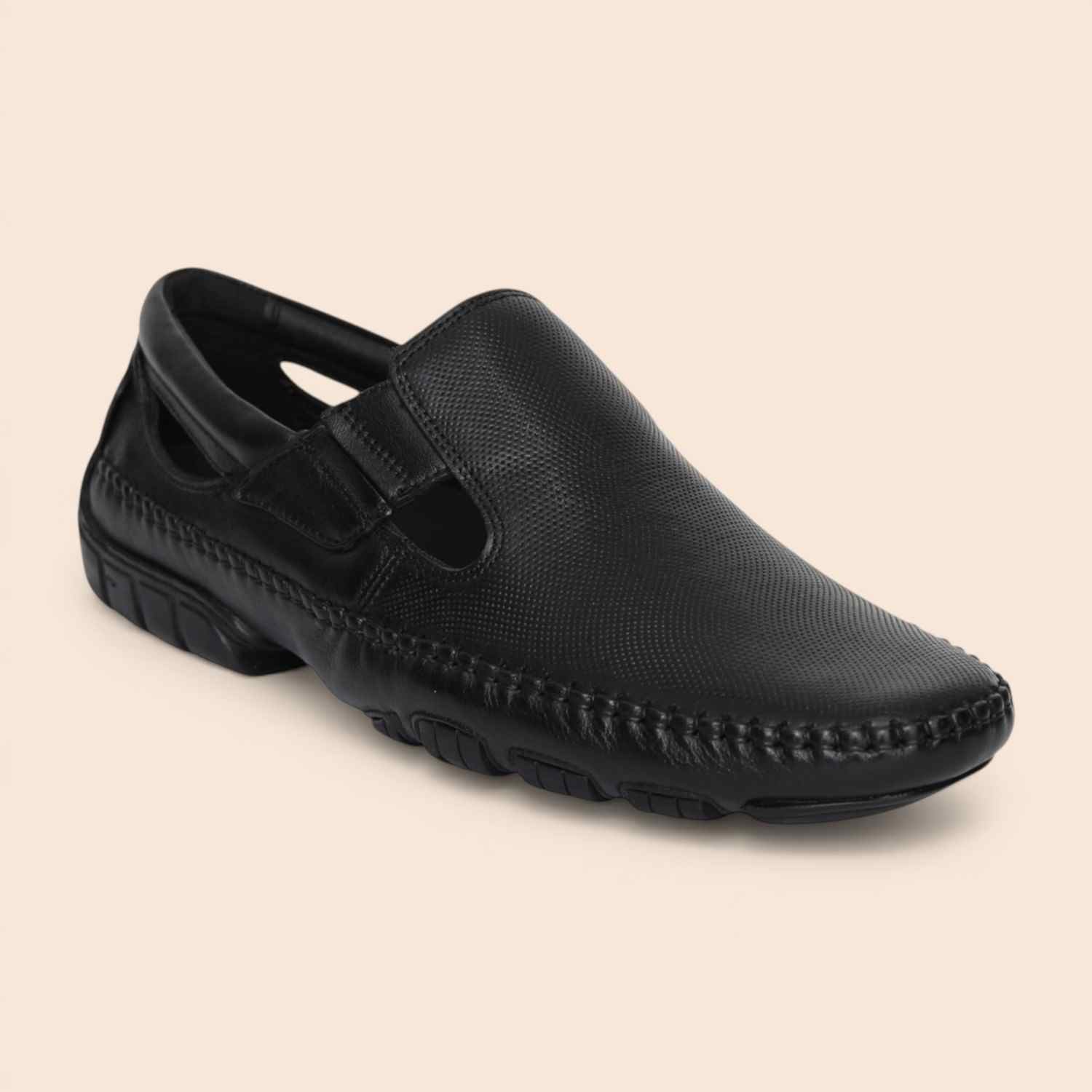 These black slip-on work shoes offer a clean and professional look for daily office wear. The plain finish and closed structure make them suitable for formal settings, while the slip-on style adds convenience for everyday use.