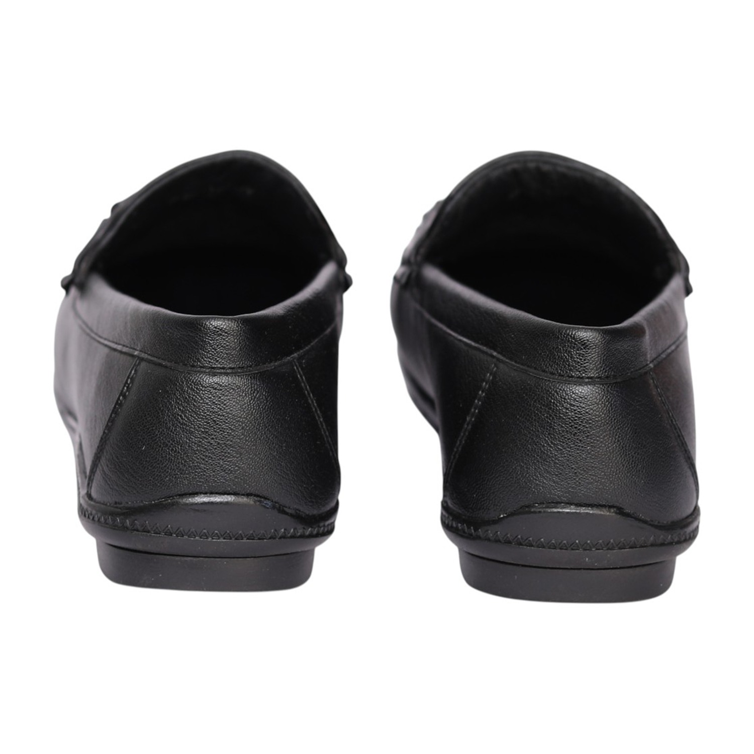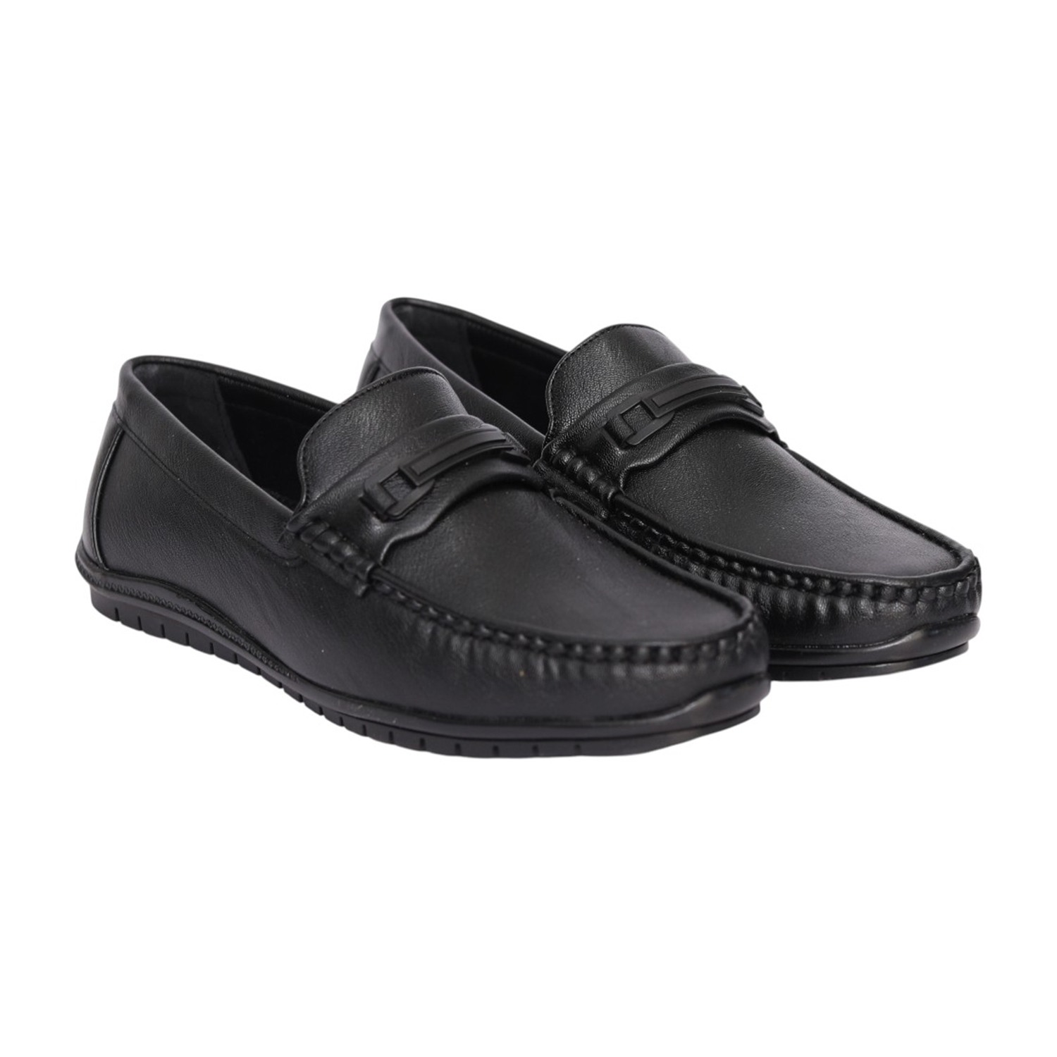 Sharp, structured, and effortlessly refined — the Black Stratton Strap Loafers are built for confident formal dressing. Featuring a sleek silhouette with a bold strap detail across the vamp, this pair balances modern minimalism with classic craftsmanship. The stitched apron enhances durability and visual depth, while the slip-on construction ensures convenience without compromising on polish. Ideal for office wear, formal events, and elevated everyday styling.