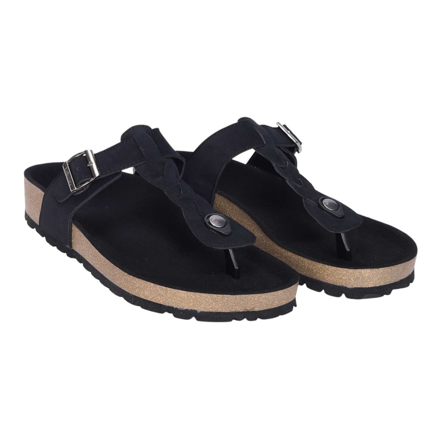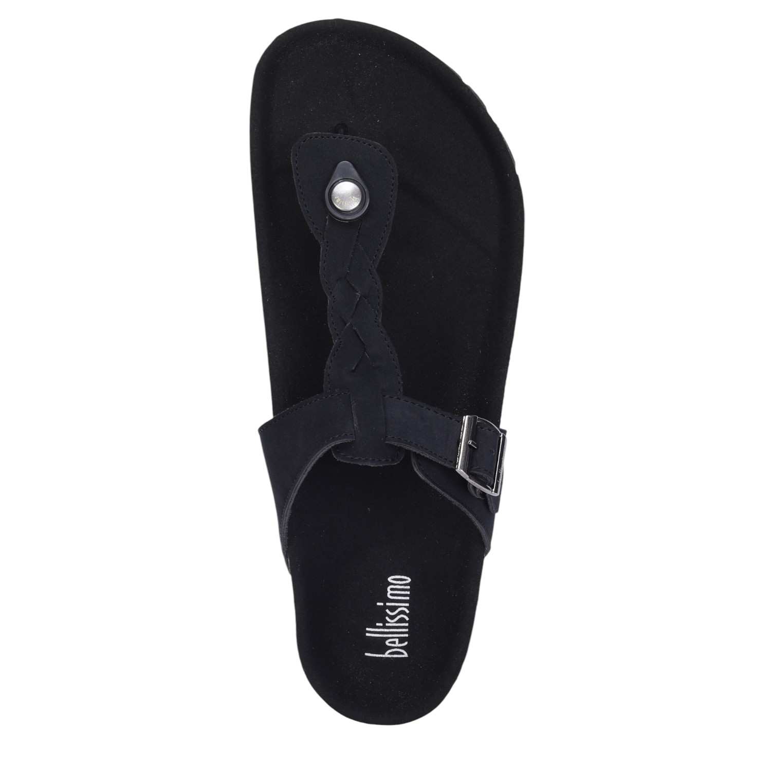 Add a touch of elegance to your casual footwear with these black T-strap Chappal from Bellissimo. Featuring a stylish braided upper with a decorative button accent and adjustable buckle strap, these sandals blend fashion with comfort. The cushioned footbed ensures all-day wearability