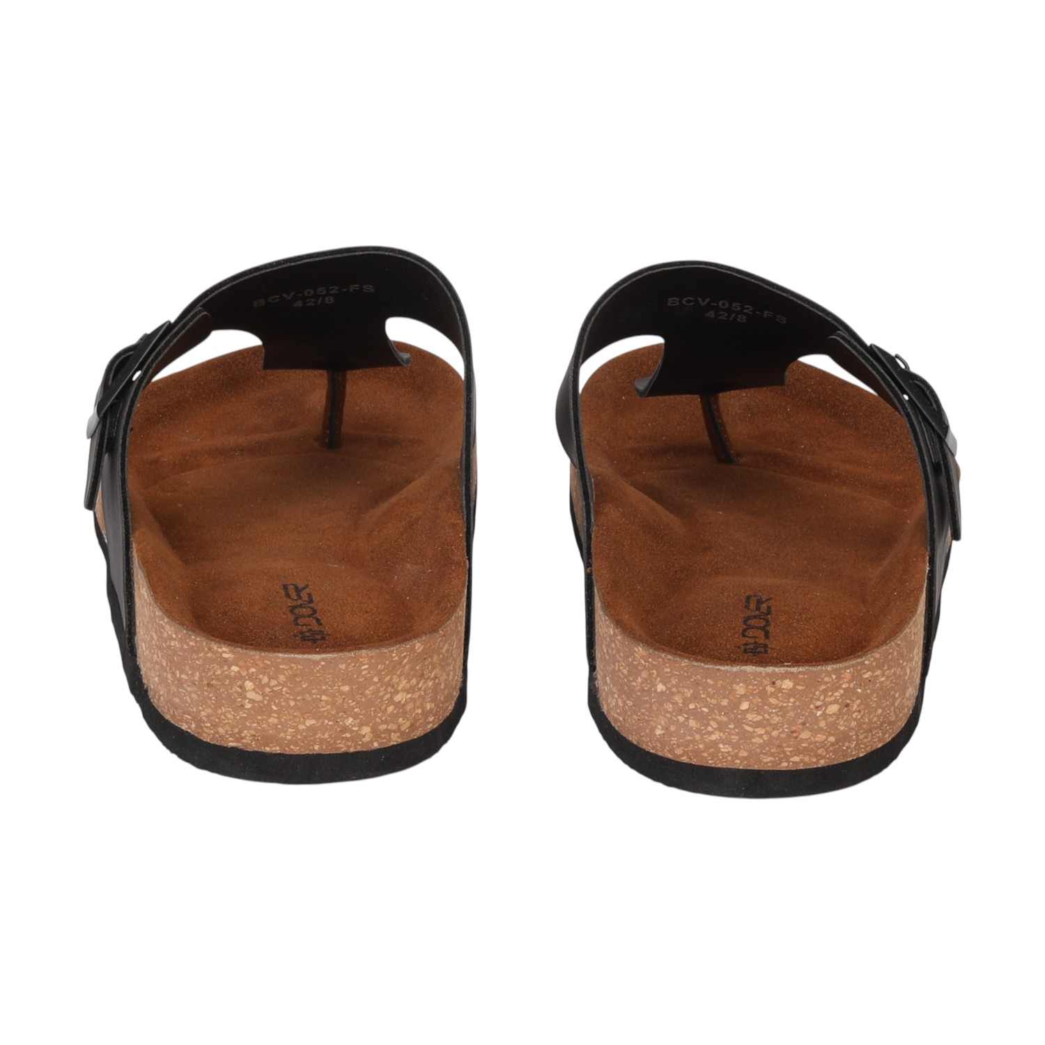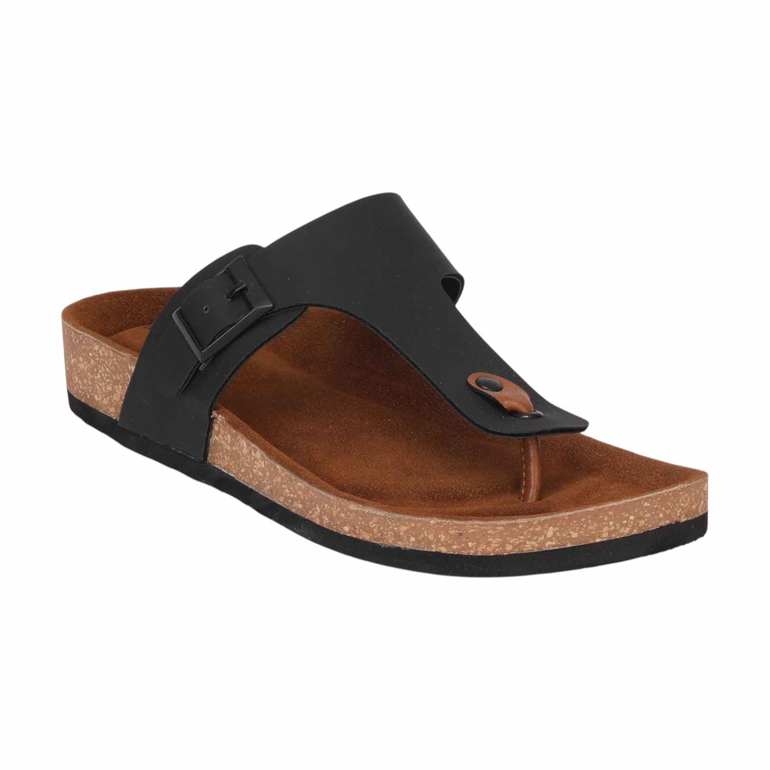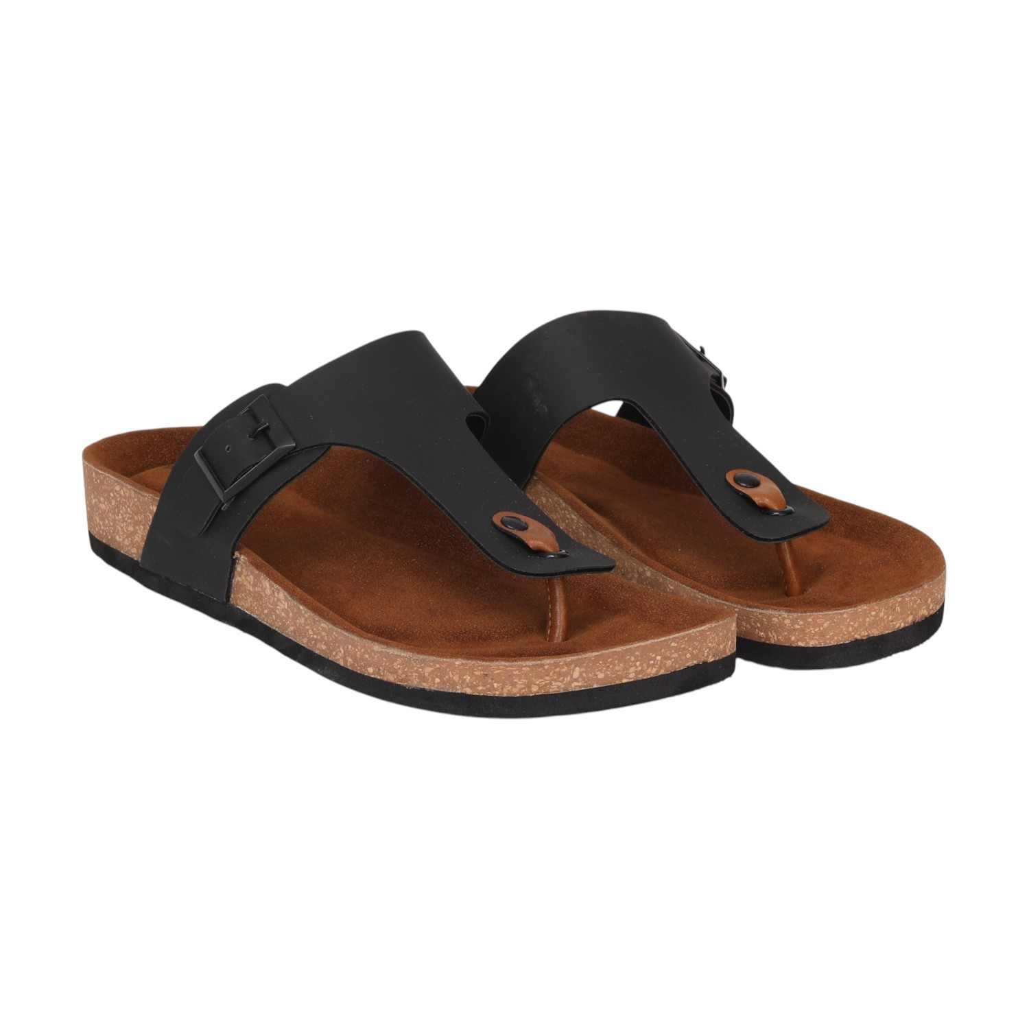 Step up your comfort game with this Men’s Black T-Strap Chappal, designed with a modern edge and everyday functionality. Featuring a sleek T-strap design with a side buckle closure, this chappal offers a snug and adjustable fit. The soft suede-finish footbed is paired with a lightweight cork-textured sole, delivering superior cushioning and shock absorption for all-day ease.
