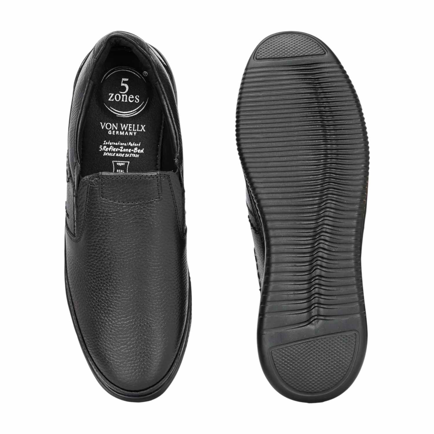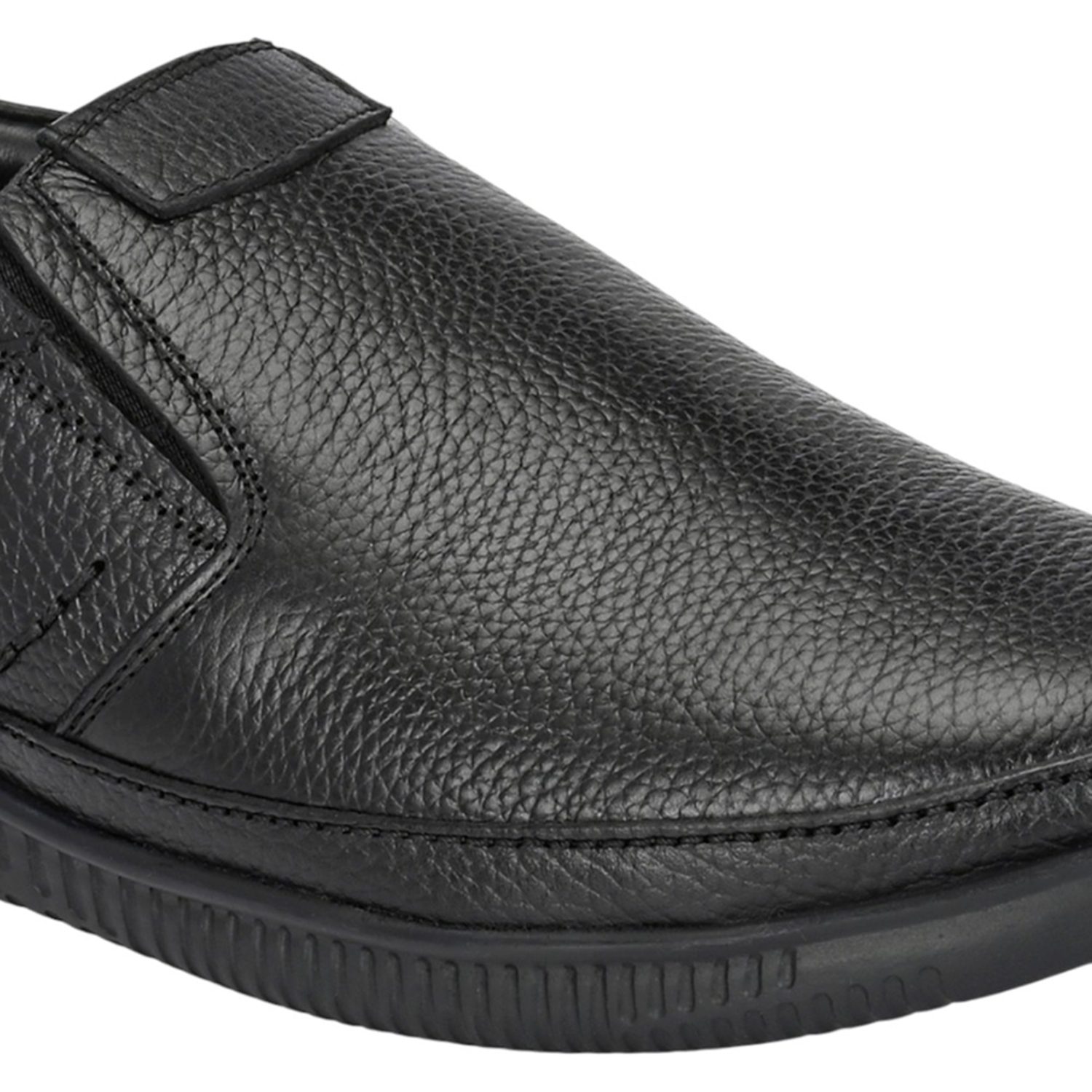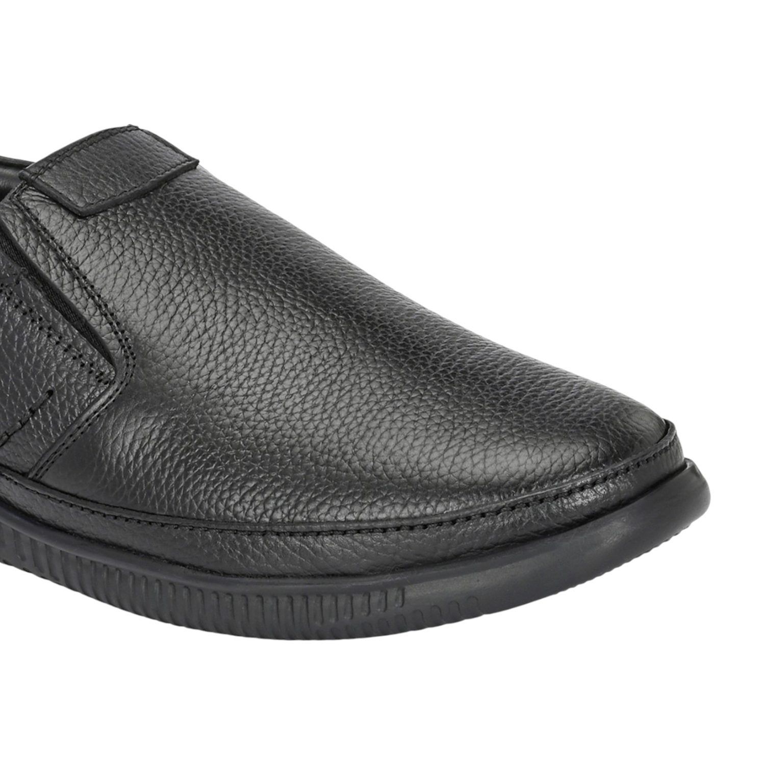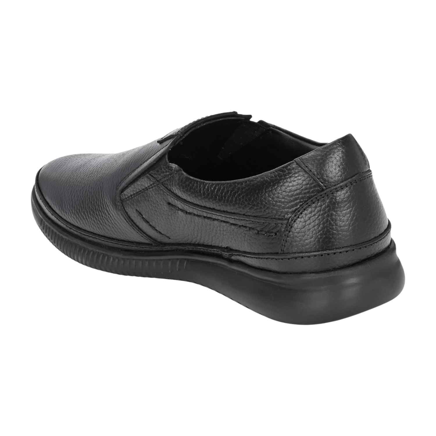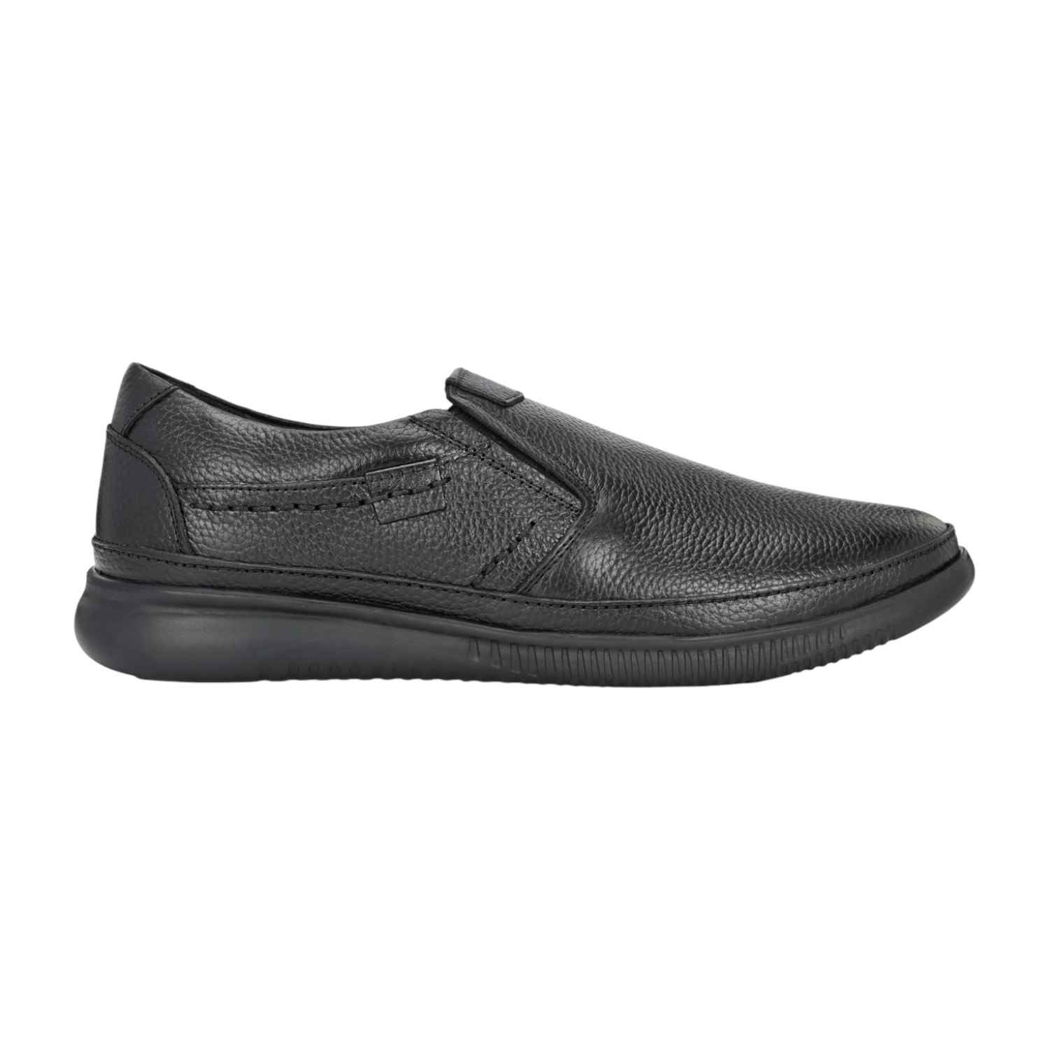 Introducing a practical and comfortable choice for everyday wear: Men's Black Textured Leather Comfort Slip-Ons. These casual shoes prioritize ease of use and long-lasting comfort without sacrificing a smart appearance.