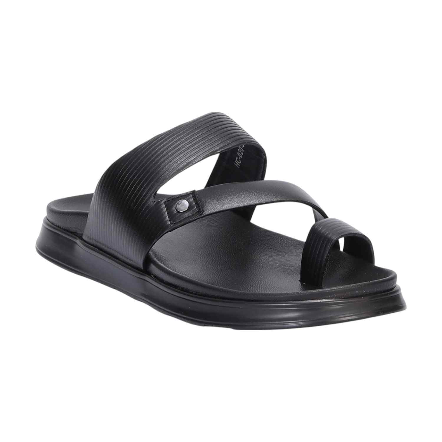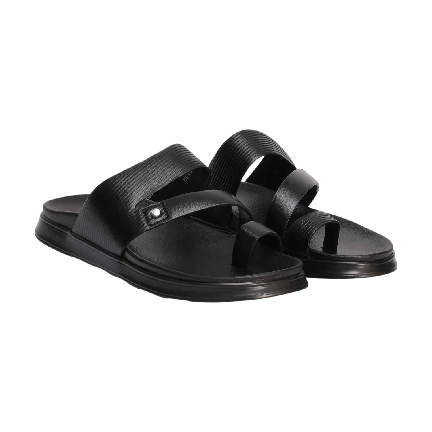 Add a touch of contemporary style to your casual look with this Men Black Toe-Loop Chappal. Featuring a unique dual-strap upper with a secure toe loop, this slide-style chappal blends elegance with everyday comfort. The textured black upper adds a refined finish, while the soft cushioned footbed ensures all-day wearability.