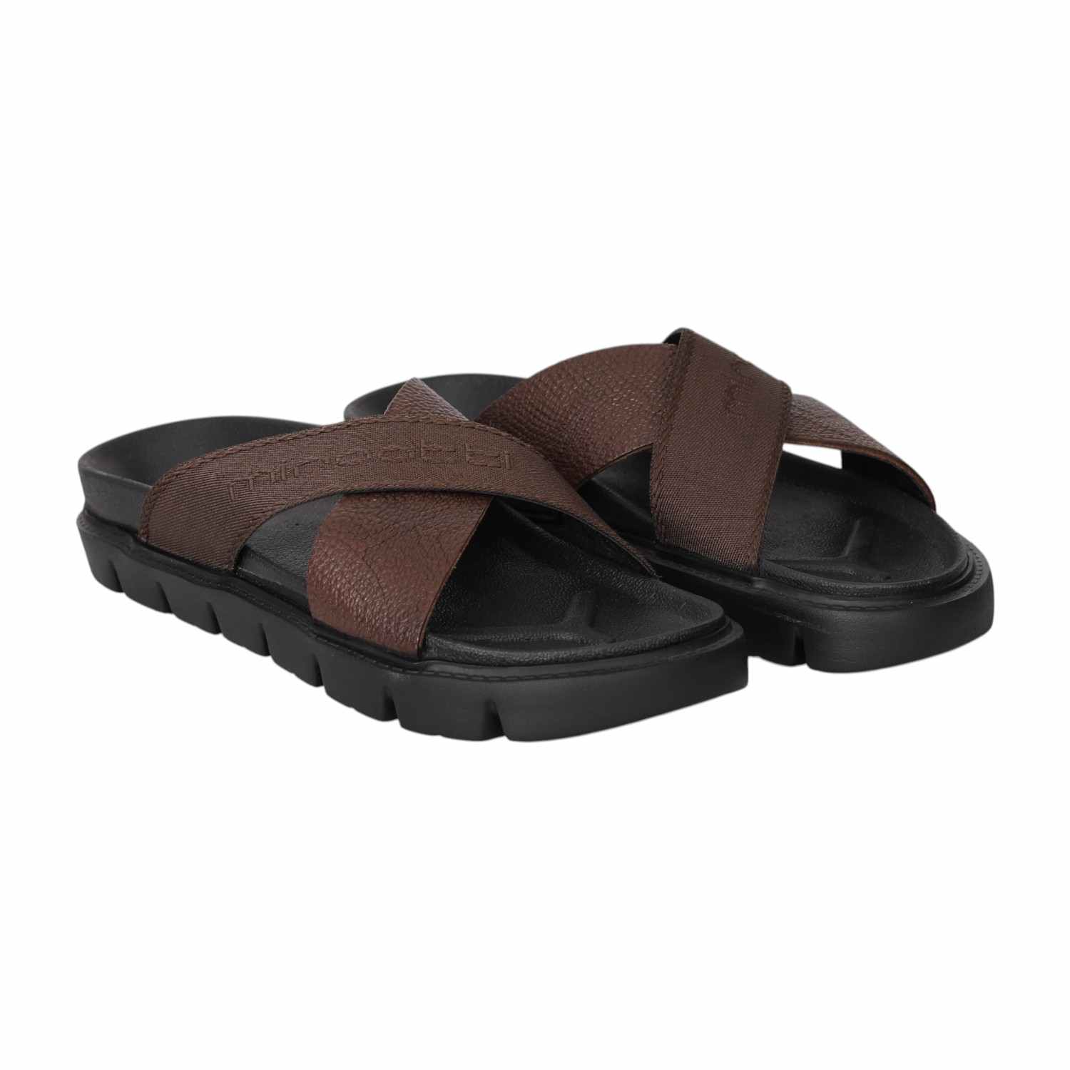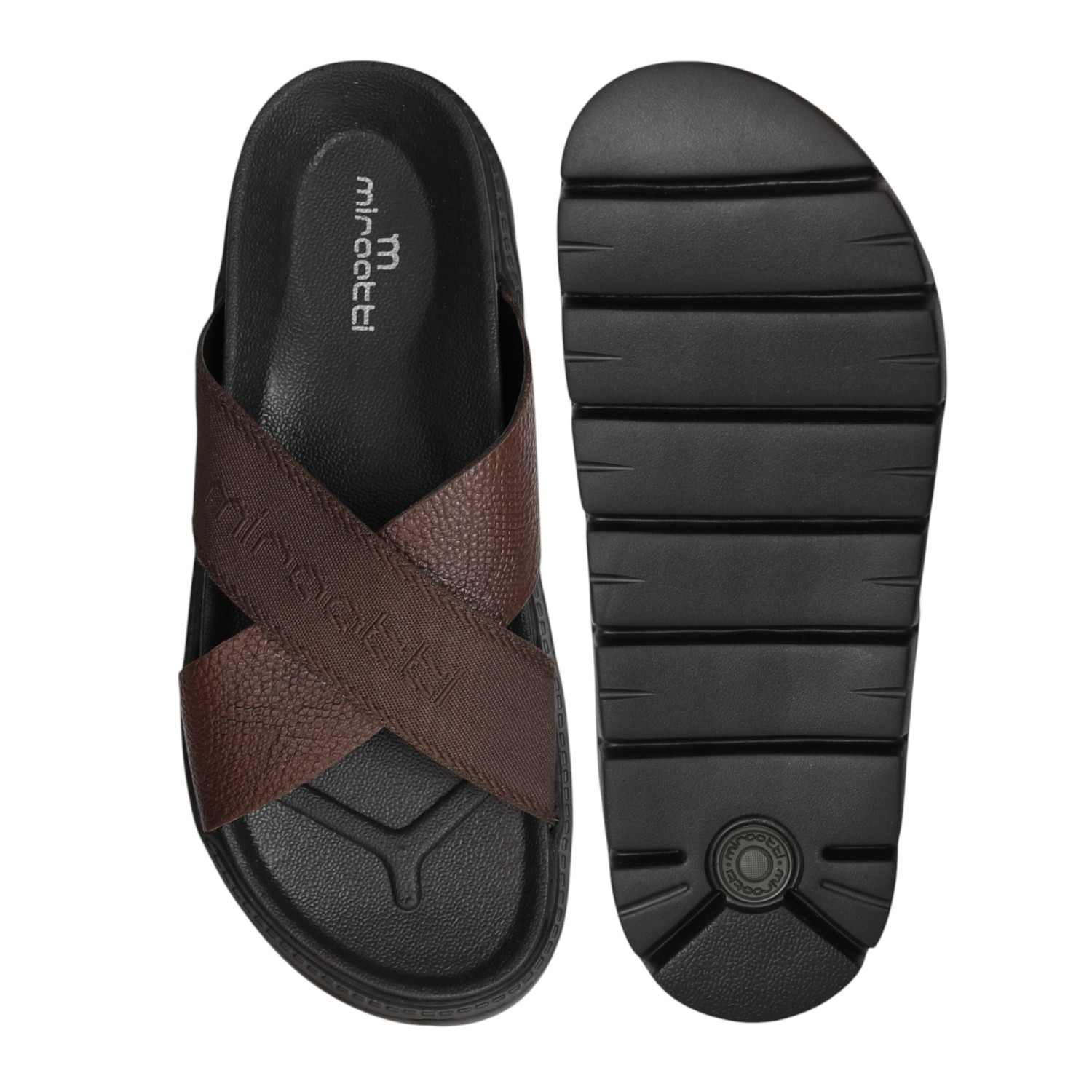 Step into relaxed style with these brown cross strap sliders crafted for comfort and durability. The soft cushioned sole absorbs impact with every step, while the wide straps ensure a secure yet breathable fit. A versatile pick for daily wear, these sliders blend casual appeal with long-lasting ease.