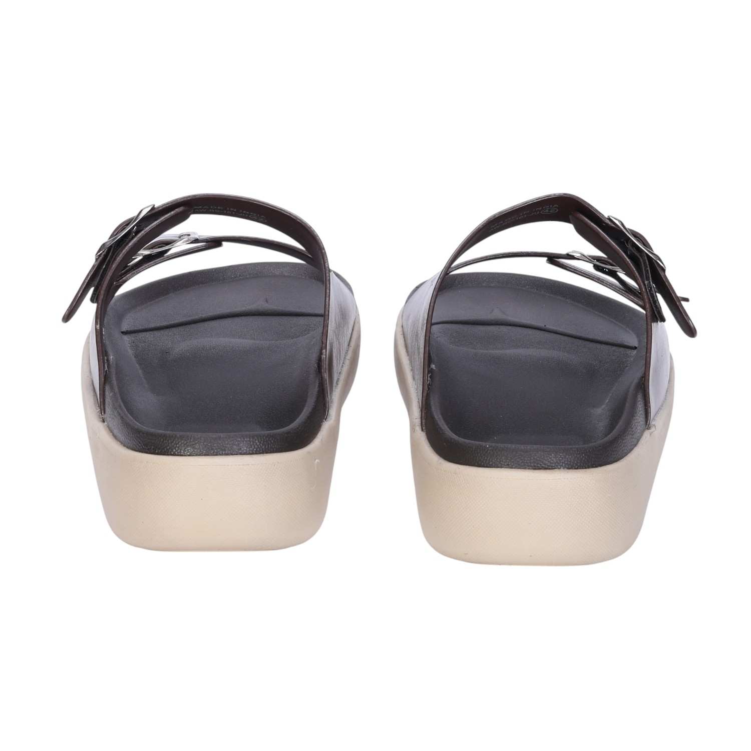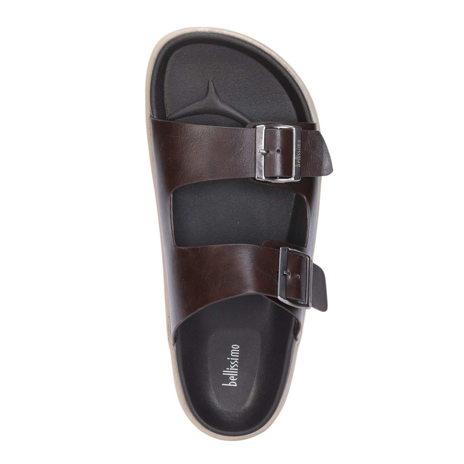 Experience laid-back sophistication with these Bellissimo men double buckle slip-on Chappal, crafted for comfort and contemporary flair. Made with rich brown straps and adjustable metal buckles, these Chappal provide a secure fit and a stylish finish. The contoured footbed offers excellent support and cushioning, while the contrasting outsole adds a modern touch and reliable grip