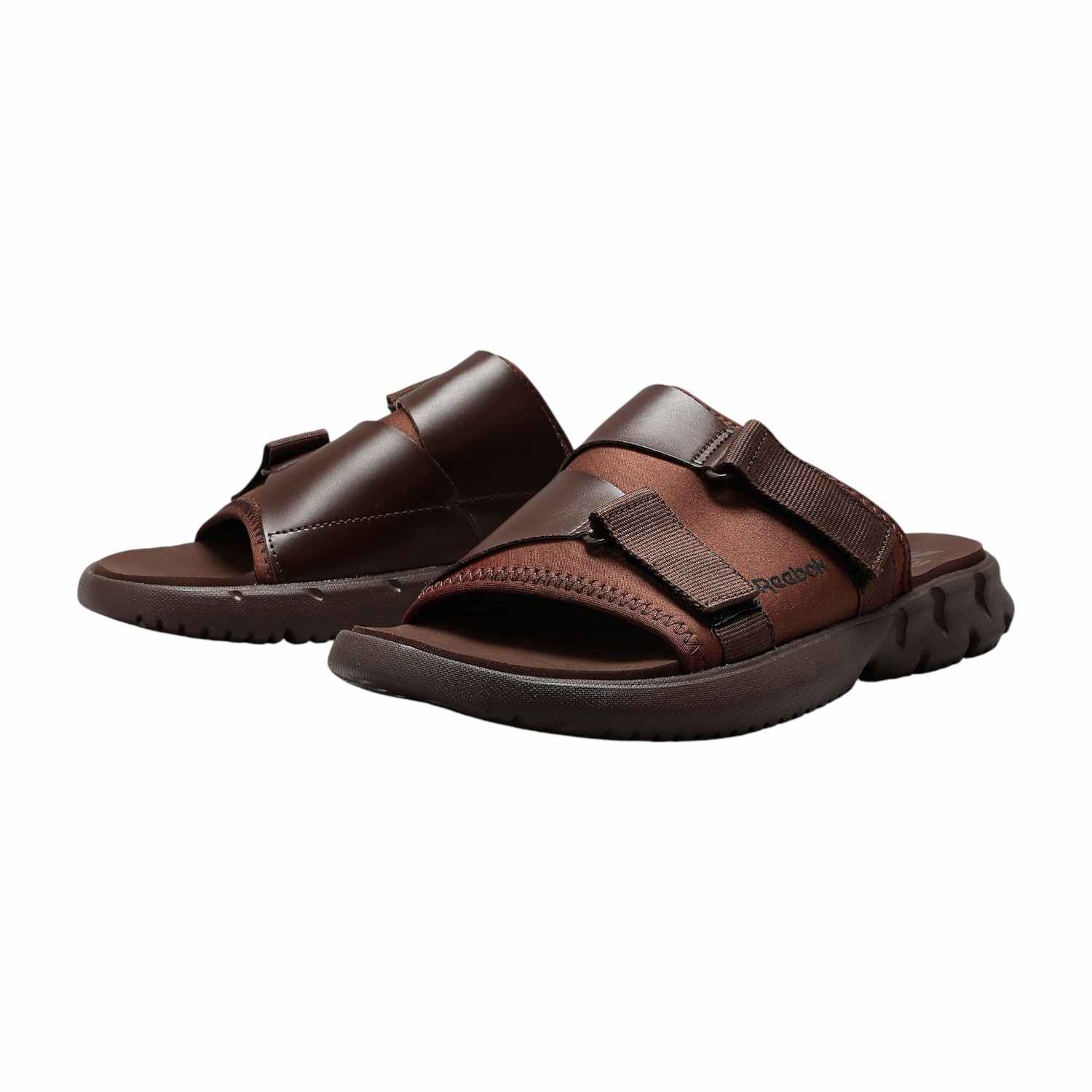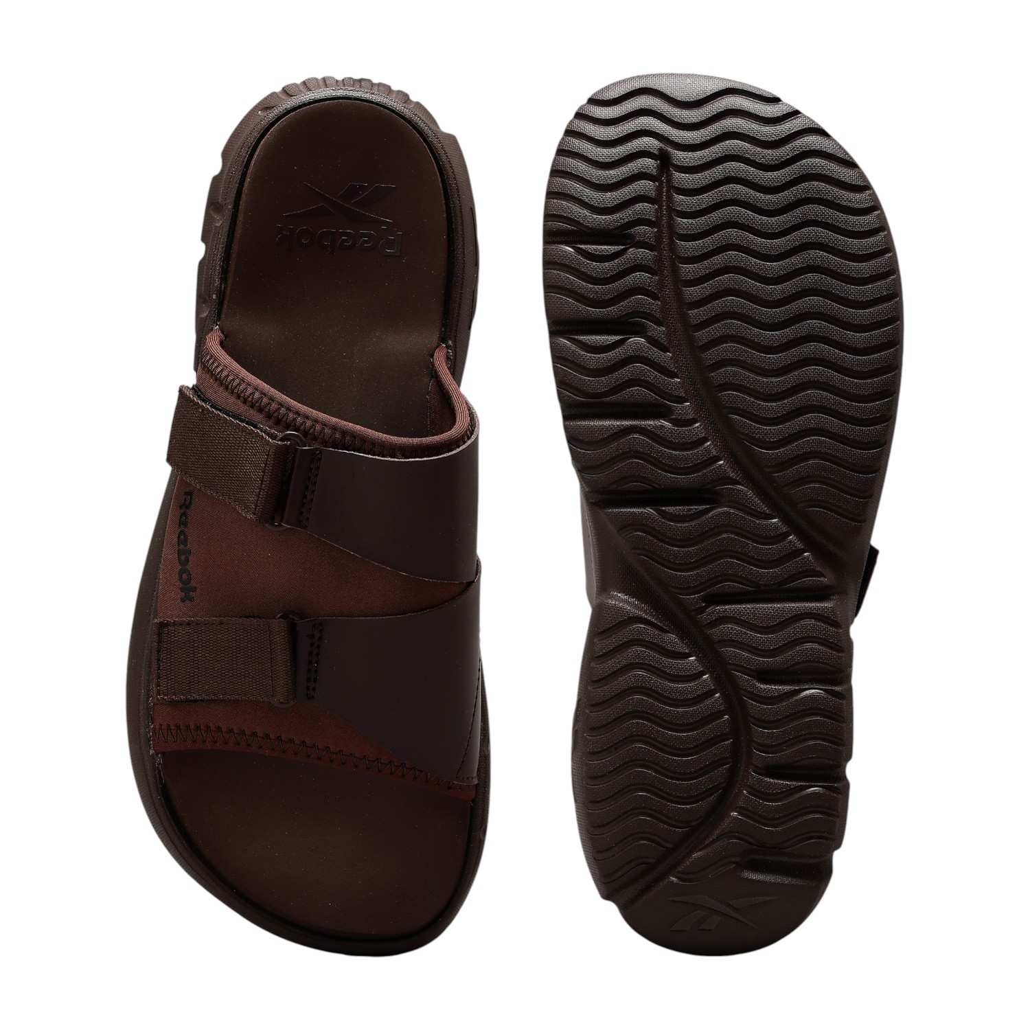 Indulge in superior comfort with the Reebok brown sandals, meticulously constructed from vegan leather. These elegant sandals offer a chic yet relaxed design, perfect for casual outings or lounging by the pool. The lightweight EVA sole ensures effortless strides while complementing your day-to-day style. Experience the fusion of fashion and sustainability, making each step a bold statement. Embrace a pampering feel beneath your feet that speaks to the modern lifestyle.