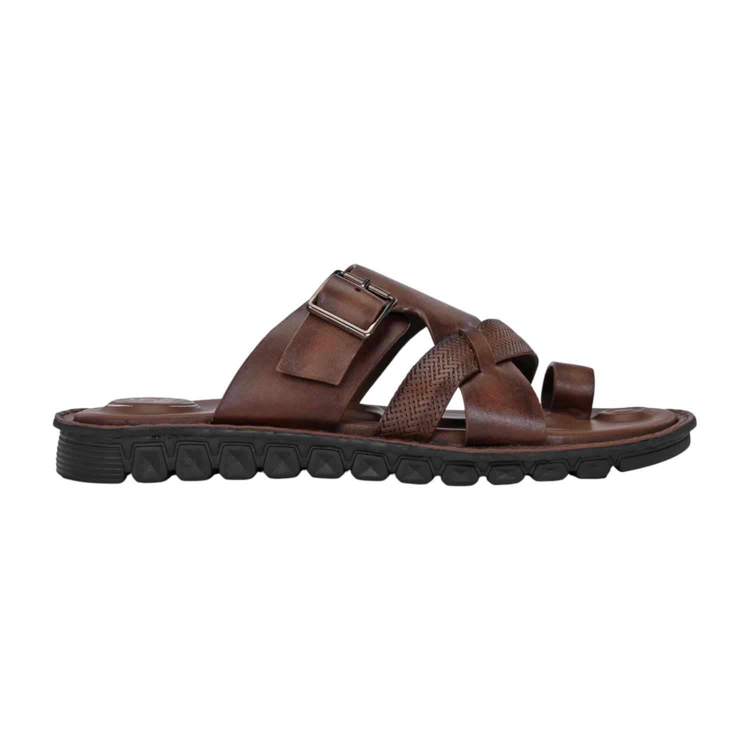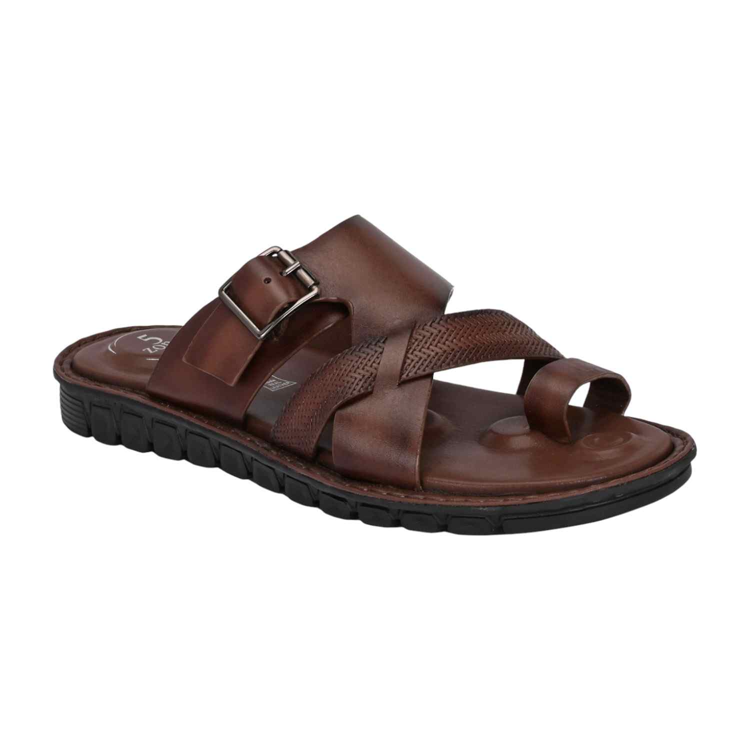 Men Brown Leather Strappy Sandal with Buckle and Toe Loop