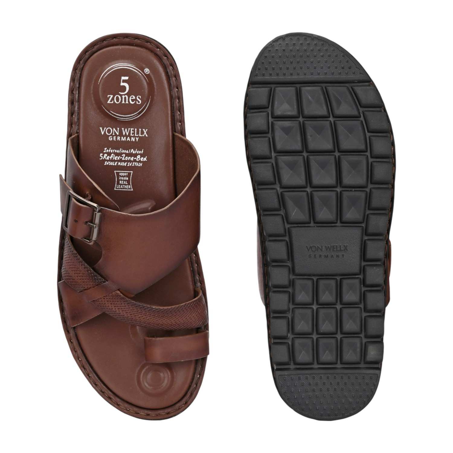 Home / Products / VON WELLX / Men Brown Leather Strappy Sandal with Buckle and Toe Loop