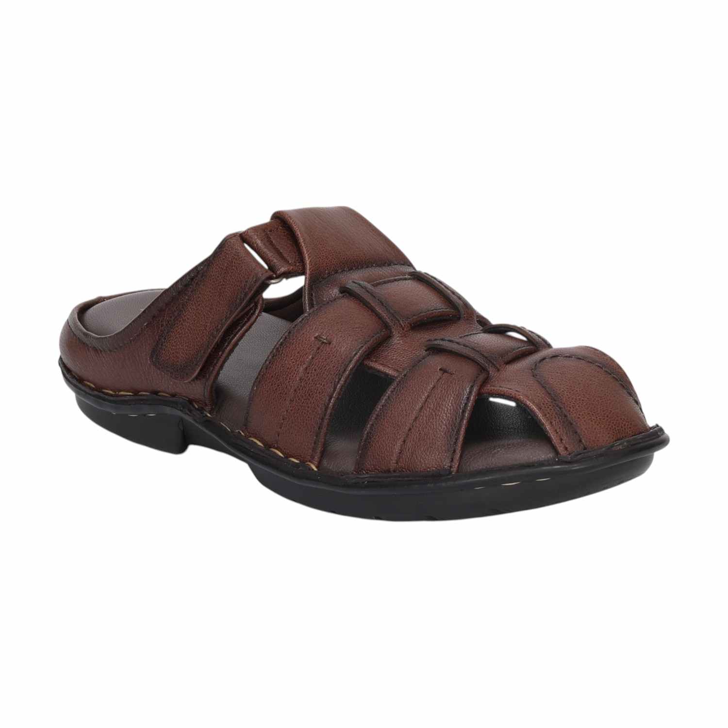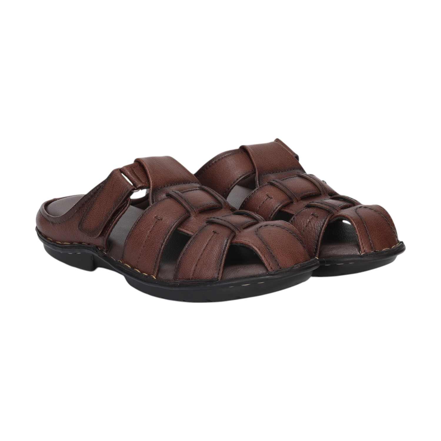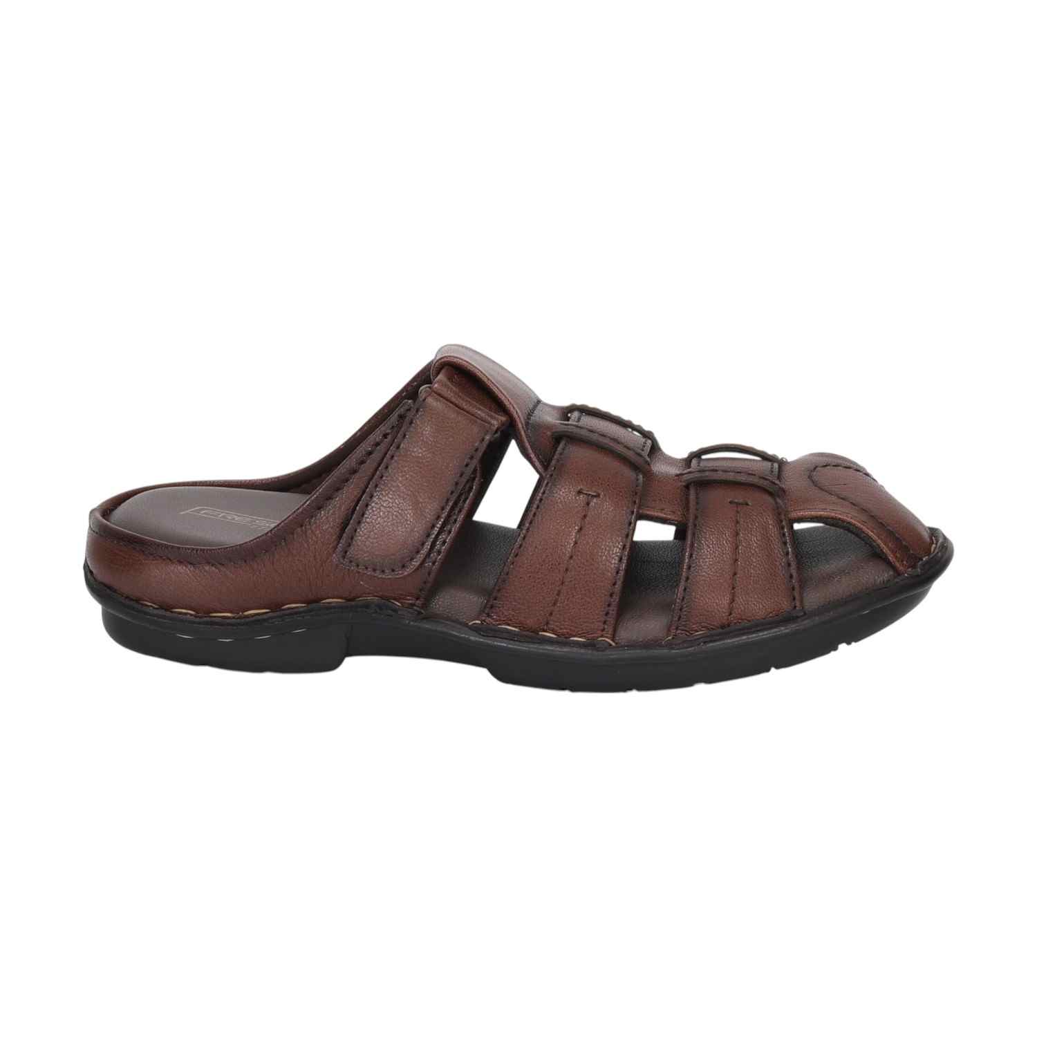 Step into everyday comfort with these Men’s Brown Open-Toe Leather Sandals, tailored for effortless wear and a refined look. Crafted from durable synthetic leather, these sandals feature a breathable multi-strap design with a Velcro closure for a secure, adjustable fit.The open-toe and open-heel style enhances ventilation, while the padded footbed and anti-slip rubber sole ensure all-day support and grip on various surfaces.