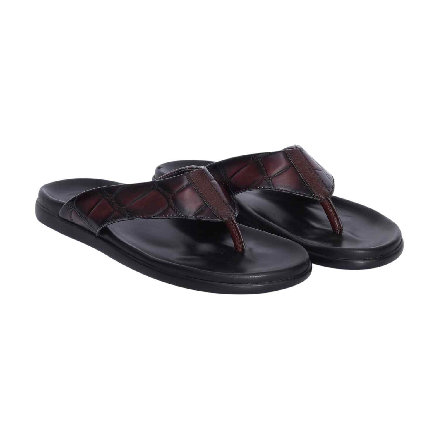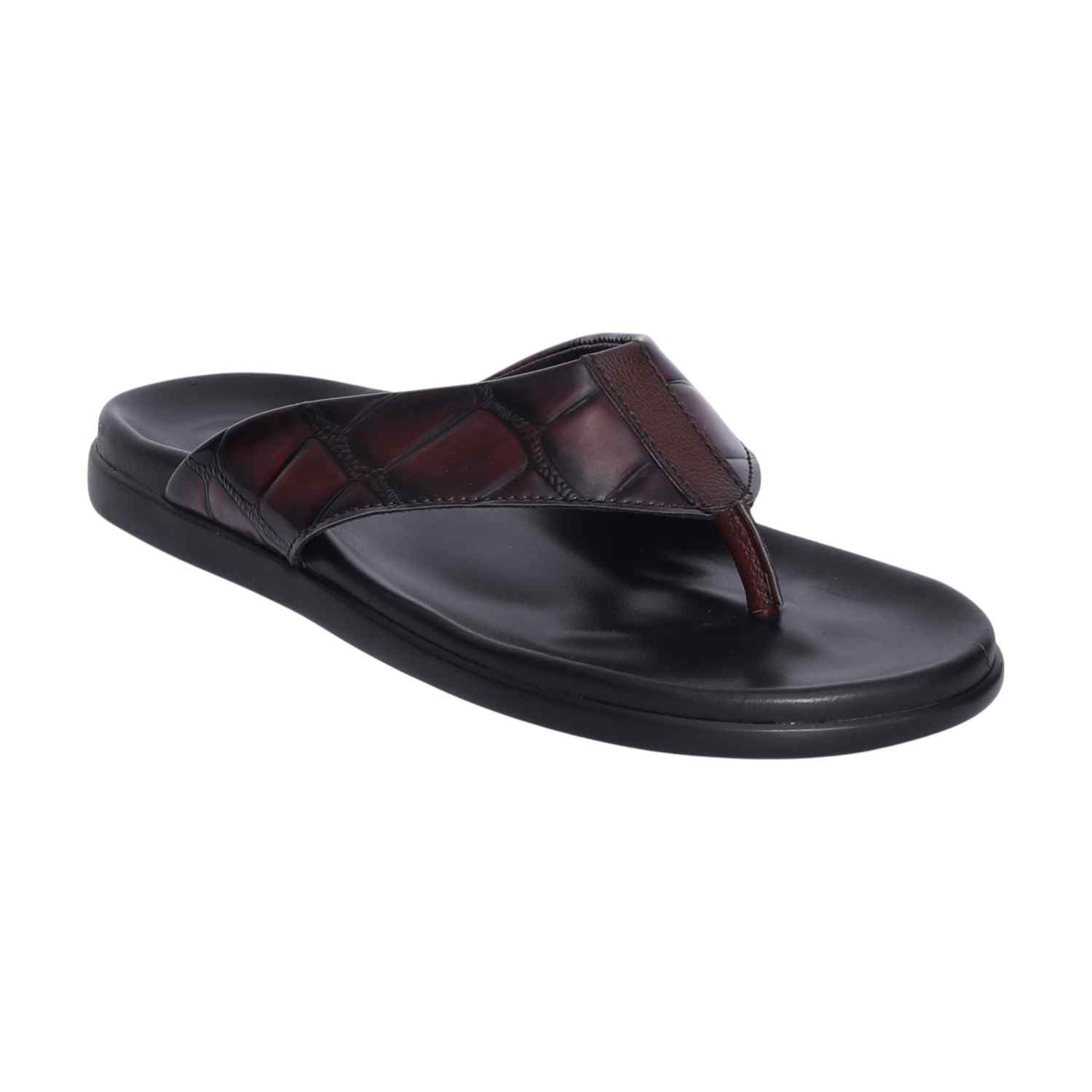 Elevate your everyday footwear with these stylish brown textured slippers for men. Featuring a rich, crocodile-patterned upper and smooth black sole, these slippers offer both elegance and comfort. The soft, cushioned footbed ensures relaxed wear, while the durable construction makes them ideal for both indoor and outdoor use. A perfect blend of traditional charm and modern design.