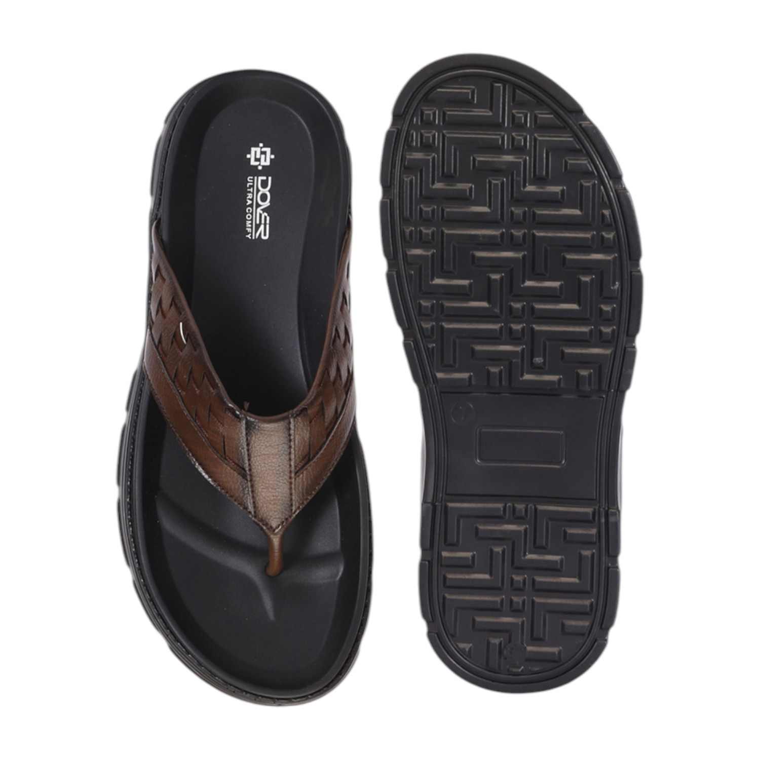 Elevate your casual footwear collection with Dover Men Brown Thong Sandals featuring a stylish self-design. These sandals combine comfort and sophistication, making them perfect for both laid-back days and outings. The unique self-design adds a subtle flair, while the durable materials ensure a secure fit and long-lasting wear. With their sleek finish, these thongs effortlessly complement any outfit, from shorts to summer attire. Step out in style and comfort with these must-have sandals from Dover!