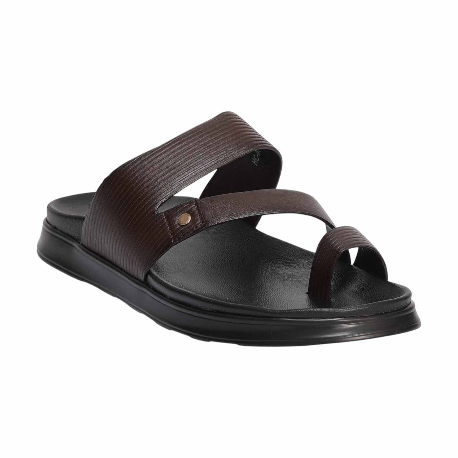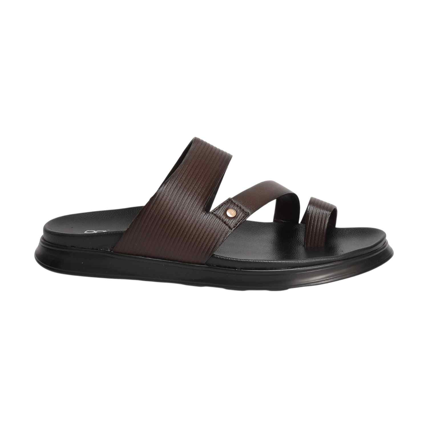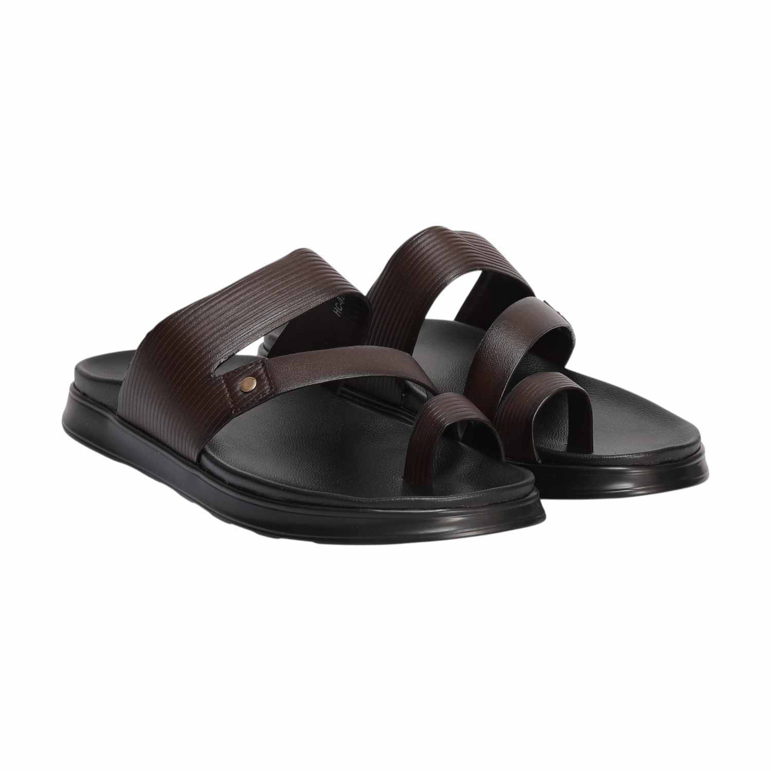 Add a touch of contemporary style to your casual look with this Men Brown Toe-Loop Chappal. Featuring a unique dual-strap upper with a secure toe loop, this slide-style chappal blends elegance with everyday comfort. The textured brown upper adds a refined finish, while the soft cushioned footbed ensures all-day wearability.