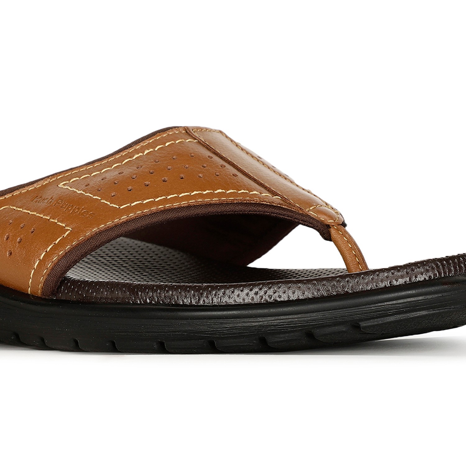 Step into laid-back comfort with these hush puppies tan thong slippers. crafted from cow milled leather with a smooth finish, they offer both durability and style. the pu sole ensures lightweight flexibility, making them perfect for casual wear. whether you're lounging at home or running quick errands, these slippers provide the perfect blend of comfort and sophistication.