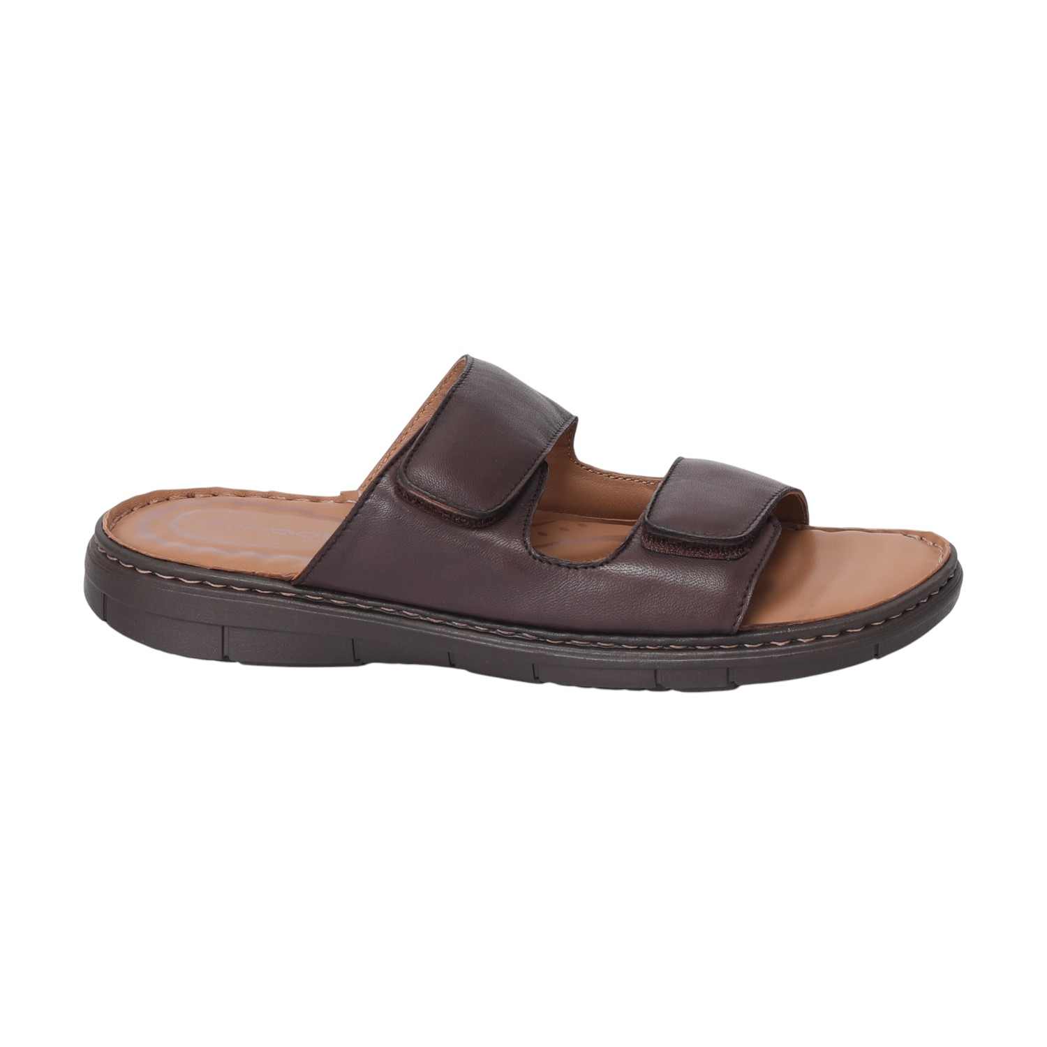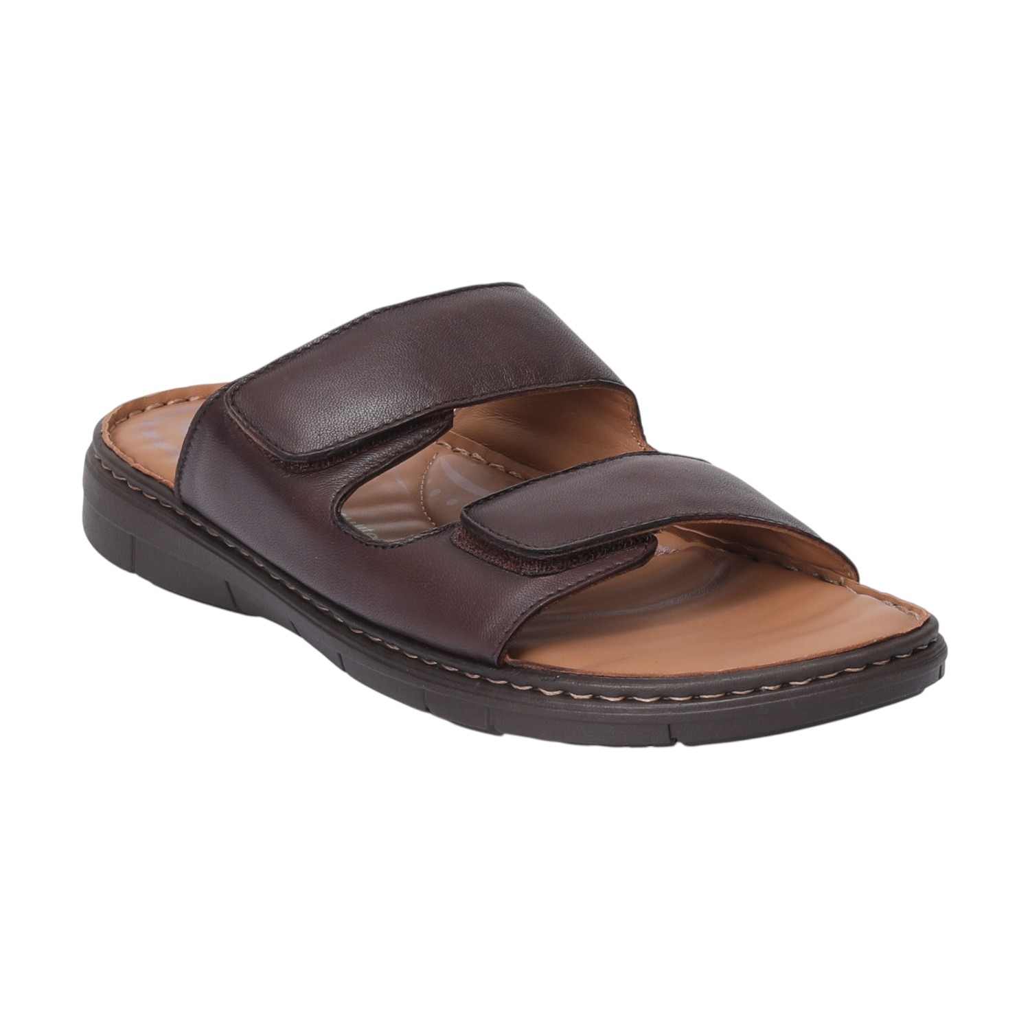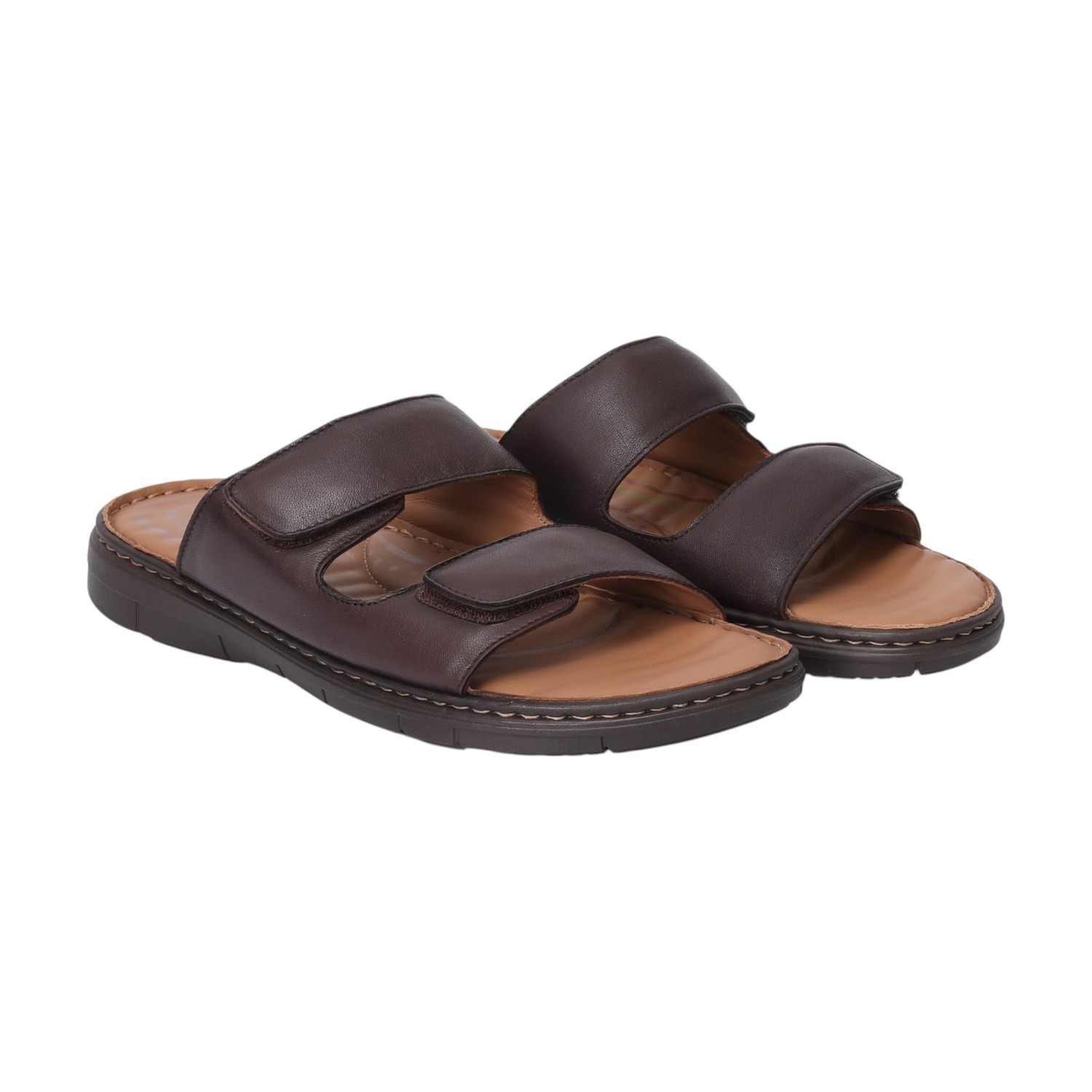 Upgrade your everyday footwear with this men brown double strap comfort chappal. Made with a smooth synthetic leather upper and cushioned insole, this chappal is designed to provide lasting comfort and support throughout the day. The two wide adjustable straps ensure a secure, custom fit, while the durable sole offers excellent grip and flexibility.