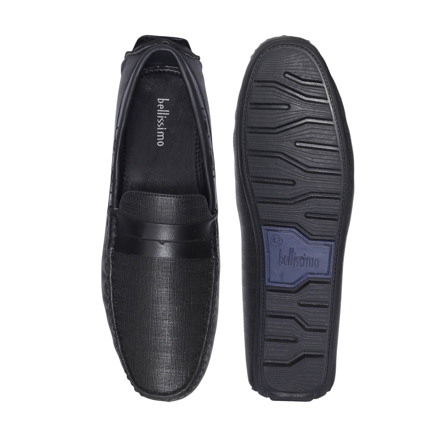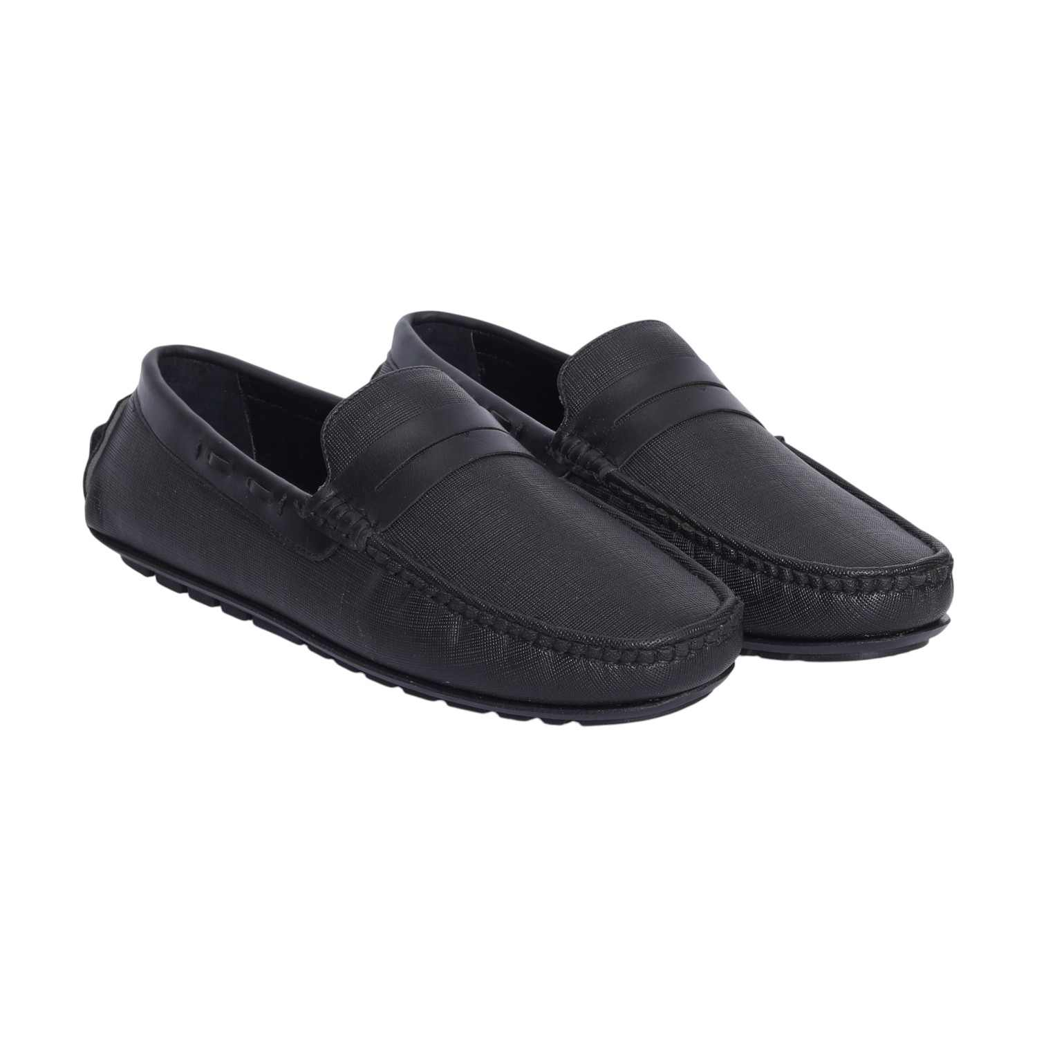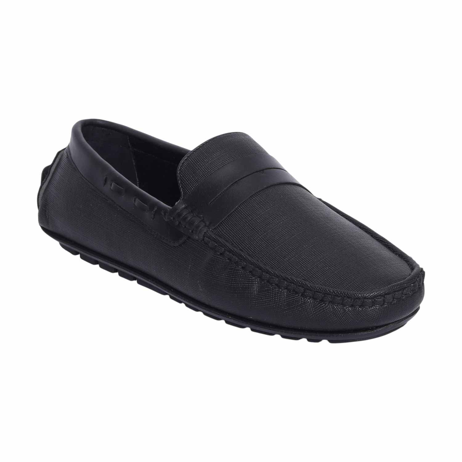 Refine your casual and formal ensembles with these classic black textured Casual Slip On for men. Featuring a sleek penny strap design and finely detailed stitching, these loafers offer a perfect mix of style and comfort. The textured upper adds a touch of sophistication, while the cushioned insole and flexible rubber sole provide all-day support. Ideal for office wear or evening outings, this versatile pair ensures timeless appeal.