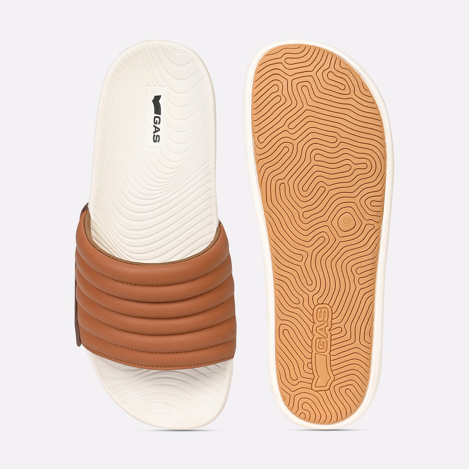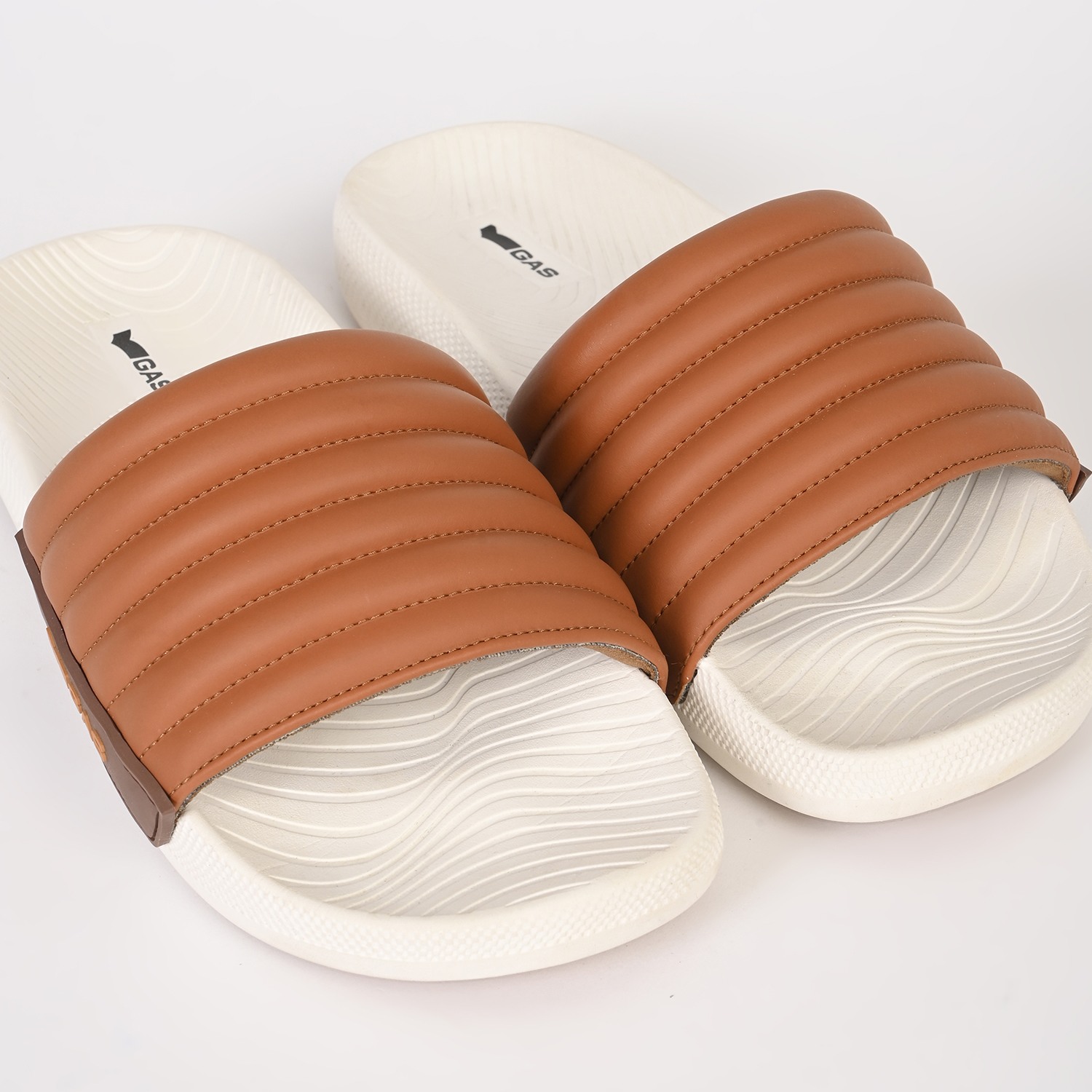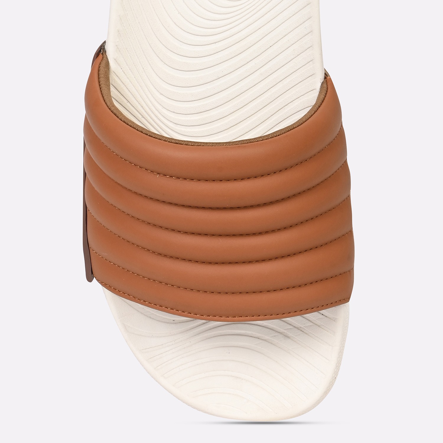Rich tones and a cushioned profile give this slide sandal a relaxed yet confident presence. The quilted-style strap adds depth and texture, creating a bold visual statement while offering a comfortable, secure feel across the foot. A softly cushioned footbed supports daily wear, and the patterned sole ensures steady grip for easy movement. Balanced between comfort and character, this sandal fits seamlessly into casual routines.