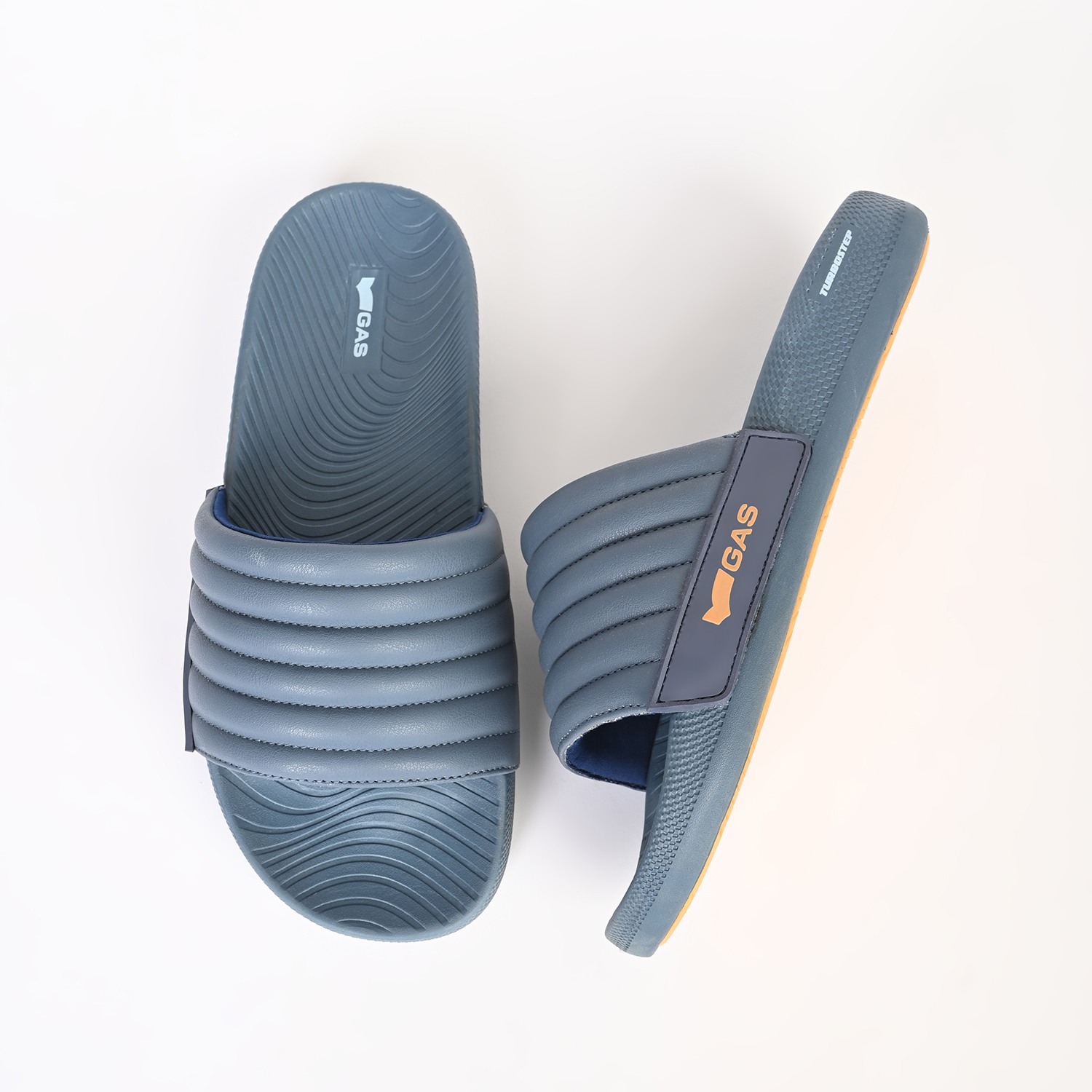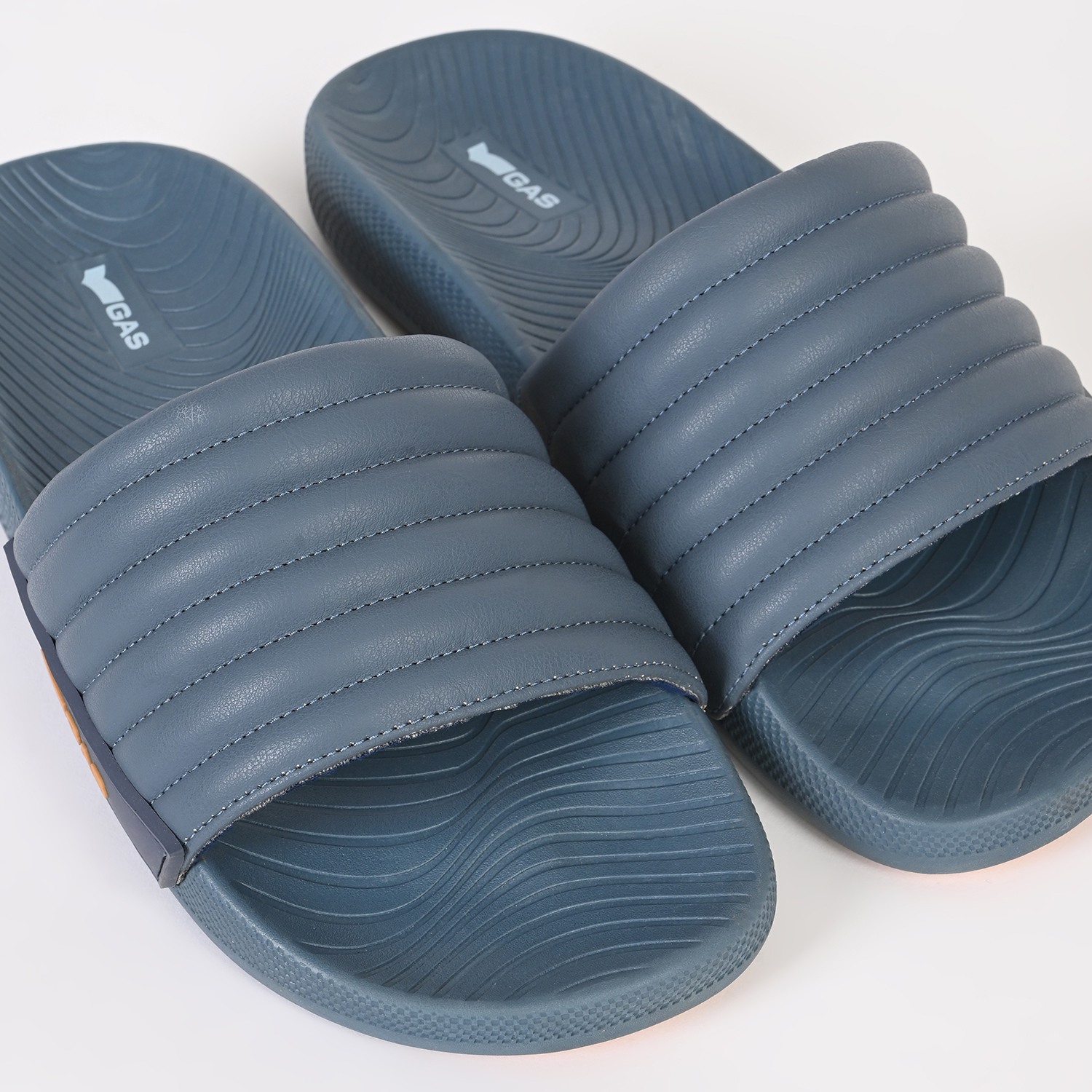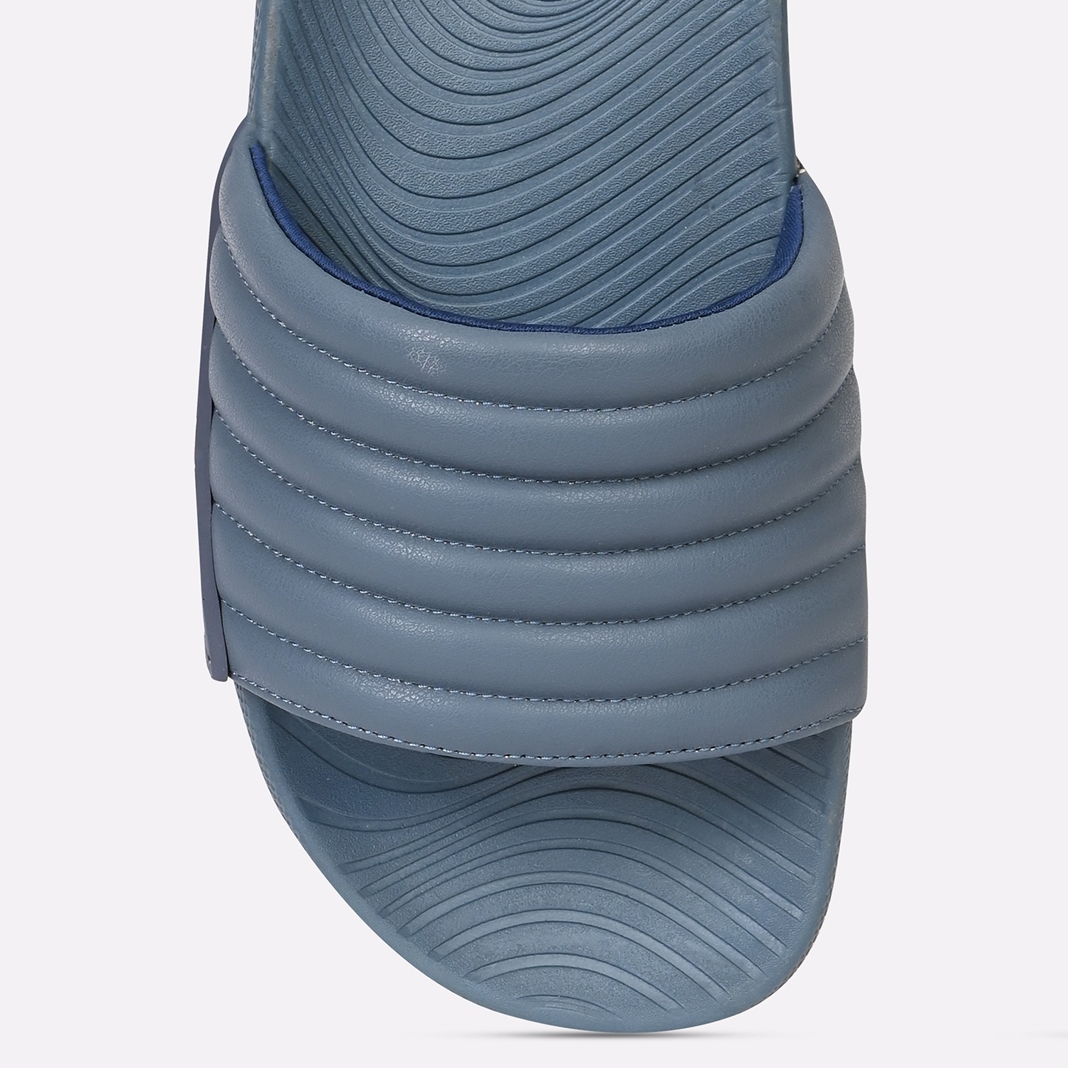 Deep tones and bold texture give this slide sandal a confident, everyday attitude. The padded, ribbed strap adds a sense of structure while offering a comfortable feel across the foot. A contoured, cushioned footbed supports relaxed wear throughout the day, complemented by a textured sole that delivers reliable grip. Finished in a rich, versatile color, this sandal balances comfort with a strong, modern look.