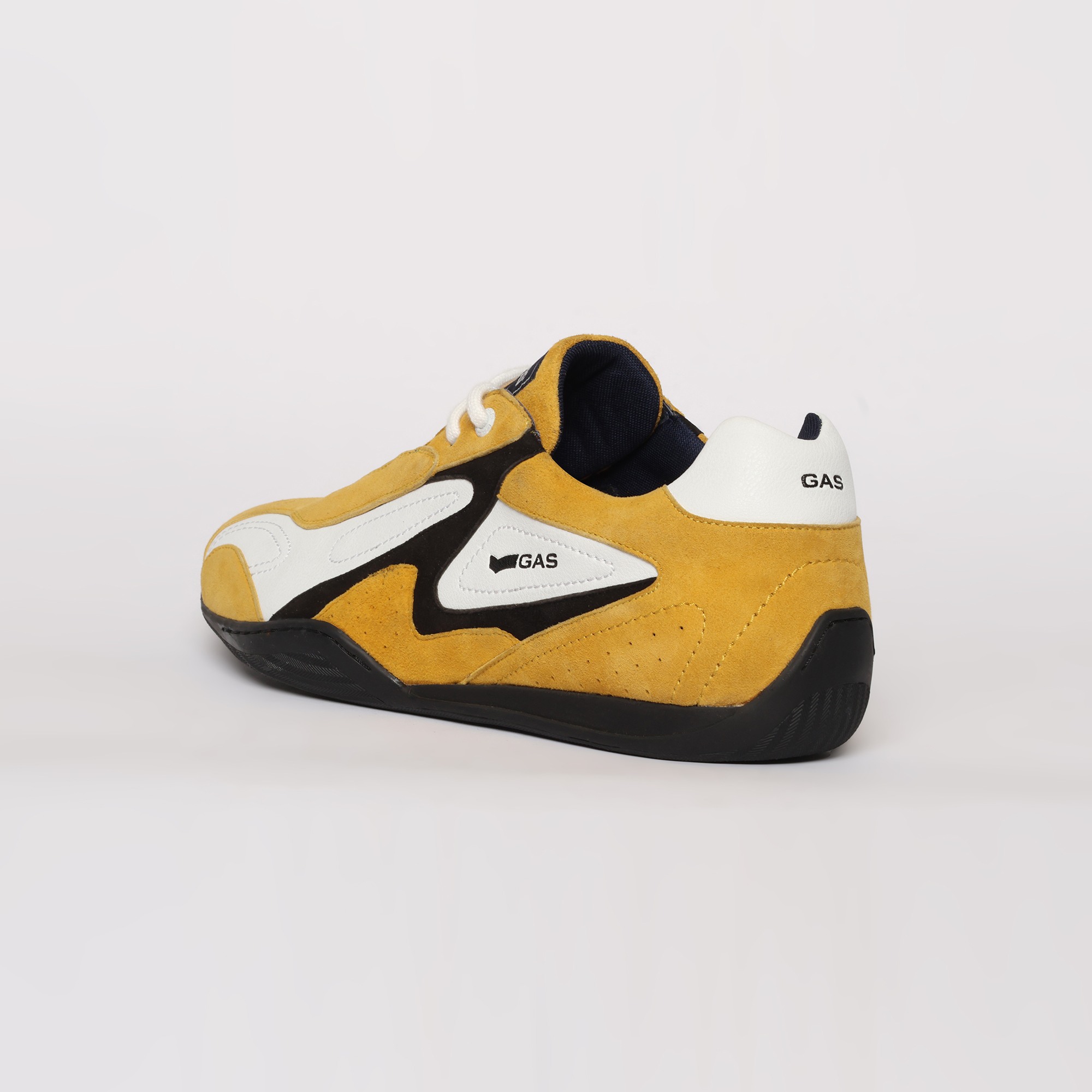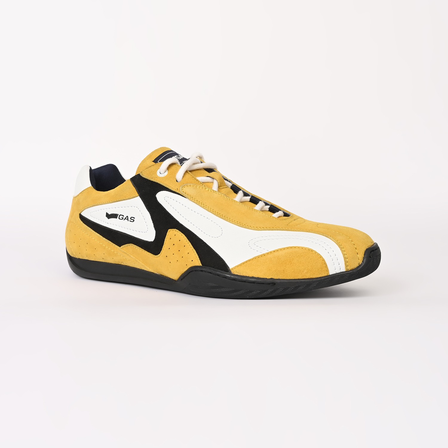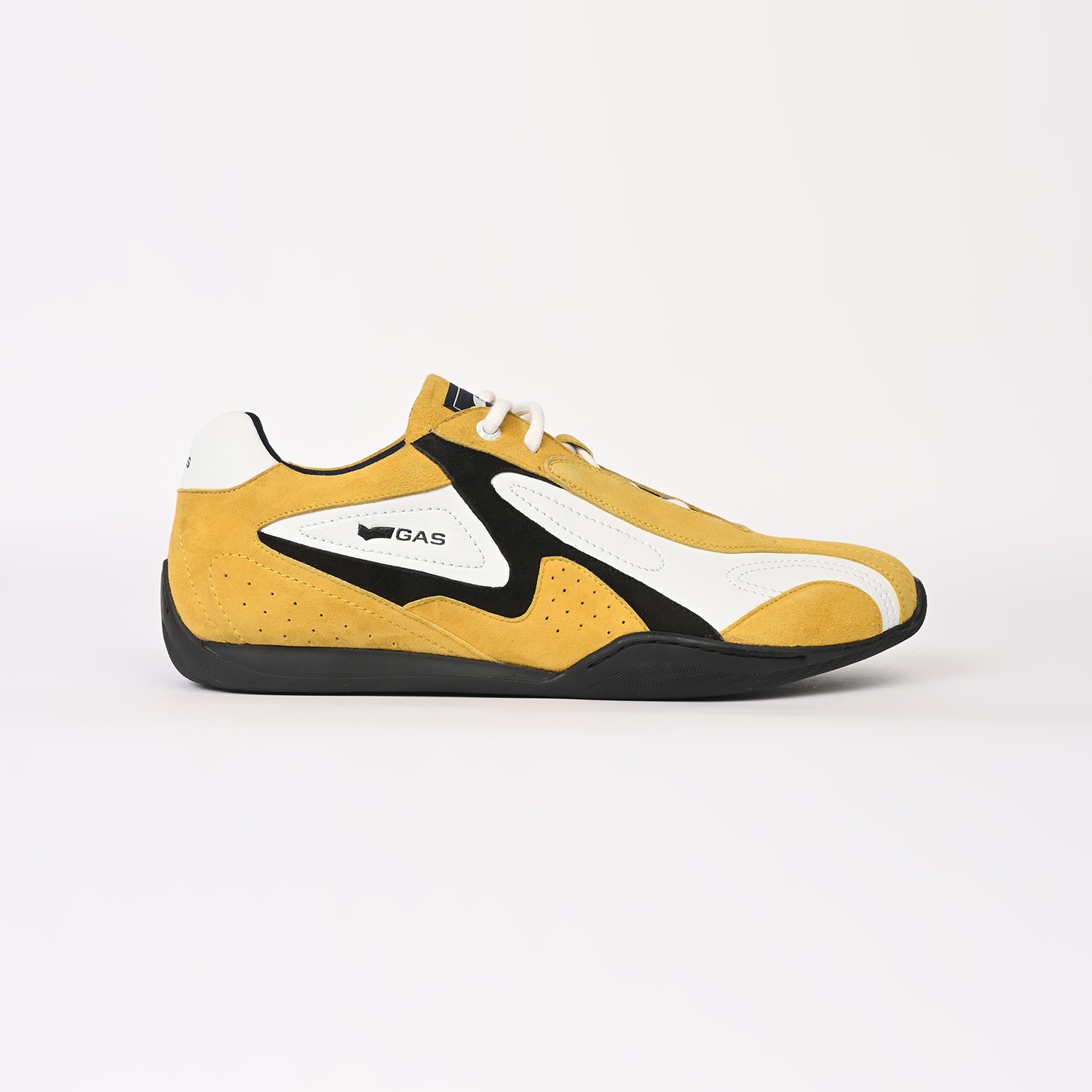 Drift-X is a sleek casual lace-up sneaker crafted in white and yellow leather with subtle suede accents, defined by a clean, low-profile silhouette and refined panel detailing for a modern, dynamic finish.