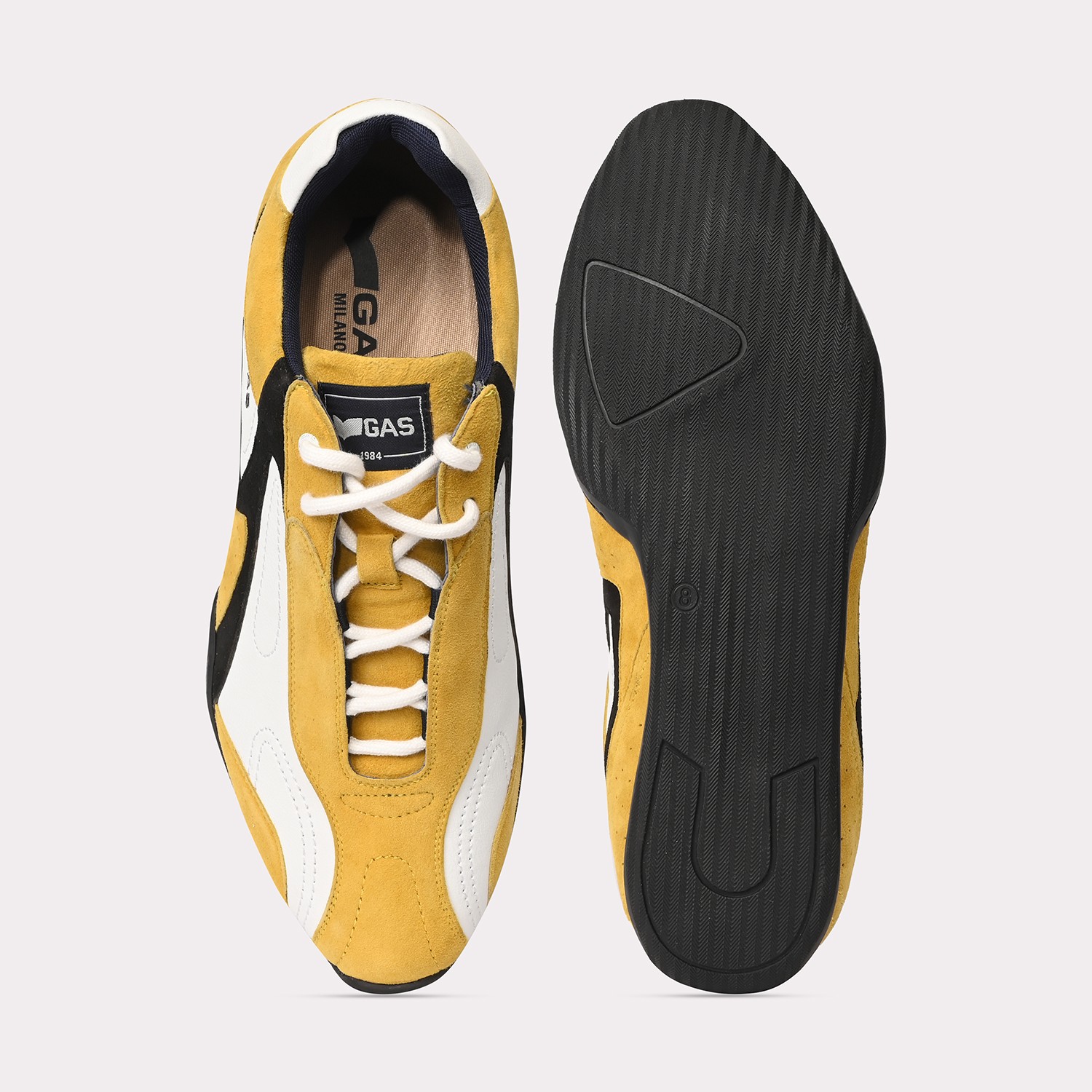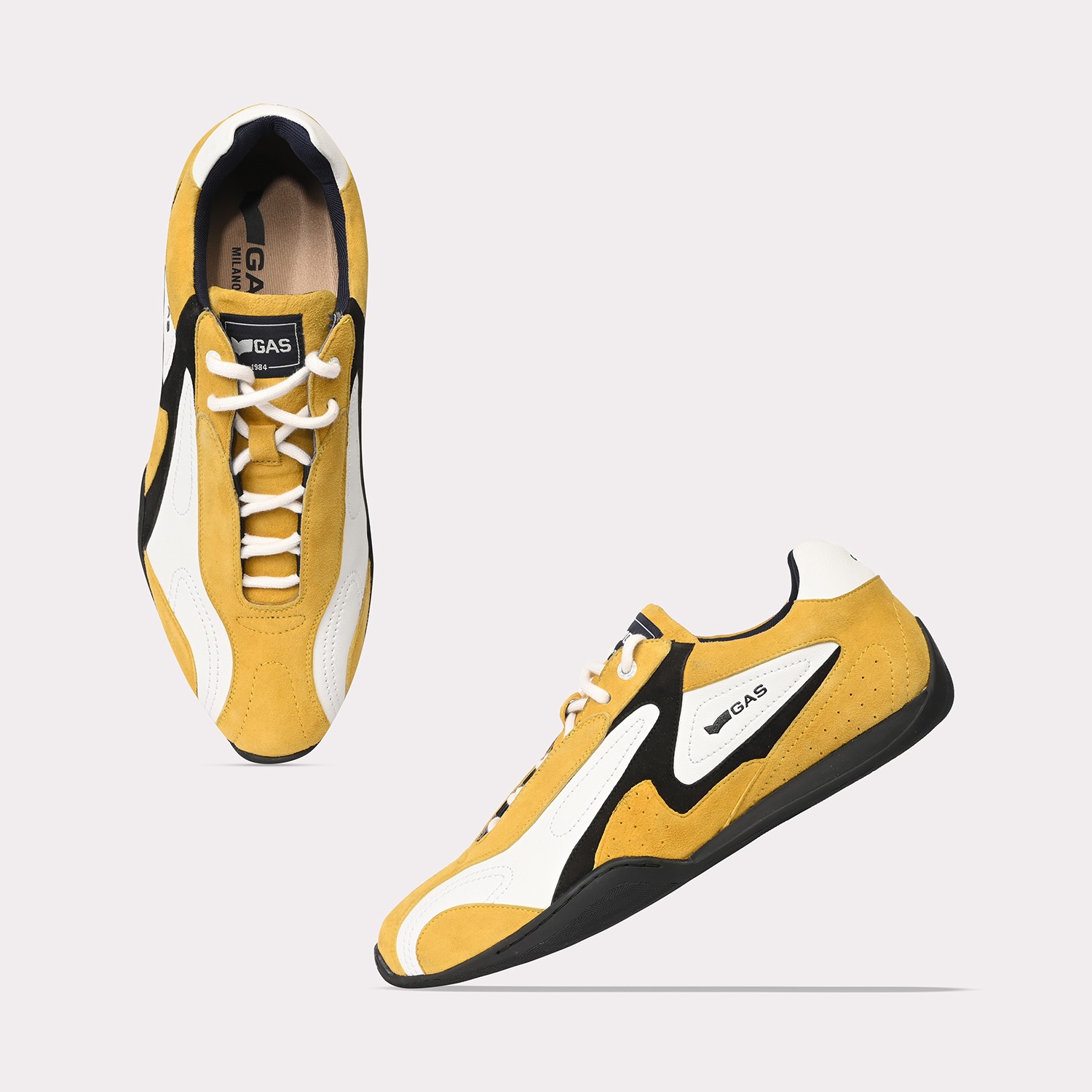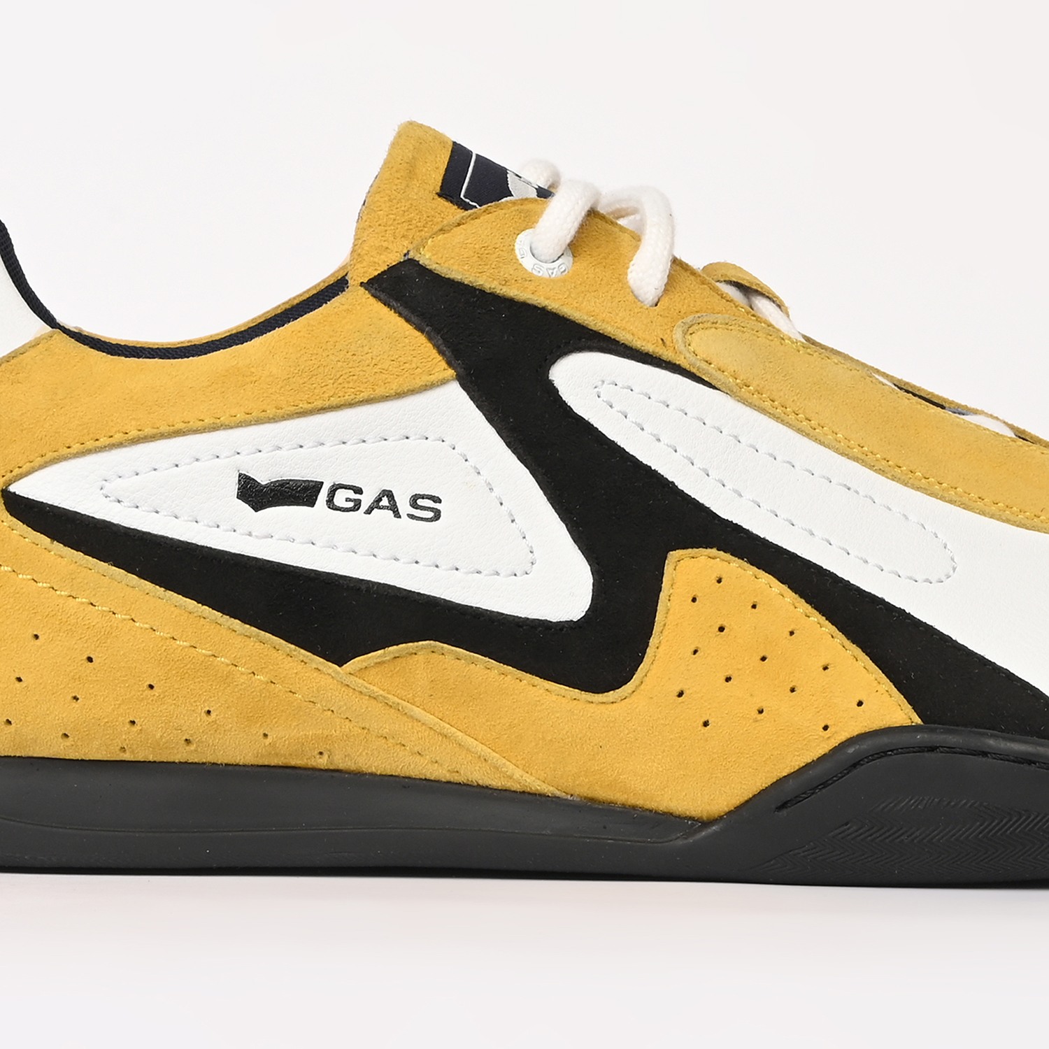 Drift-X is a sleek casual lace-up sneaker crafted in white and yellow leather with subtle suede accents, defined by a clean, low-profile silhouette and refined panel detailing for a modern, dynamic finish.