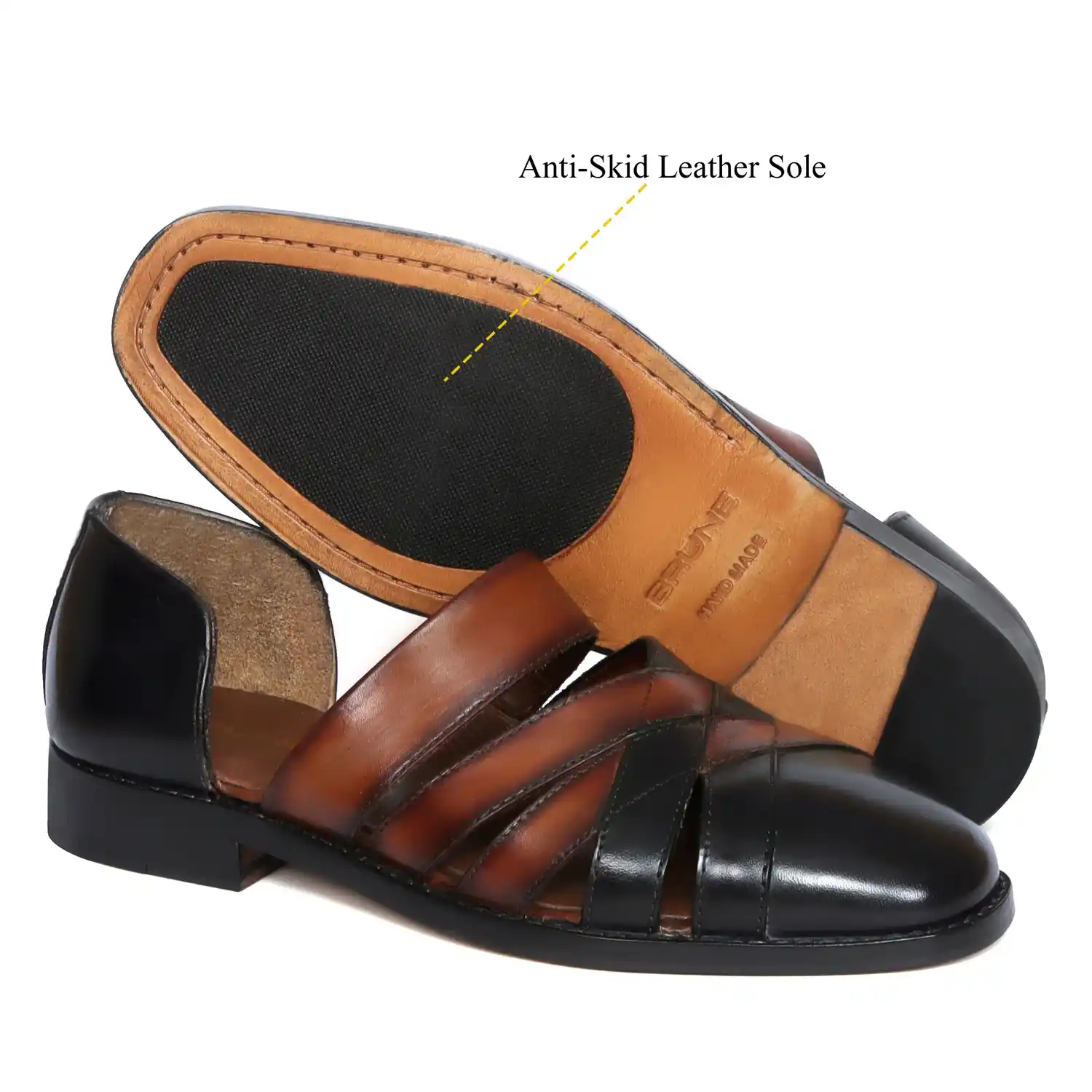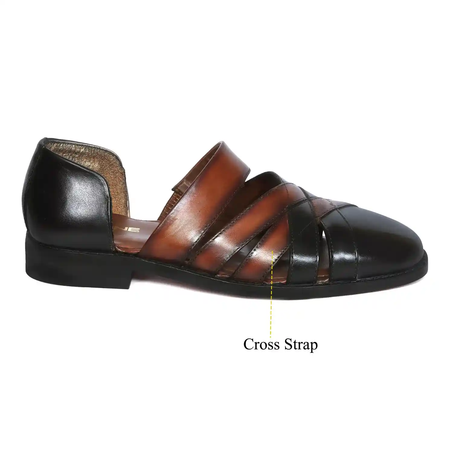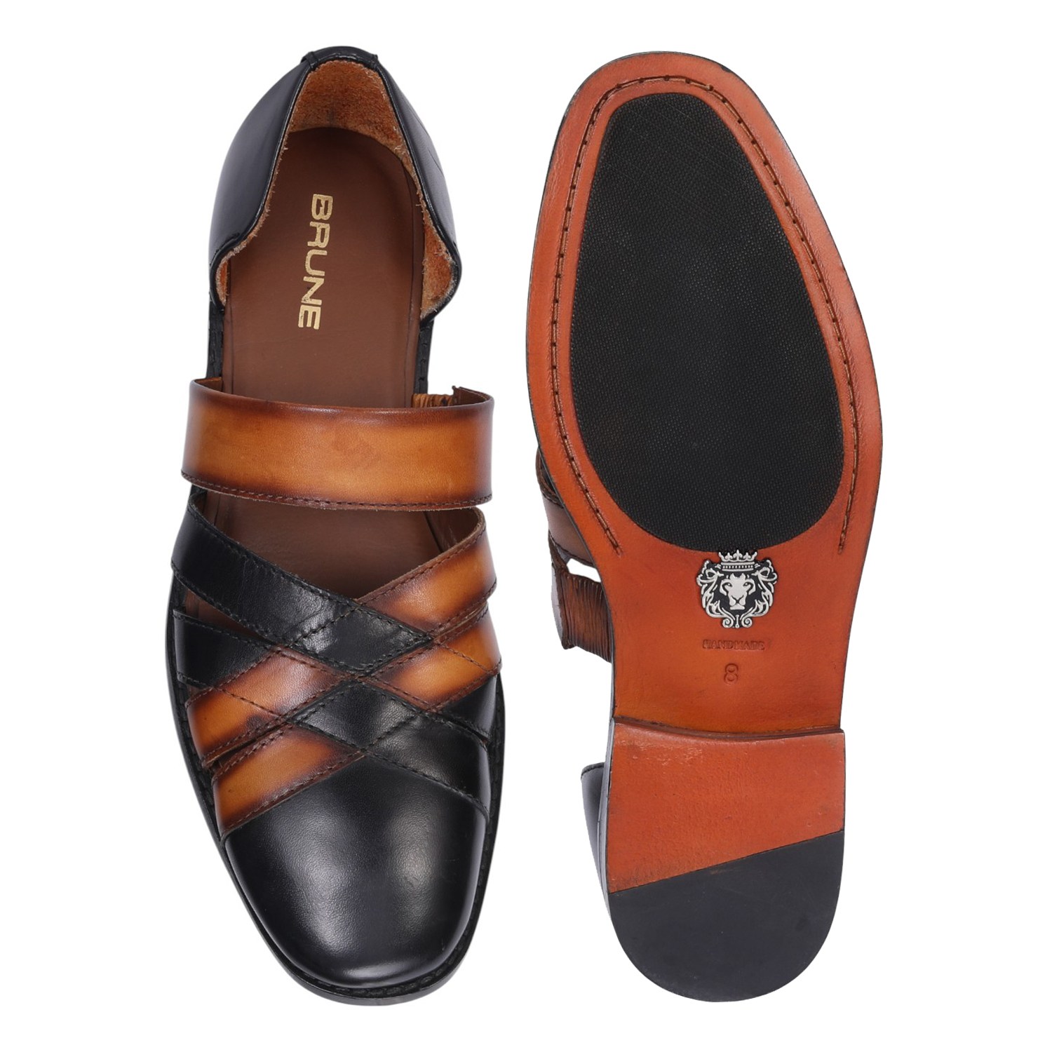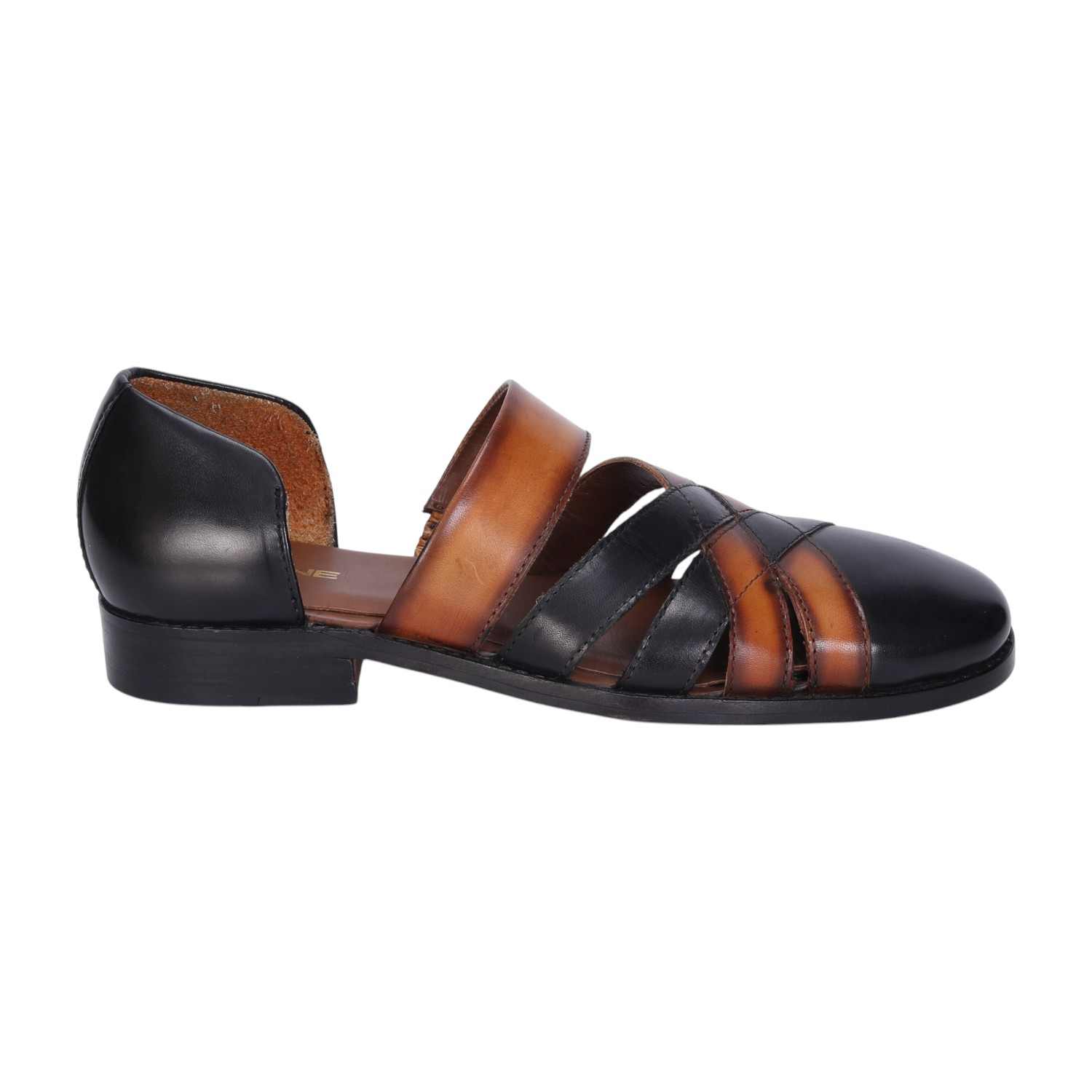 These classic charm cross strapped black & tan leather peshawari sandals from Brune & Bareskin are crafted from genuine leather for long-lasting wear. Their traditional peshawari style features black & tan colors with a leather sole provide long-lasting support with every step, soft inner sole and is handmade for unbeatable quality. The expert craftsmanship ensures a comfortable fit for all-day wear, perfect for any occasion, these sandals provide durable, lasting wear with a classic look. You can also get it customized in any color shade you want.
