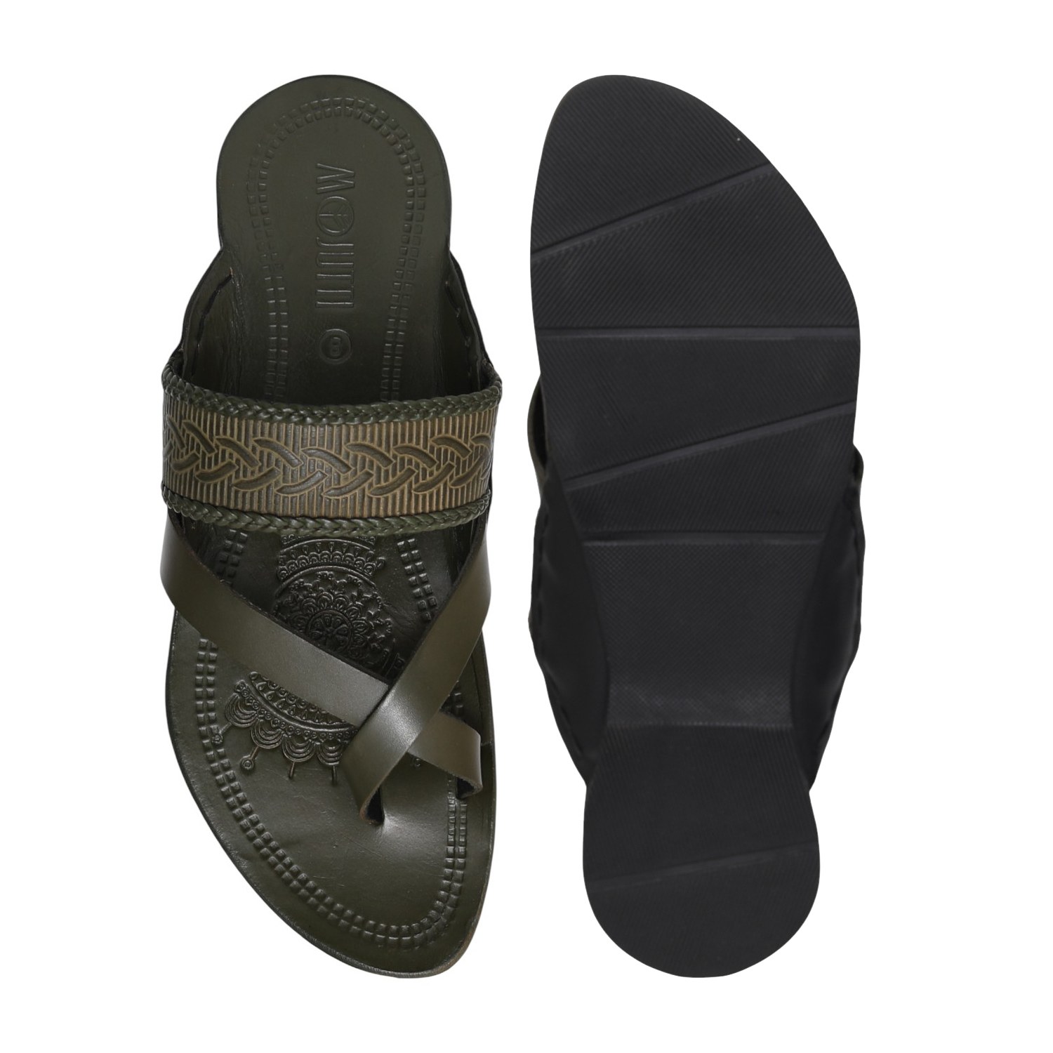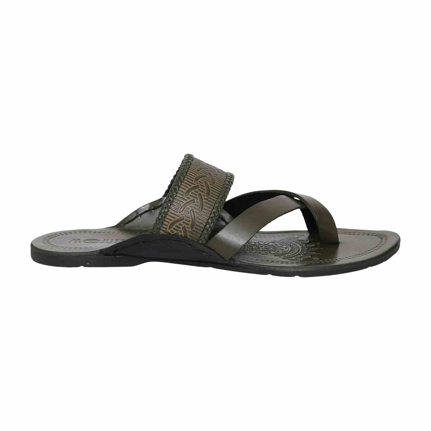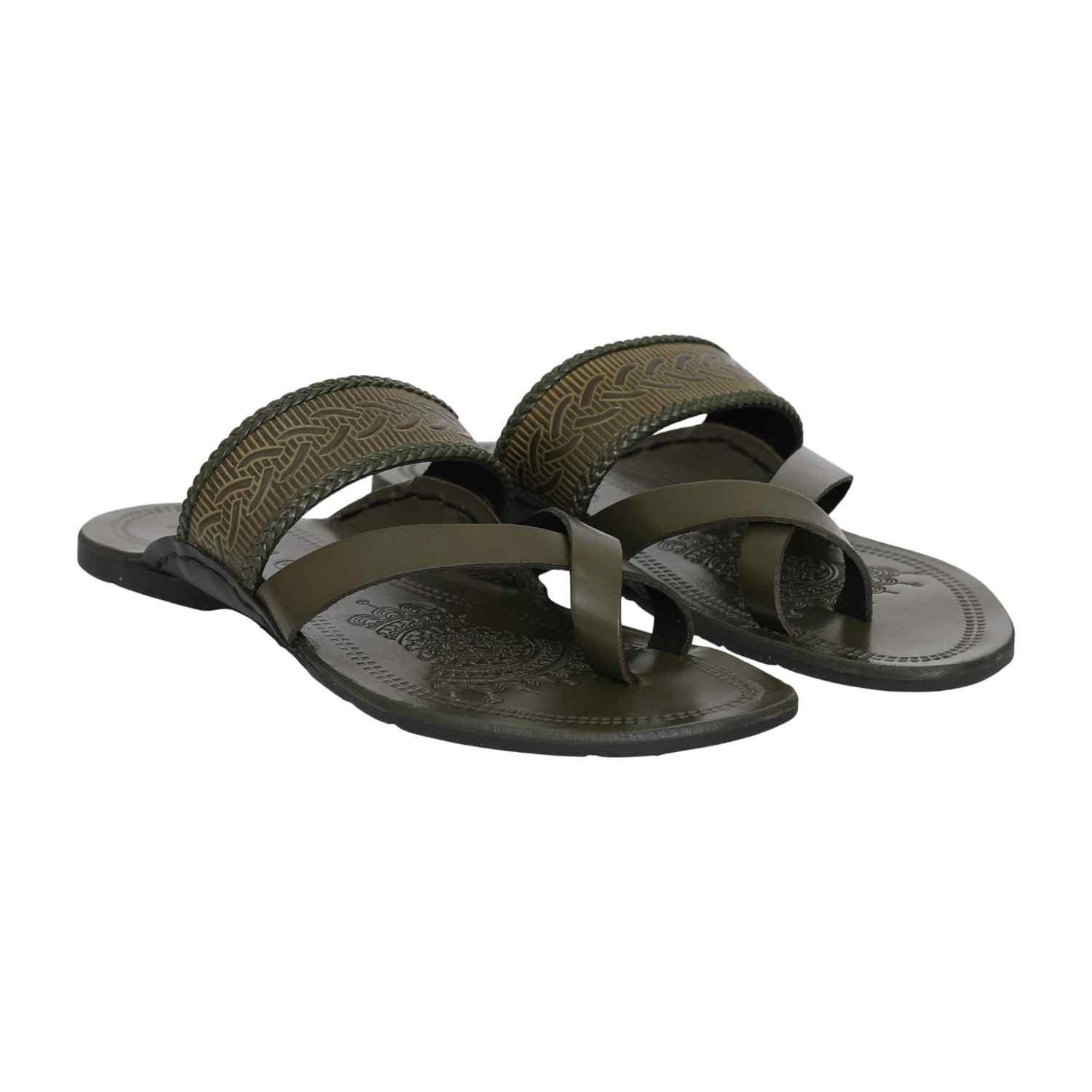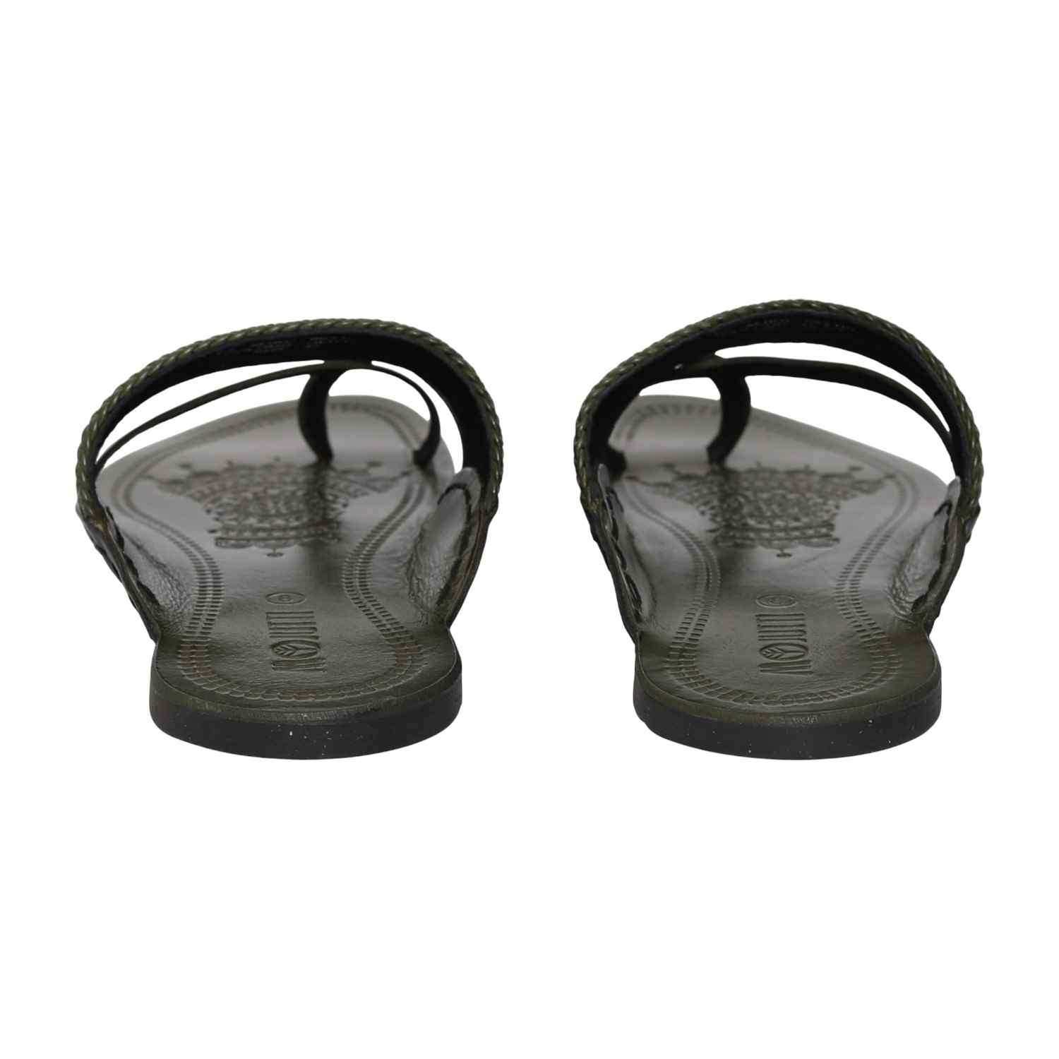 This elegant piece blends earthy olive hues with traditional structure, offering a modern interpretation of classic Kolhapuri style. Its intricate detailing and smooth finish make it a standout for everyday sophistication and festive occasions alike.