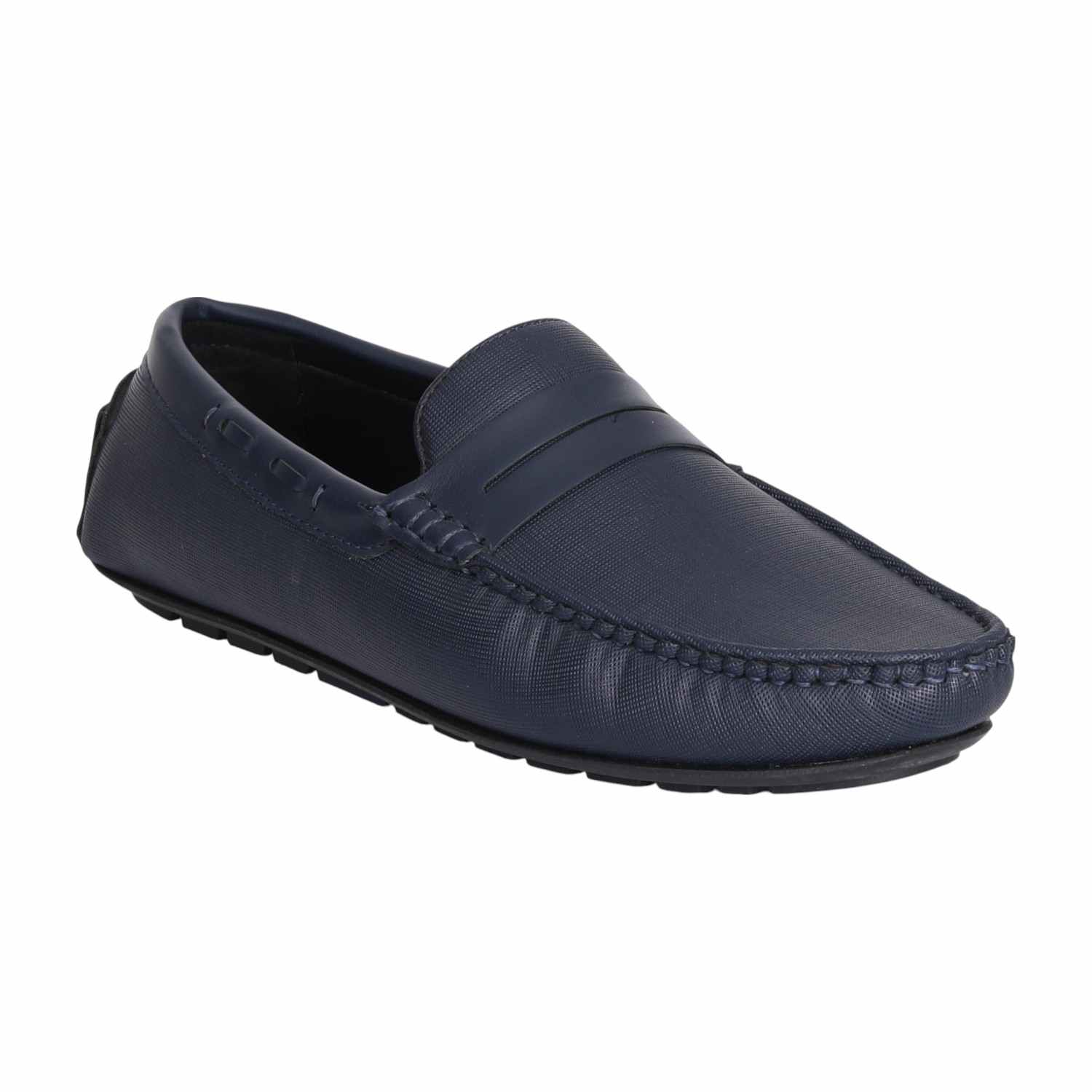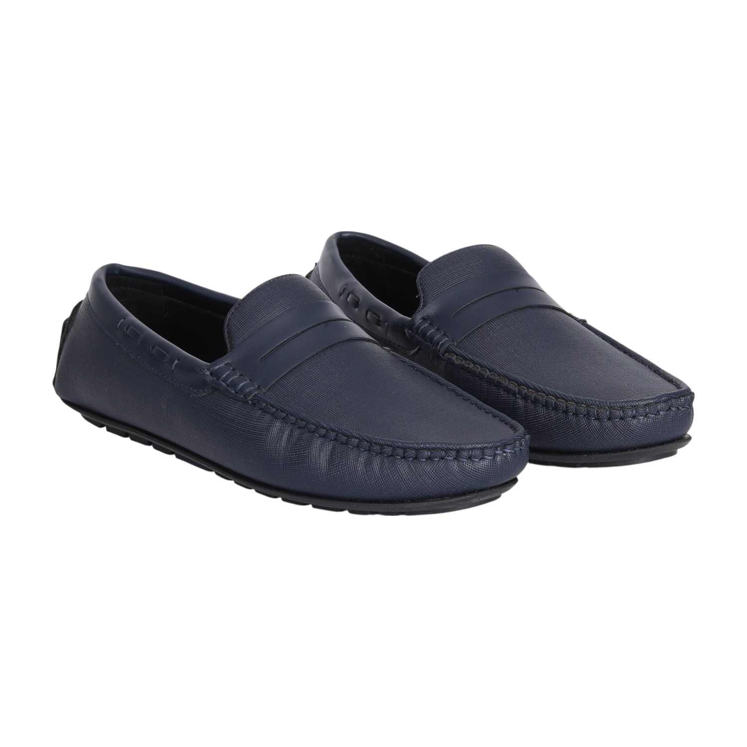 Classic penny loafers in a rich navy hue with a refined textured finish. Featuring a sleek slip-on design, moccasin-style stitching, and a low-profile sole for all-day comfort. A versatile choice that pairs well with both casual and smart-casual outfits.