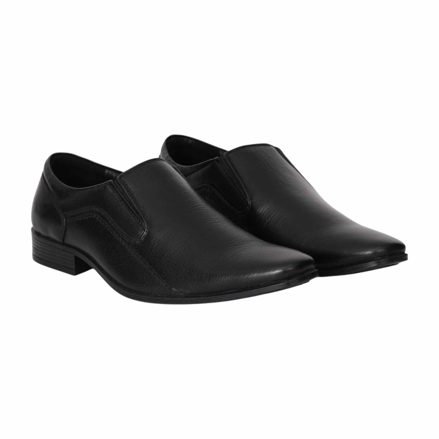 Step into refined style with these polished black slip-on shoes. Perfectly blending versatility and comfort, they pair effortlessly with suits or business attire, making them a must-have for any formal occasion.