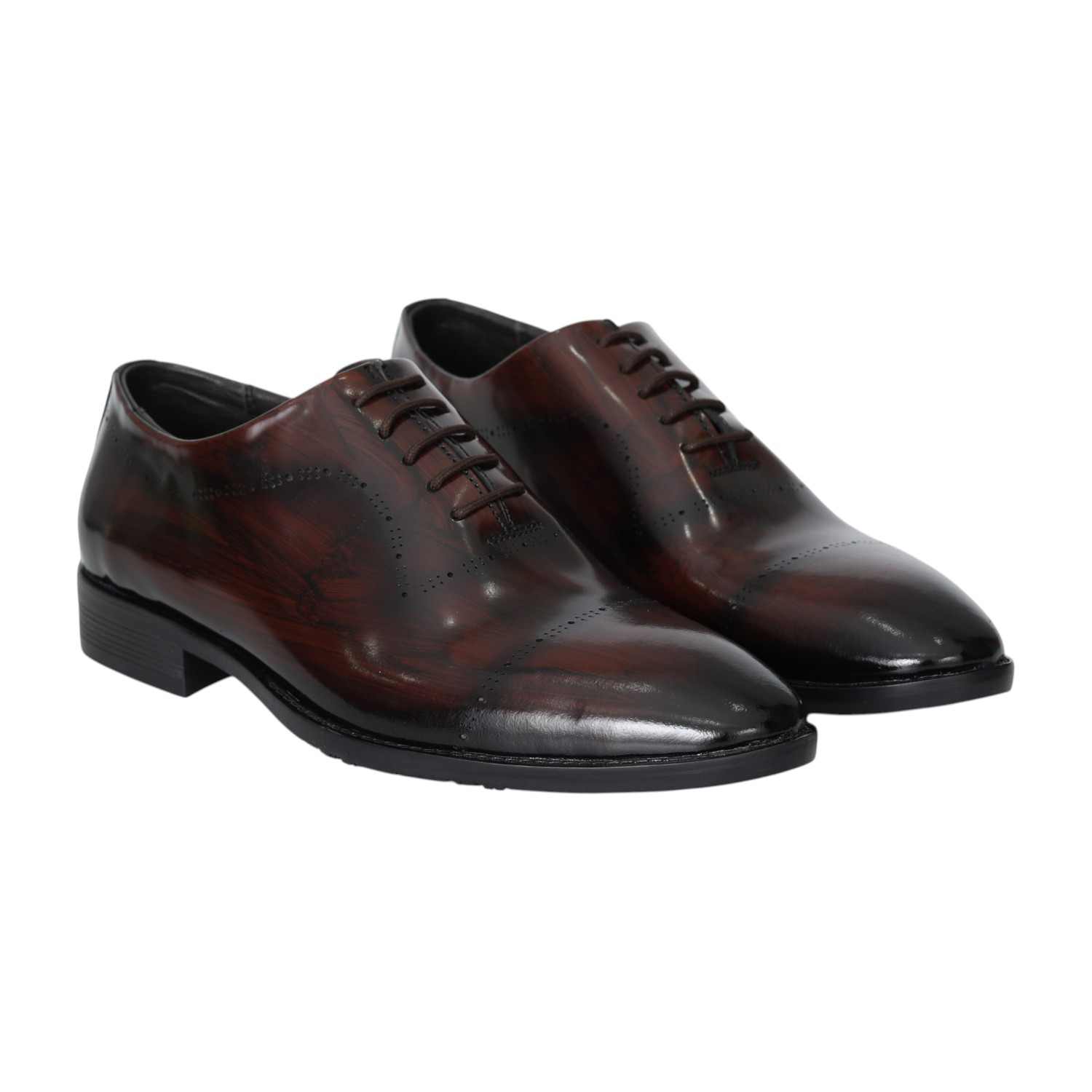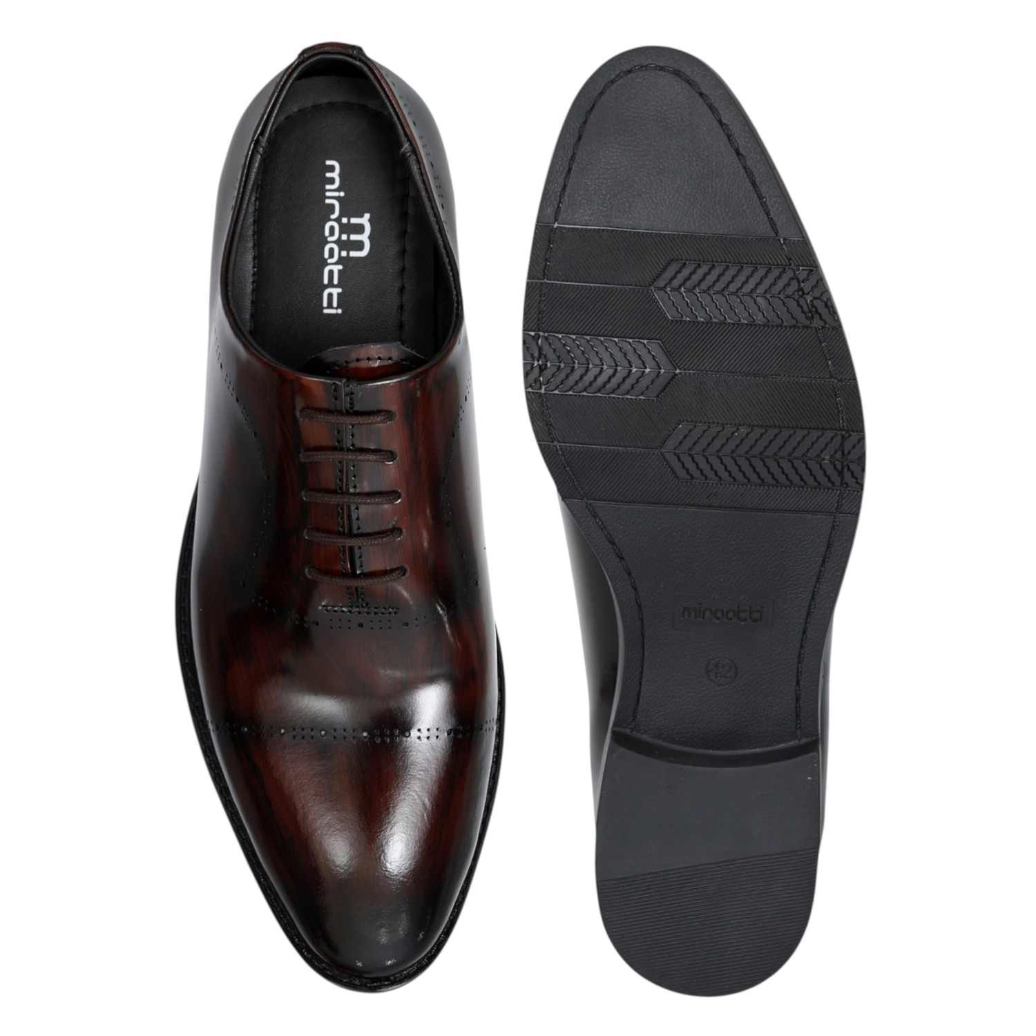 Make a sharp impression with the Miraatti Pine Executive Gloss Oxford. Finished in a deep, polished pine shade, these formal shoes bring refined style to any wardrobe. Designed with clean cap-toe detailing and a glossy finish, they are ideal for the modern professional or for special events where dressing sharp is a must. The structured sole and comfortable interior ensure that style meets practicality.