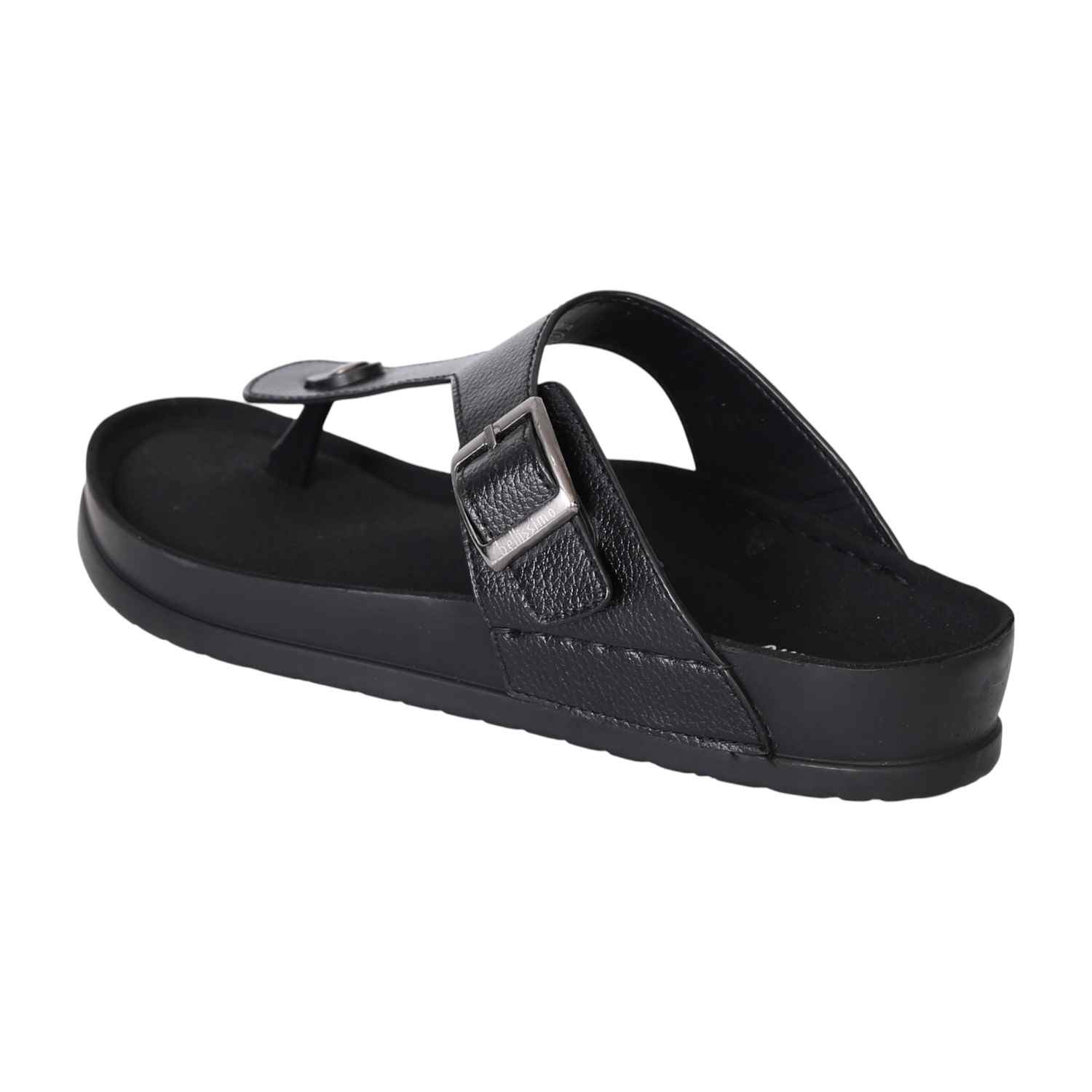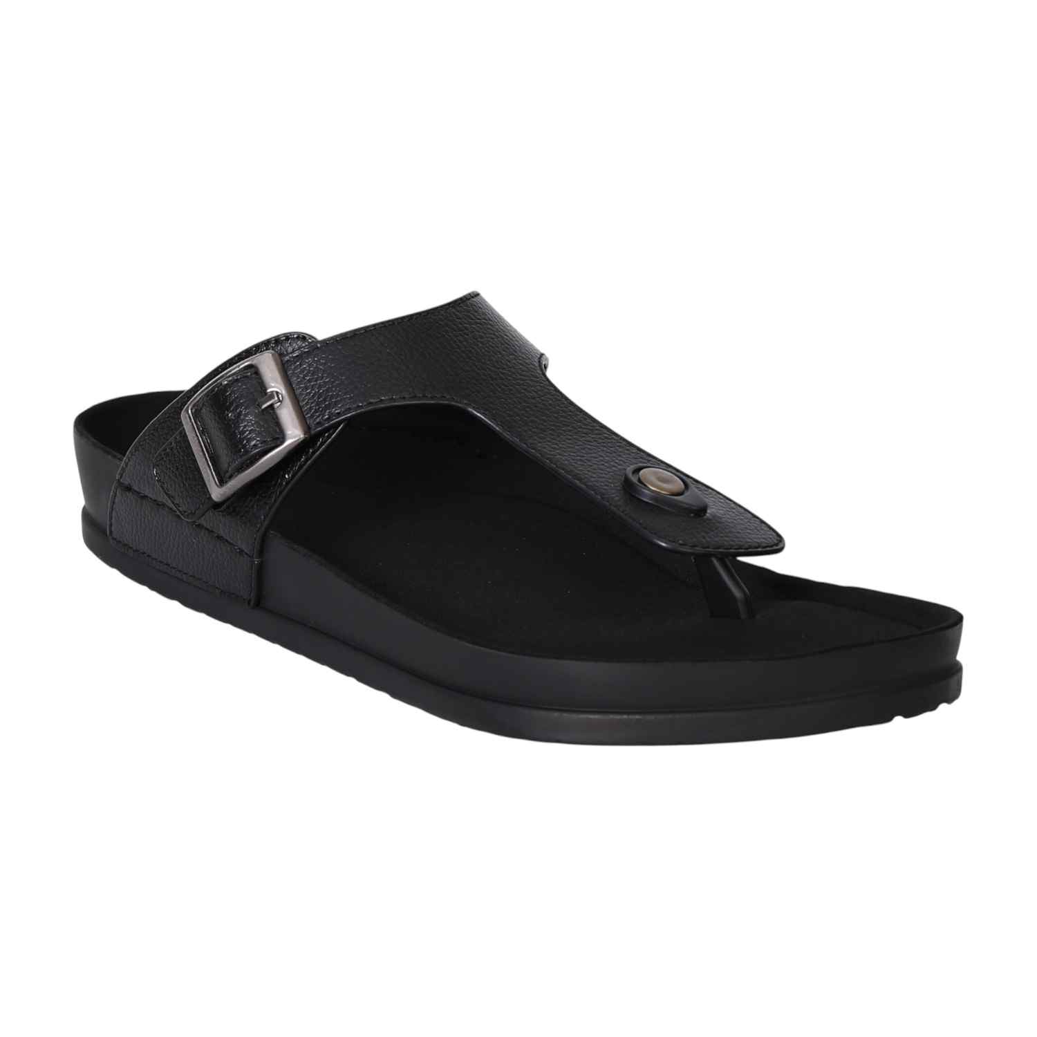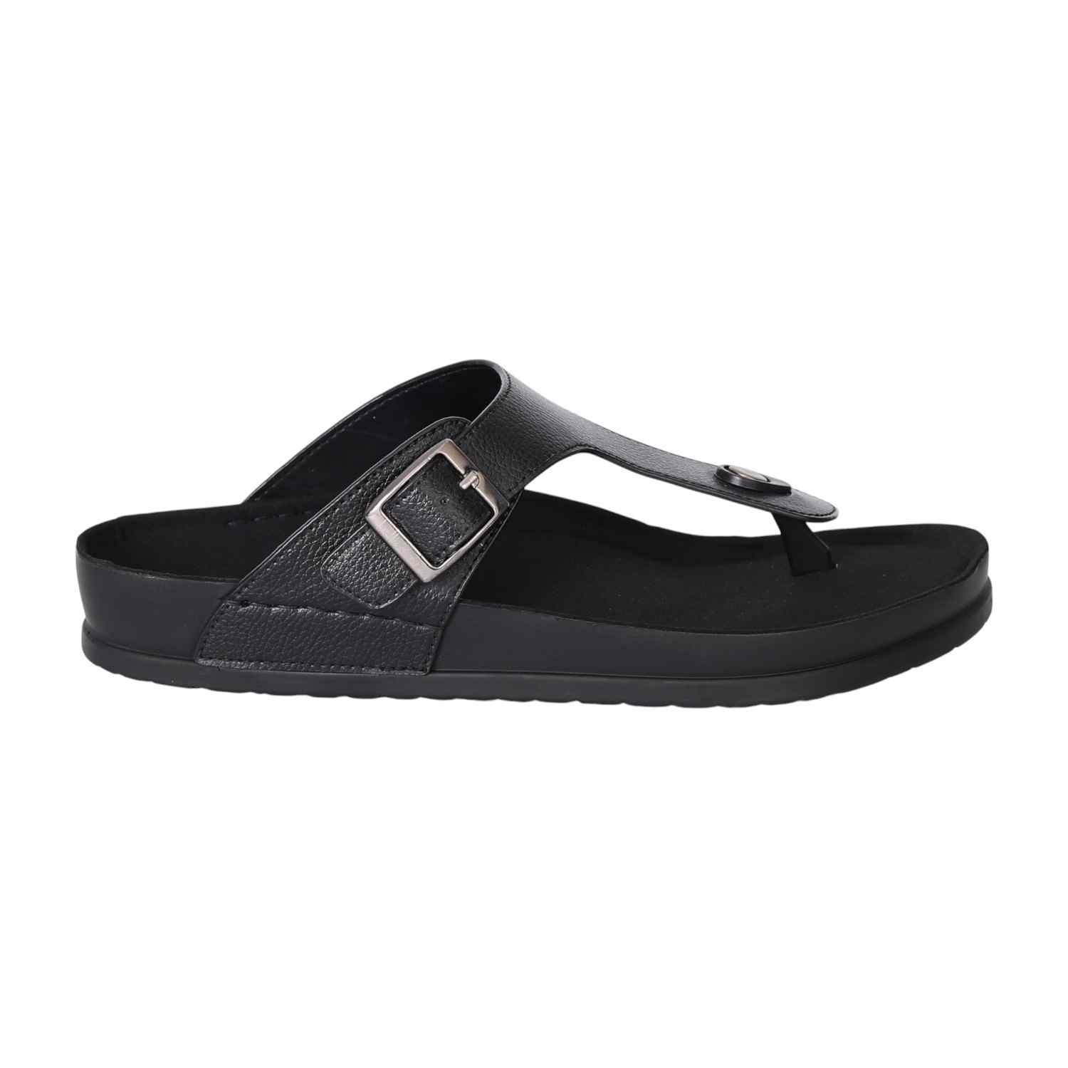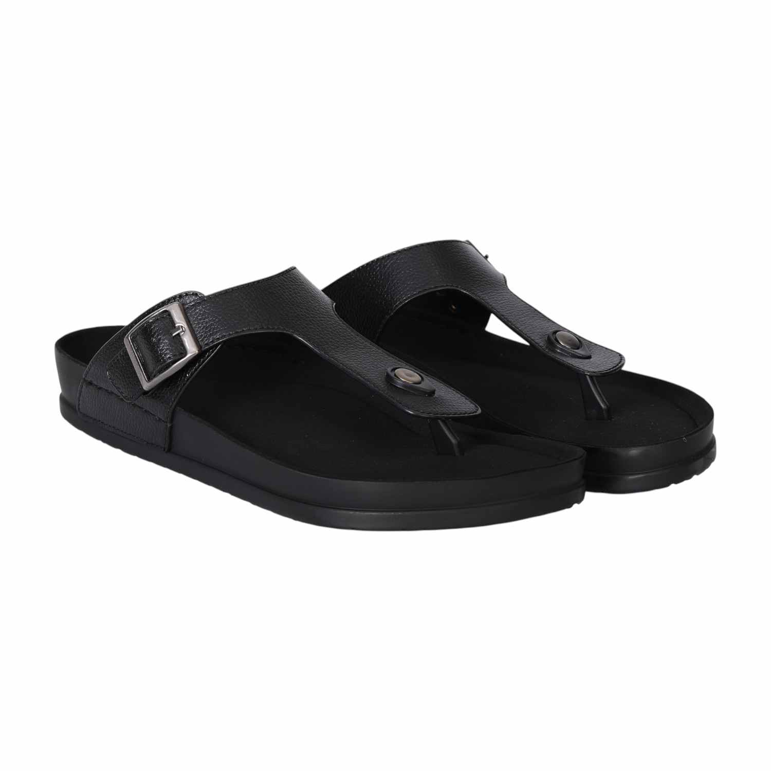 Embrace effortless style with these men's black buckle slide sandals. Designed with a sleek, modern silhouette, they feature a premium synthetic upper, adjustable buckle strap for a secure fit, and a cushioned footbed that ensures all-day comfort. The lightweight sole provides excellent grip and durability, making them ideal for casual outings, daily wear, or laid-back weekends. Versatile and timeless, these sandals pair perfectly with everything from jeans to shorts.