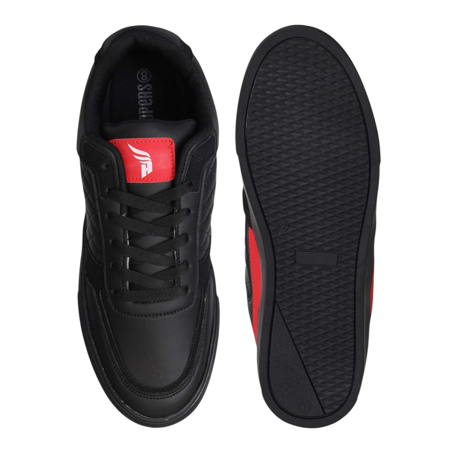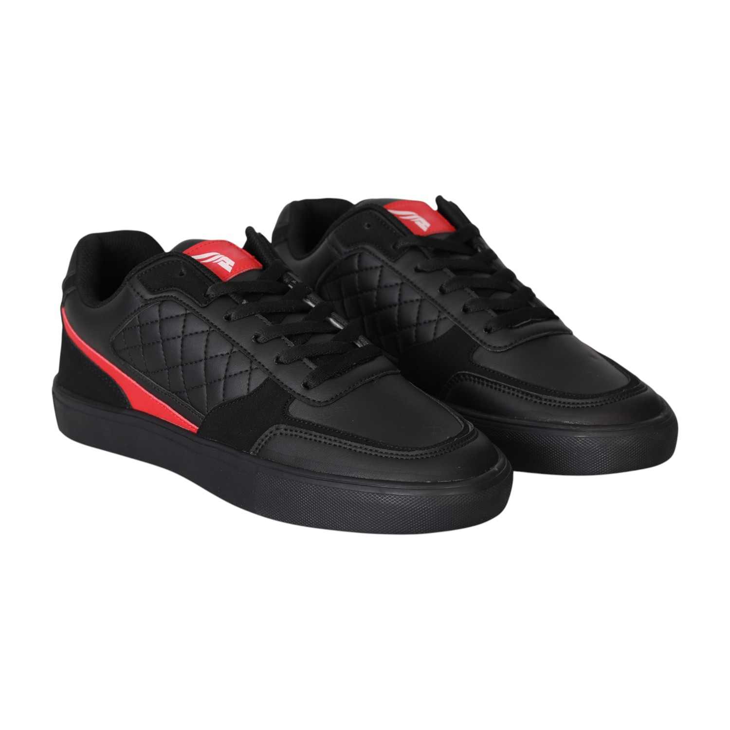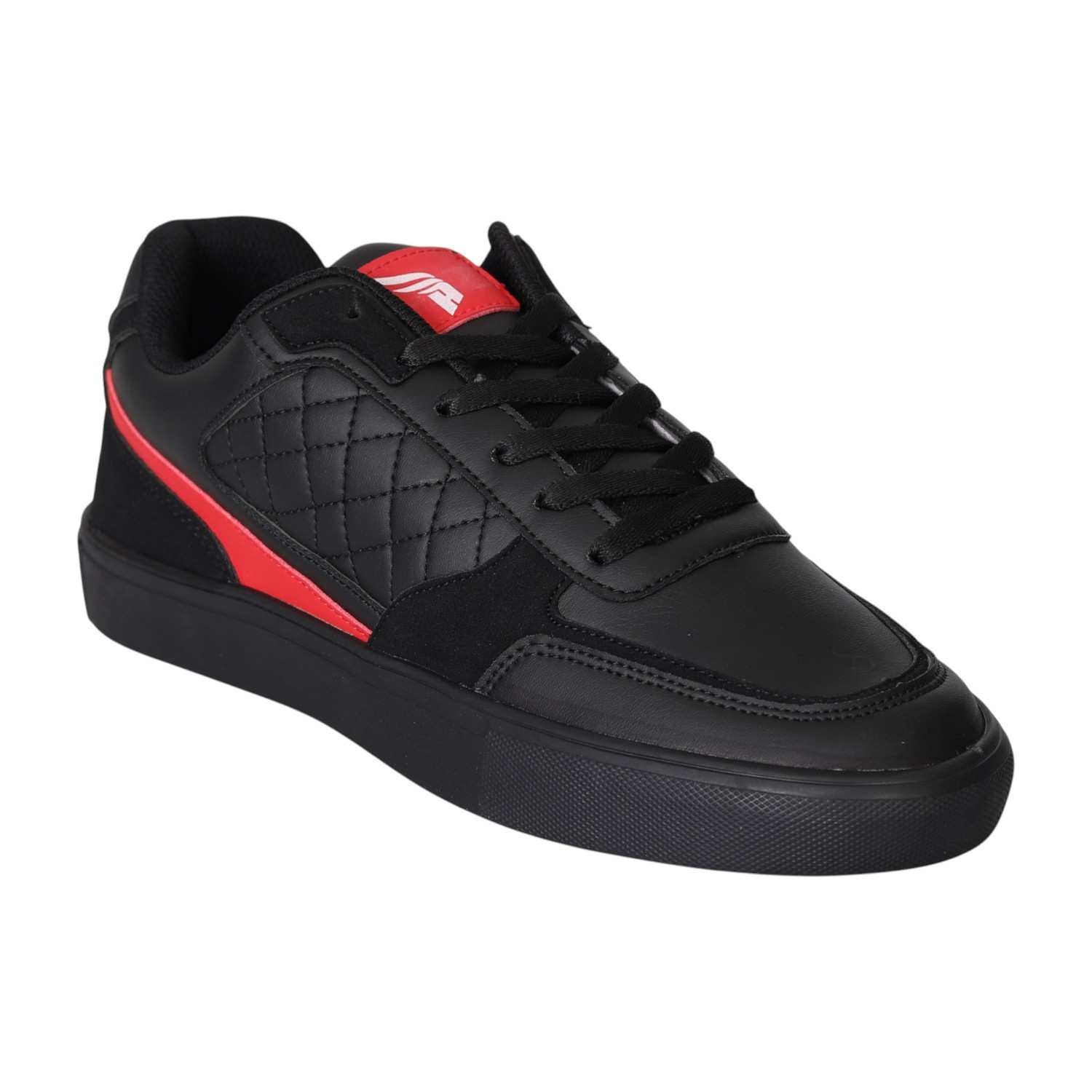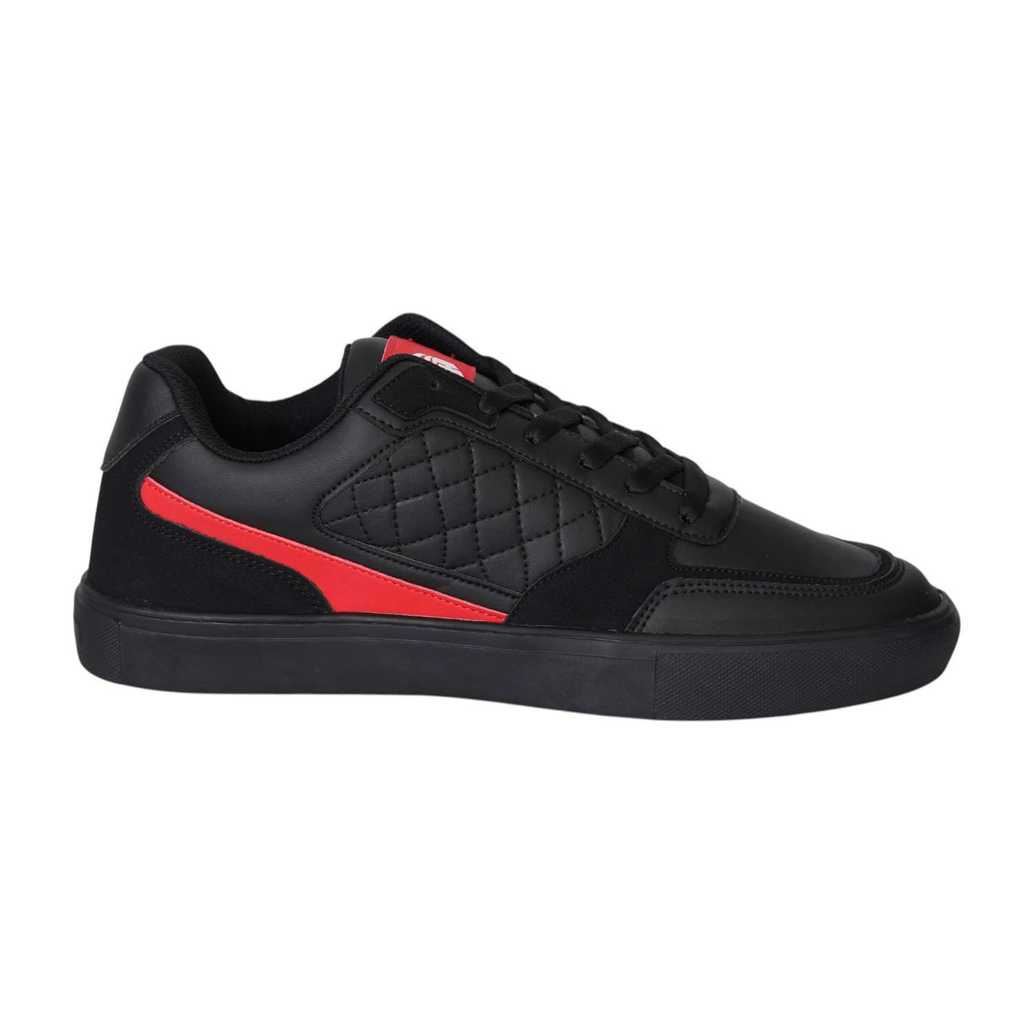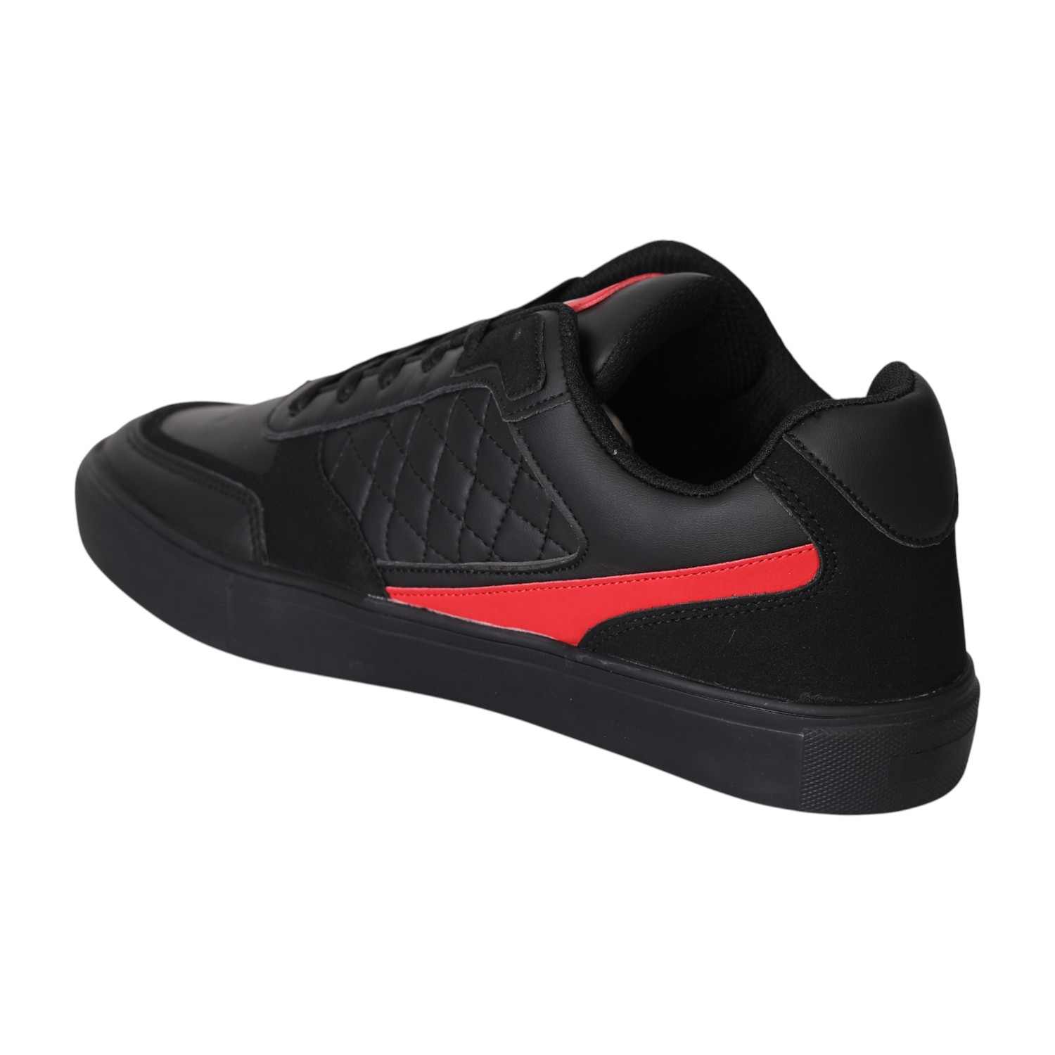 Bold and versatile, these street sneakers feature an all-black base with striking red accents for a dynamic look. The quilted side panels add a premium touch, while the cushioned insole keeps you comfortable throughout the day. Built with a sturdy outsole and a low-top profile, these sneakers are perfect for casual outings, streetwear fits, or weekend adventures. The lace-up design ensures a secure, stylish fit every time.