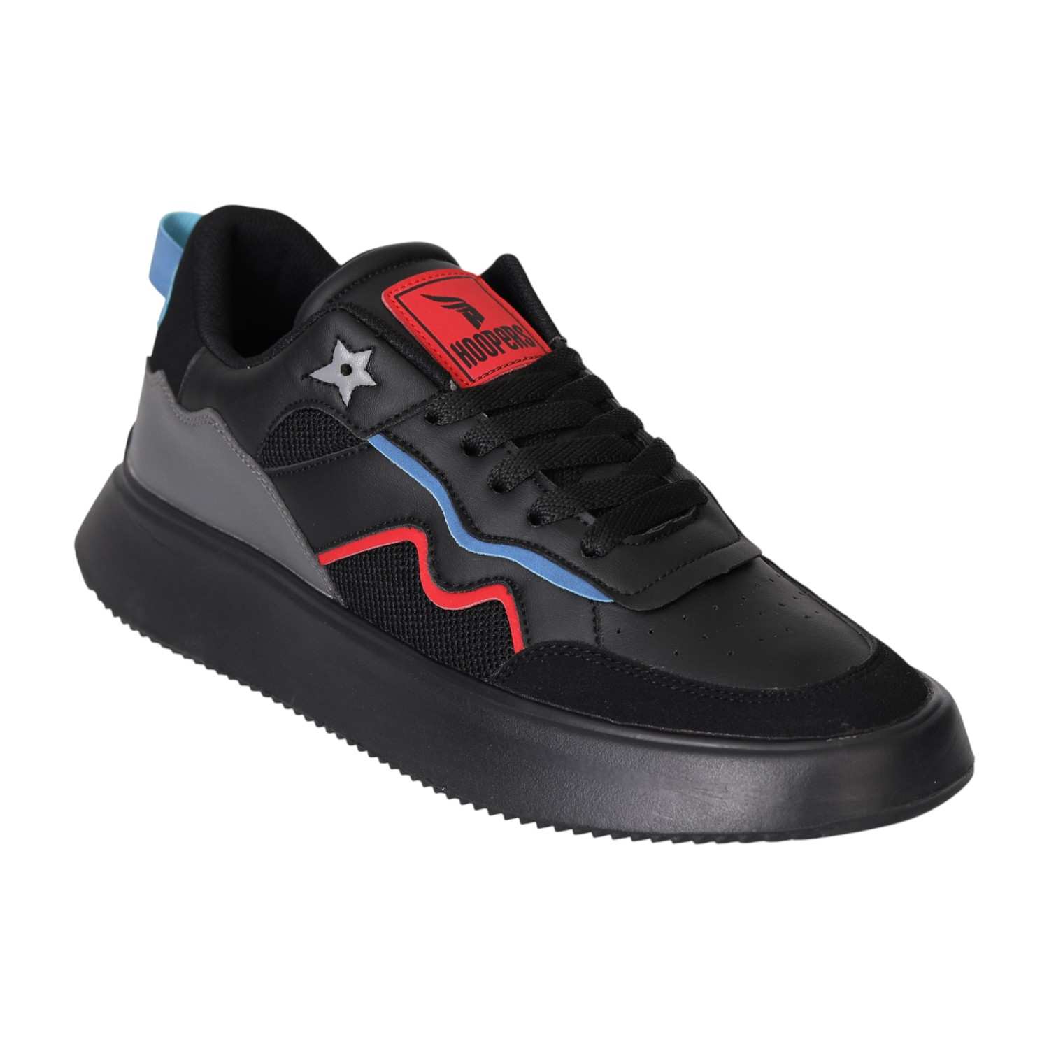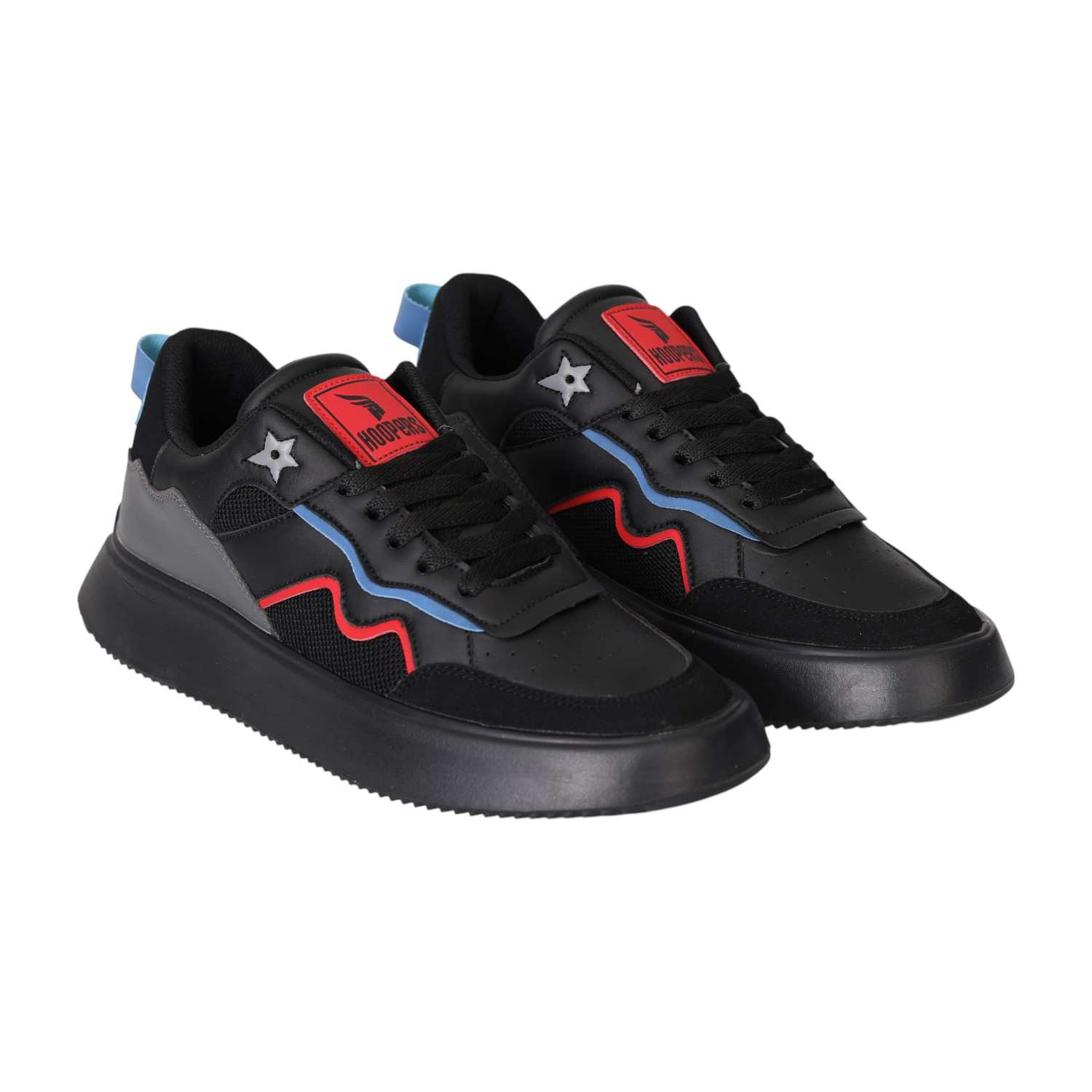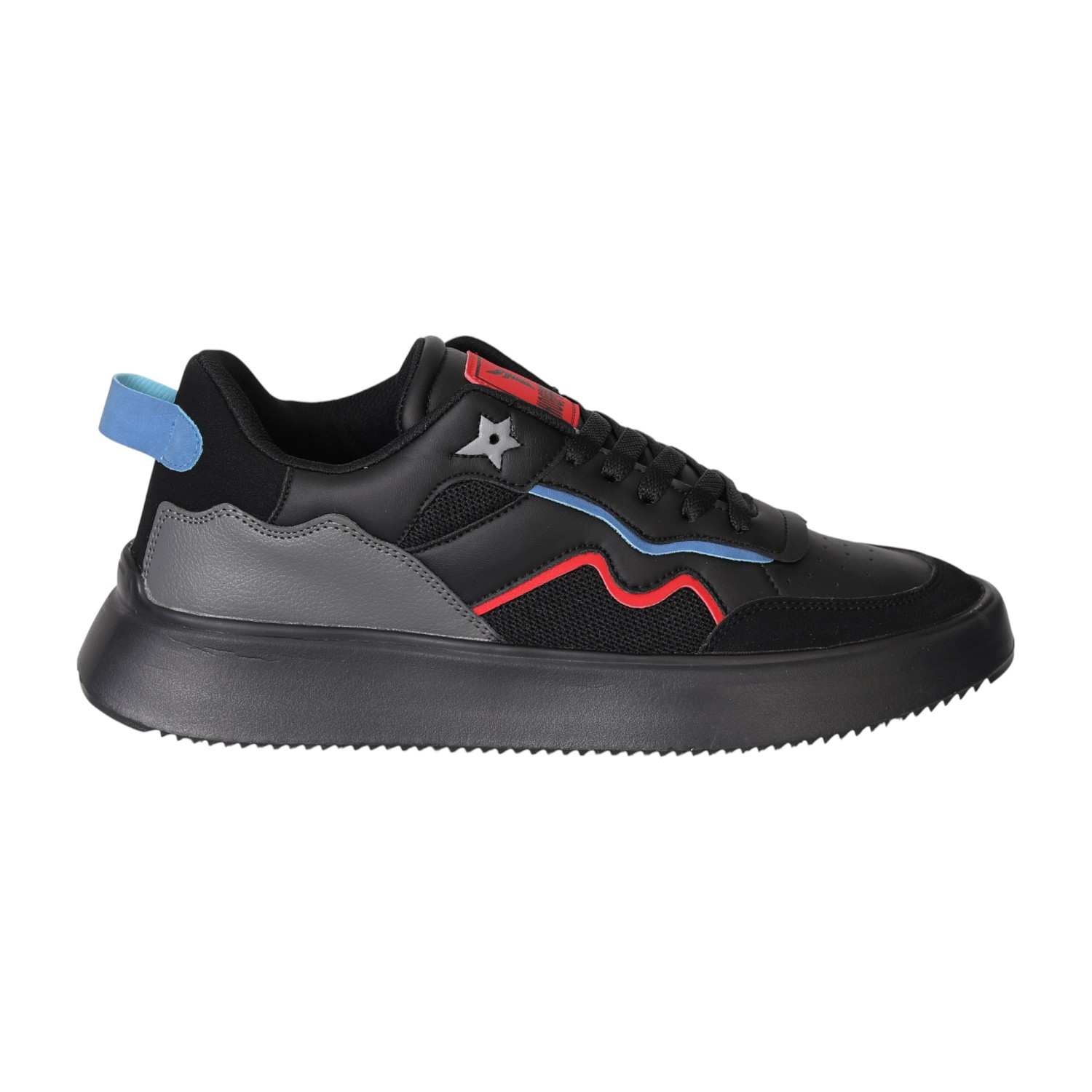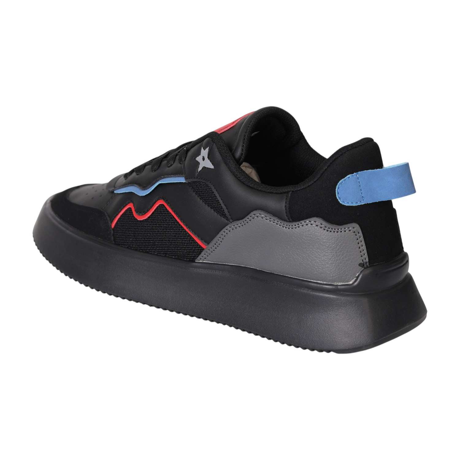 Featuring a sleek black base highlighted by bold red and blue accents, these sneakers deliver a fresh and dynamic look. Breathable materials ensure comfort all day, while the sturdy sole provides excellent traction and support for urban adventures.