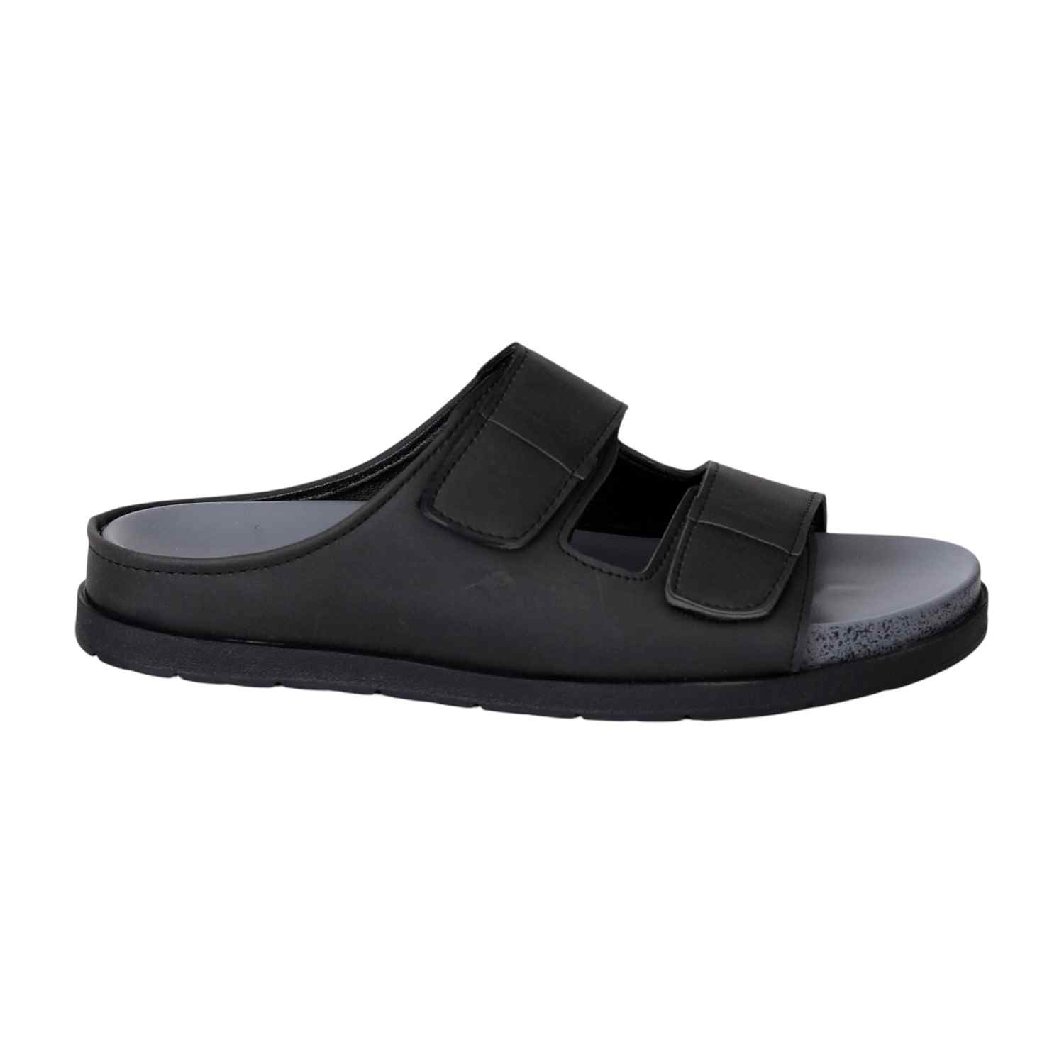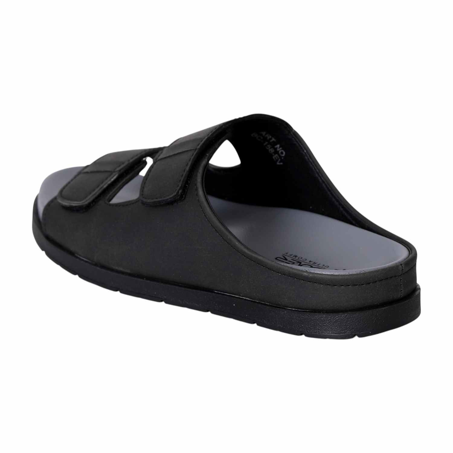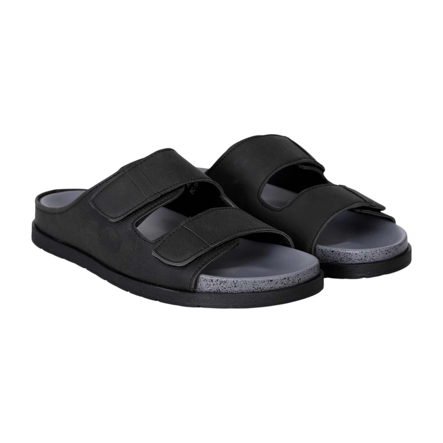 Designed for all-day ease, these slides feature broad adjustable straps that offer a snug, personalized fit. The contoured footbed provides cushioned support, while the lightweight sole ensures flexibility and traction. Finished in a sleek black with subtle speckle detailing, they’re ideal for effortless, everyday wear with a modern edge.