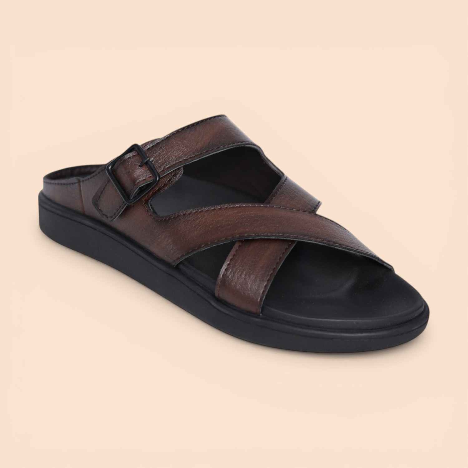 Elevate your casual footwear with these Men’s Brown Cross-Strap Comfort Sandals. Crafted for comfort and ease, these sandals feature a timeless cross-strap pattern paired with an adjustable buckle for a snug fit. The cushioned insole supports your feet during long hours of wear, while the sturdy outsole offers dependable traction. A perfect blend of comfort, durability, and everyday style.