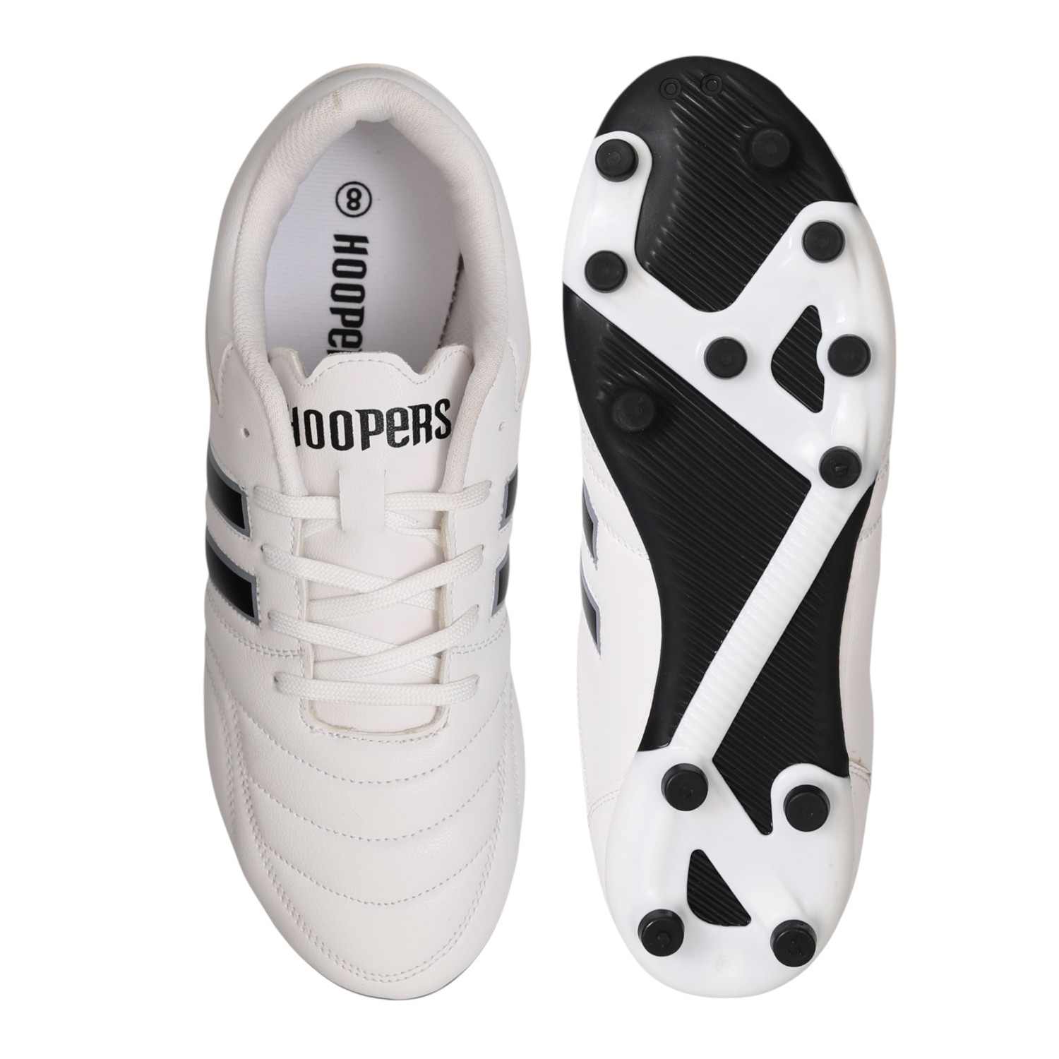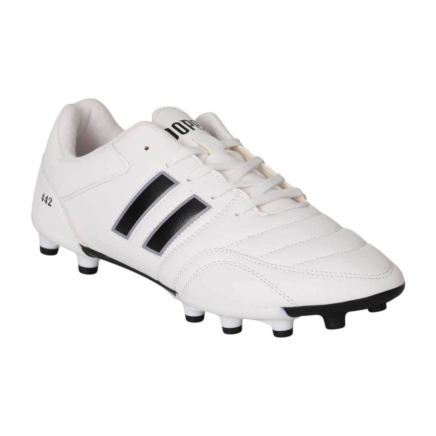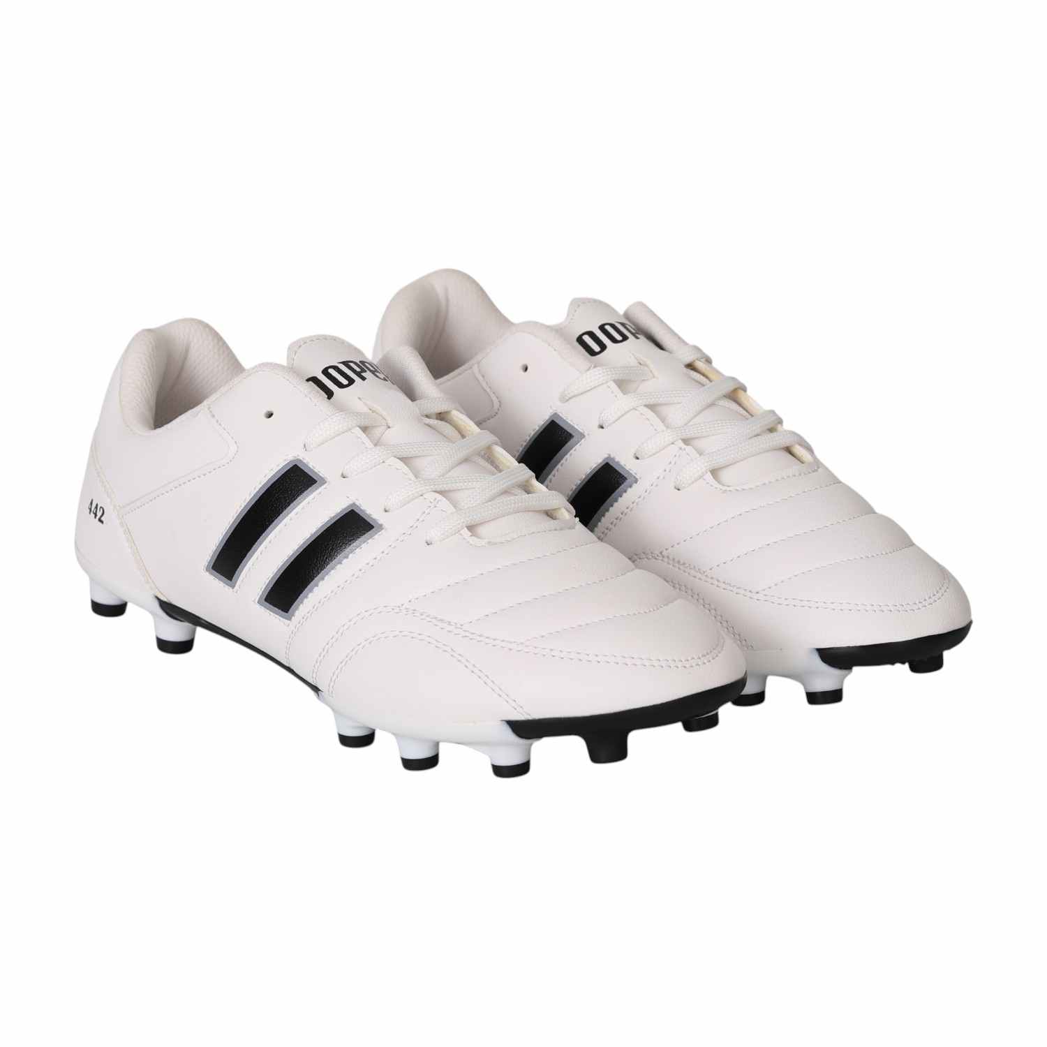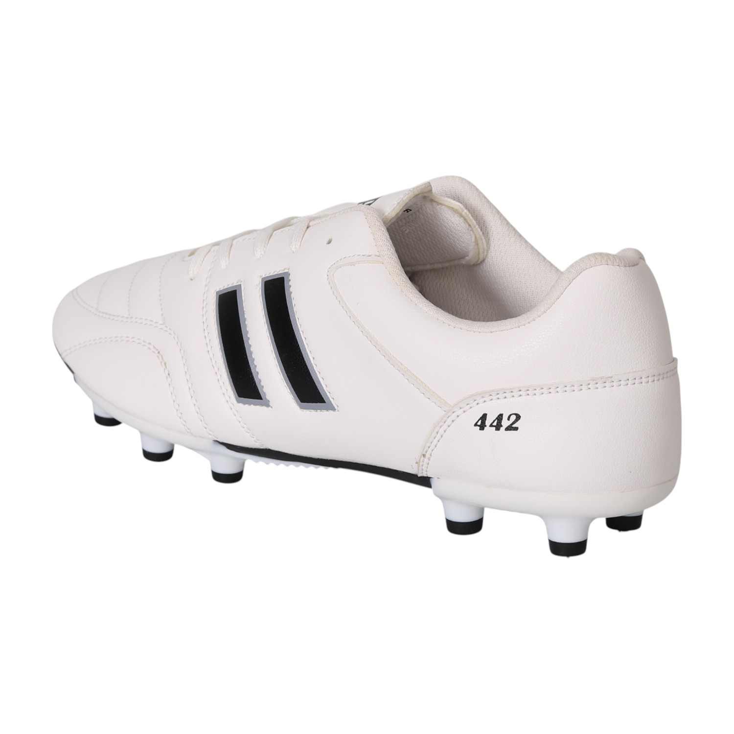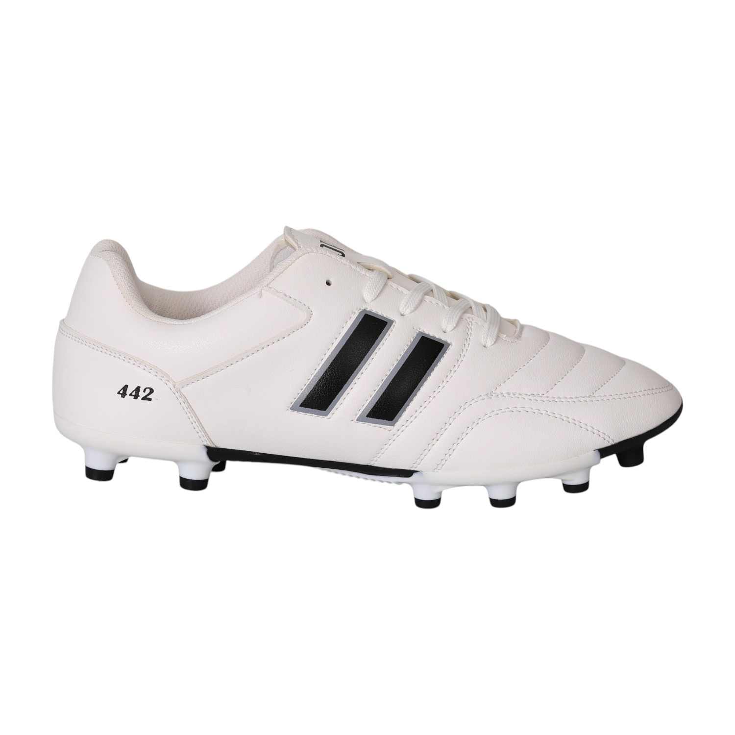 Engineered for precision and control, these football studs are built to perform on the field. Featuring a sleek white upper with bold black stripes, they combine classic style with modern functionality. The strategically placed studs offer excellent grip and stability, allowing quick turns and sharp movements. With a secure lace-up design and cushioned interior, these shoes provide comfort and support during intense play.