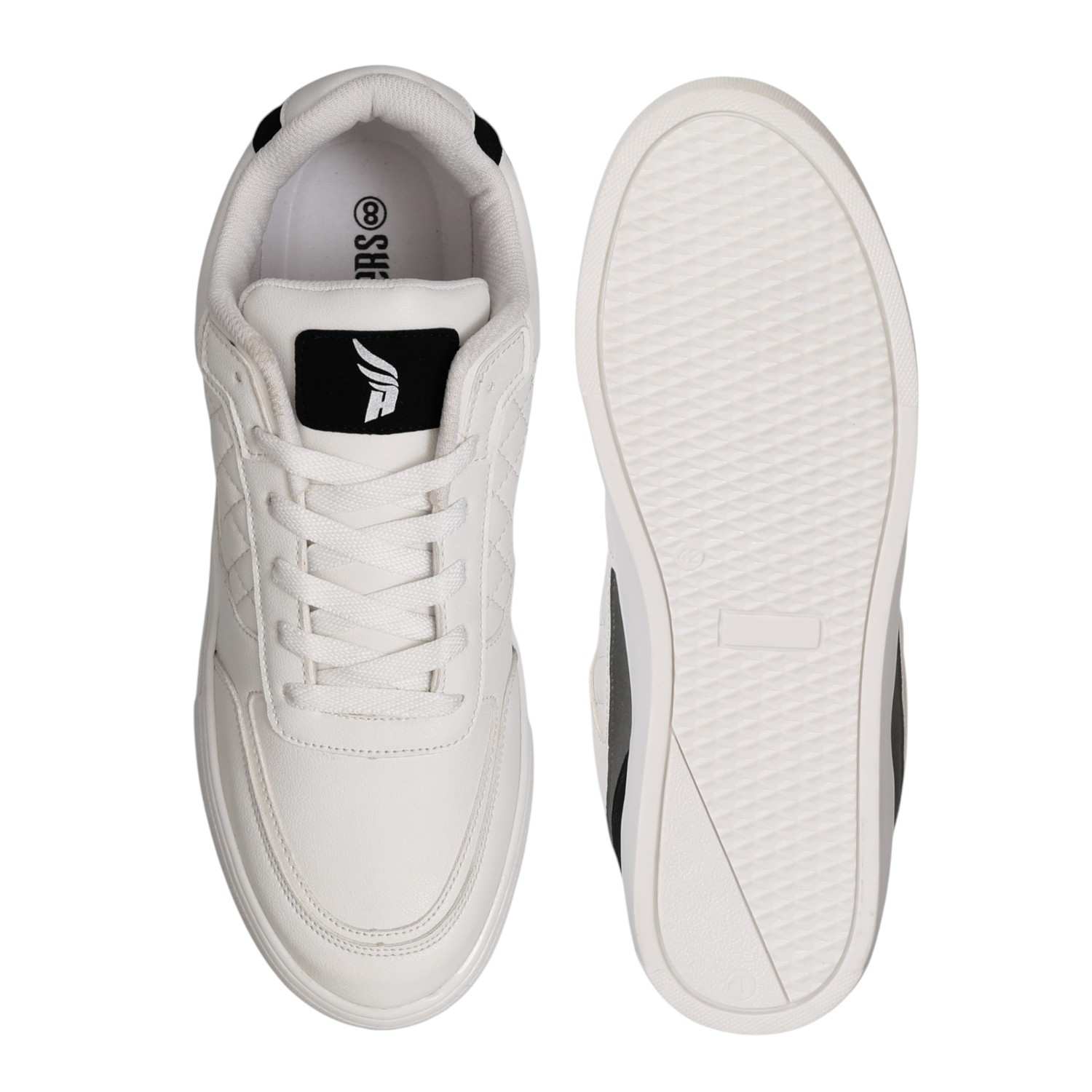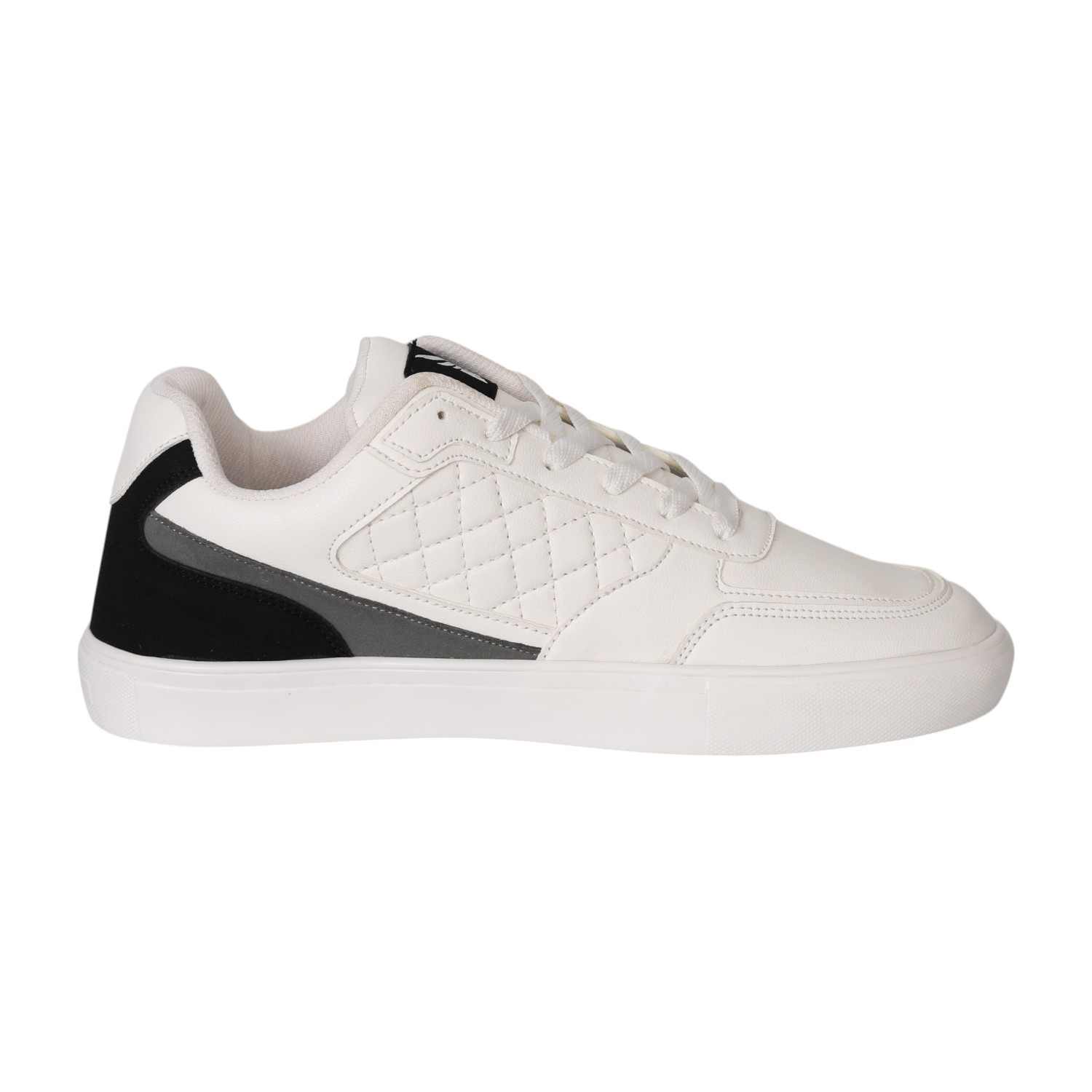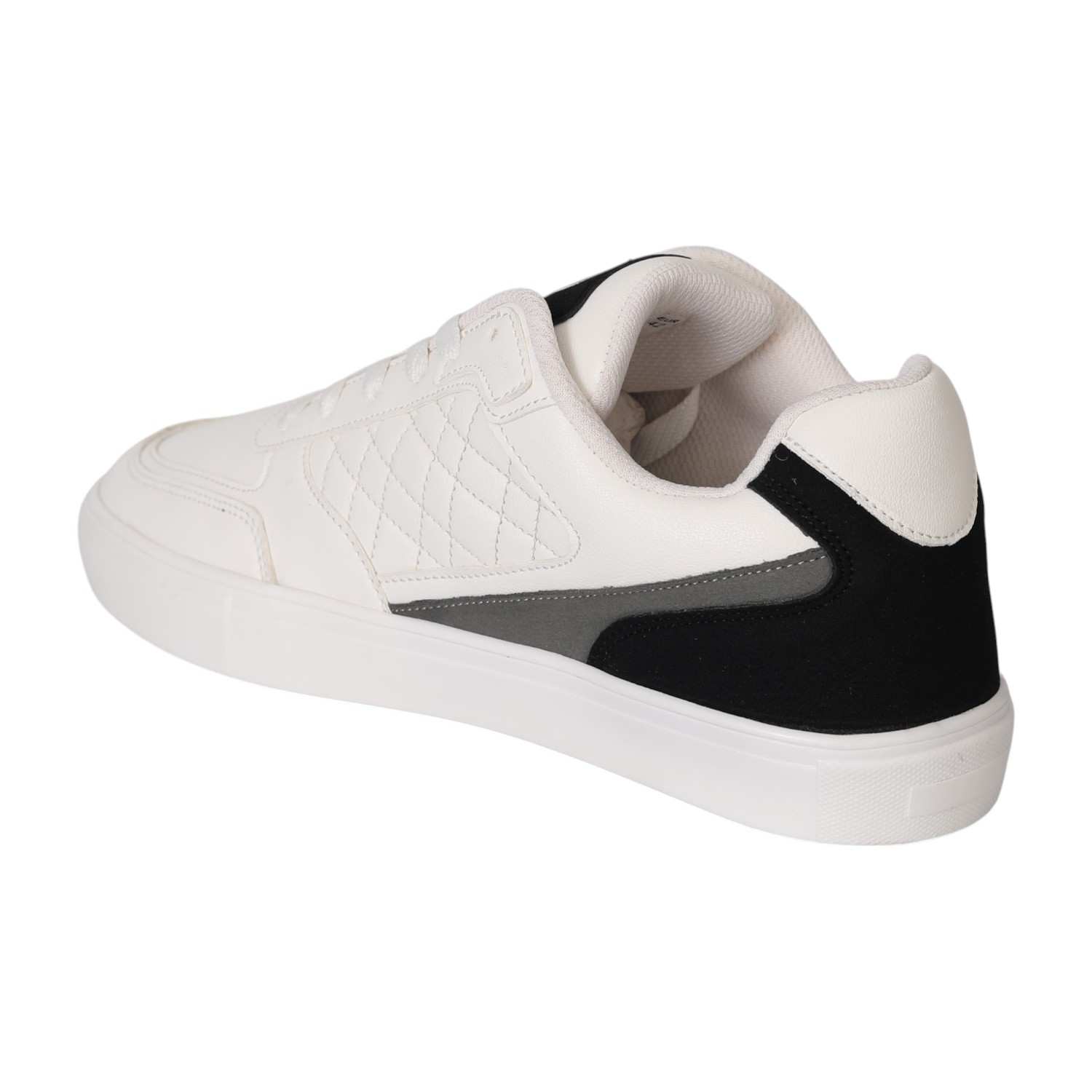 Minimalist yet bold, these sneakers are designed for modern streetwear looks. The crisp white upper is enhanced with subtle quilted side panels and contrasted by sleek black and grey accents at the heel. A cushioned insole ensures all-day comfort, while the durable outsole provides steady grip. Perfect for casual days, city walks, or laid-back weekends, these sneakers balance style and comfort effortlessly.