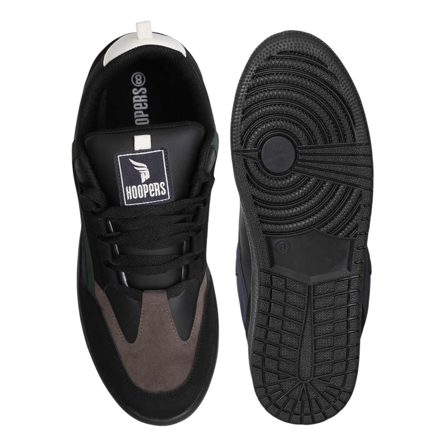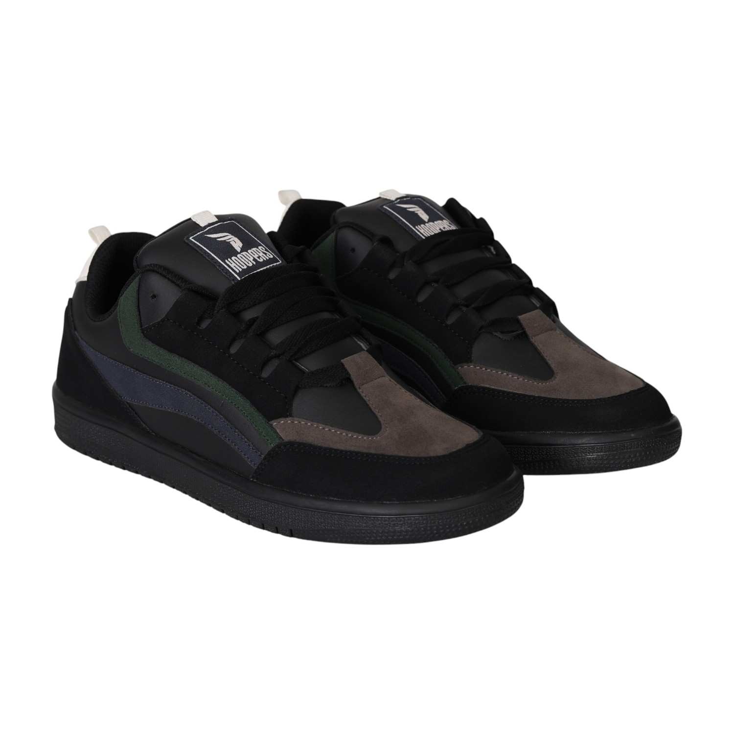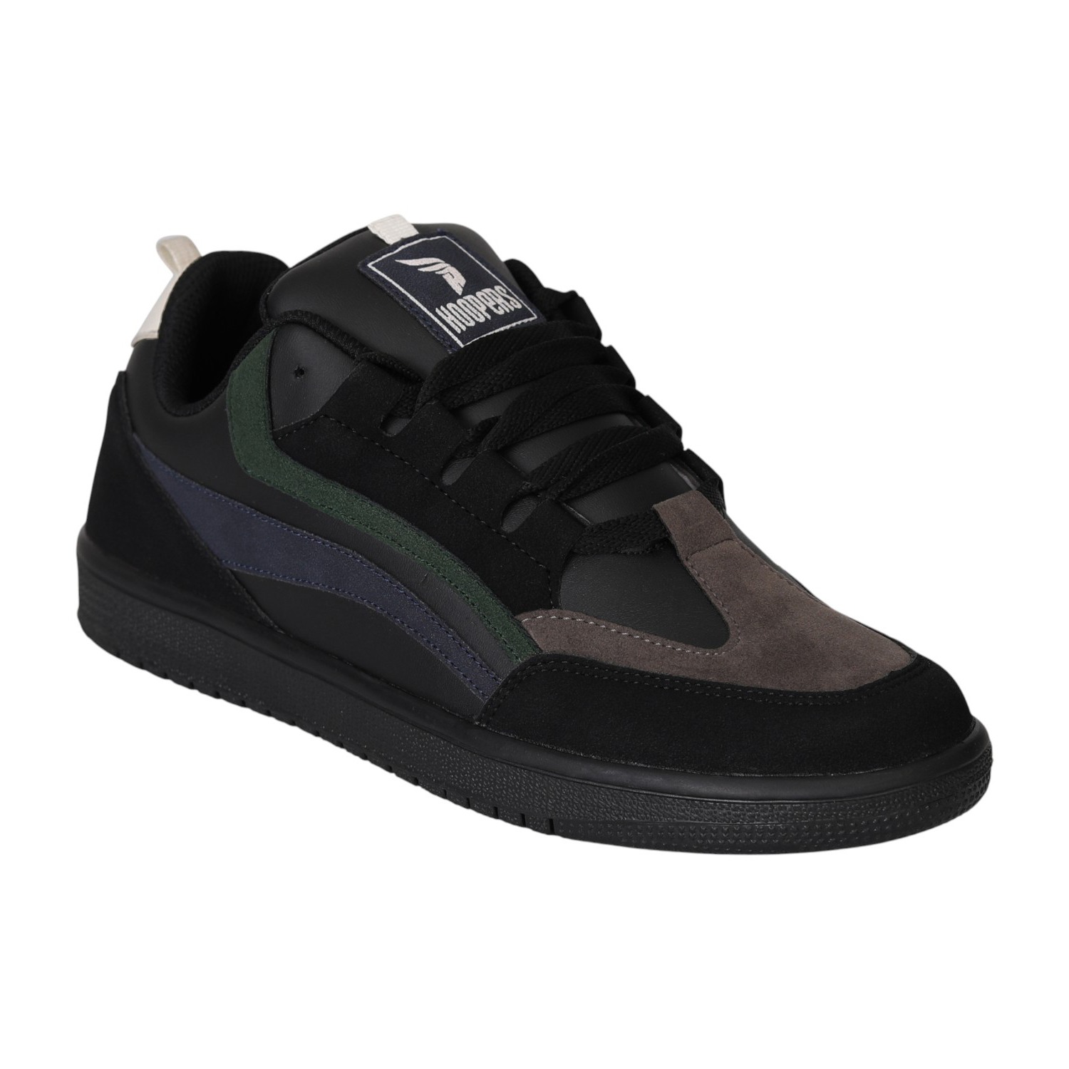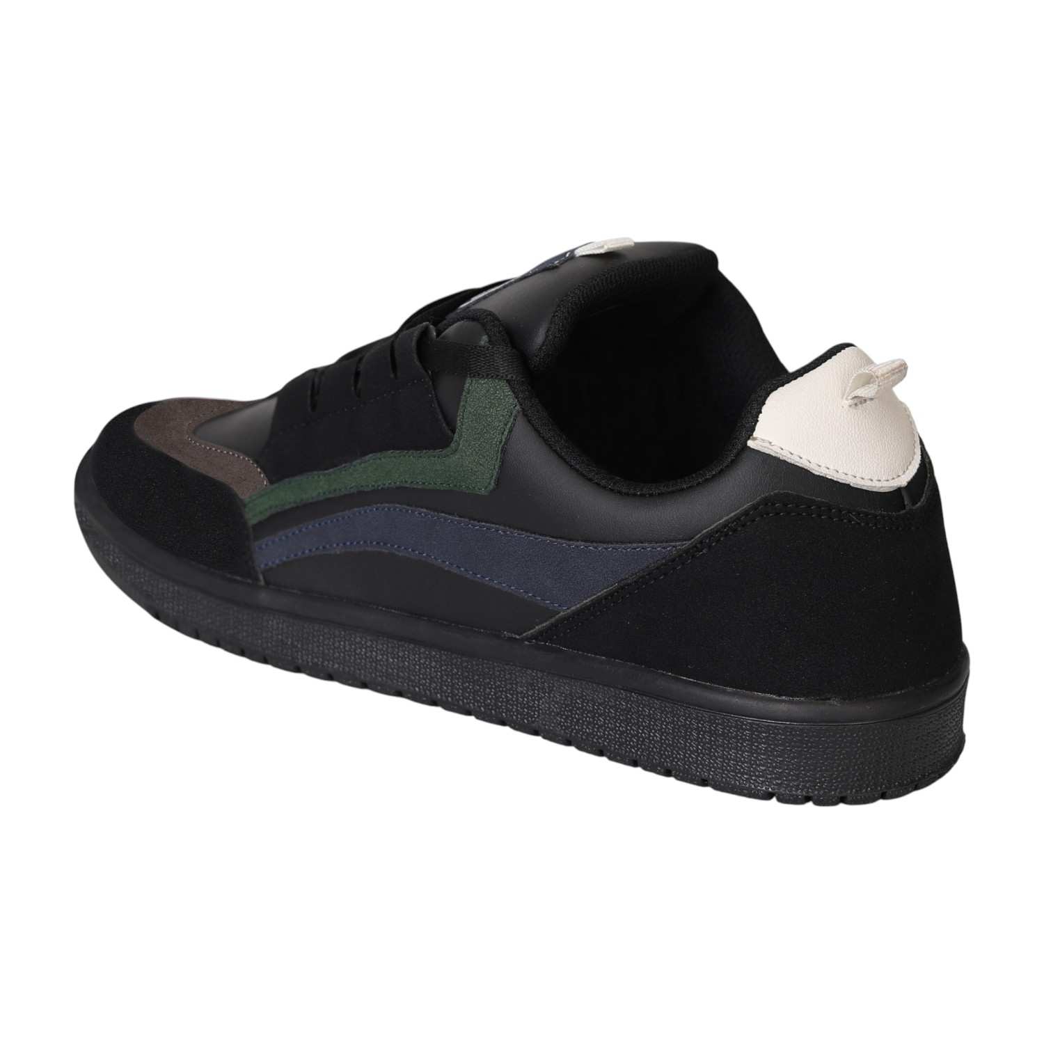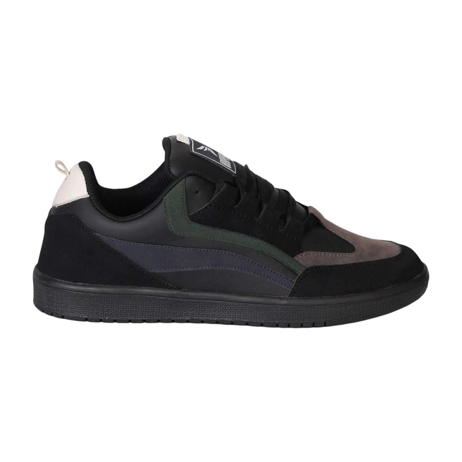 A sleek and versatile low-top sneaker crafted with a black base and rich suede overlays in grey, green, and navy. Designed for both comfort and style, it features a cushioned insole, padded collar, and a durable rubber outsole. Bold branding on the tongue and contrasting pull tabs add a touch of modern flair, making it ideal for casual streetwear and everyday looks.