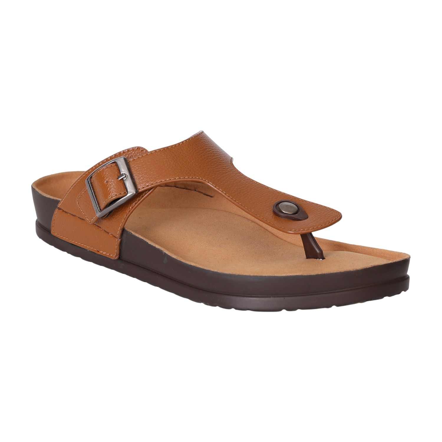 Upgrade your casual style with these men's tan buckle slide sandals. Designed for comfort and versatility, they feature a rich tan synthetic upper, adjustable strap, and cushioned footbed for all-day wear.