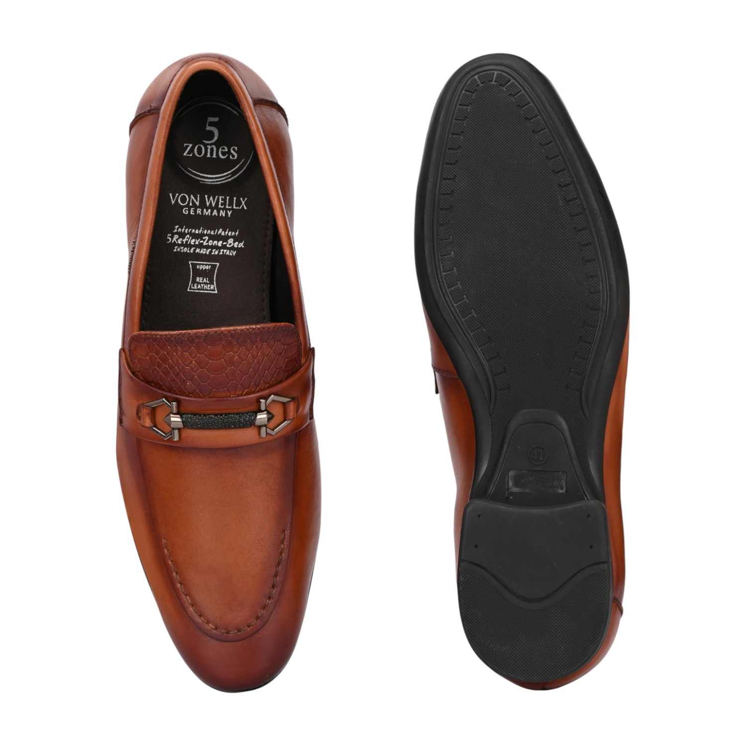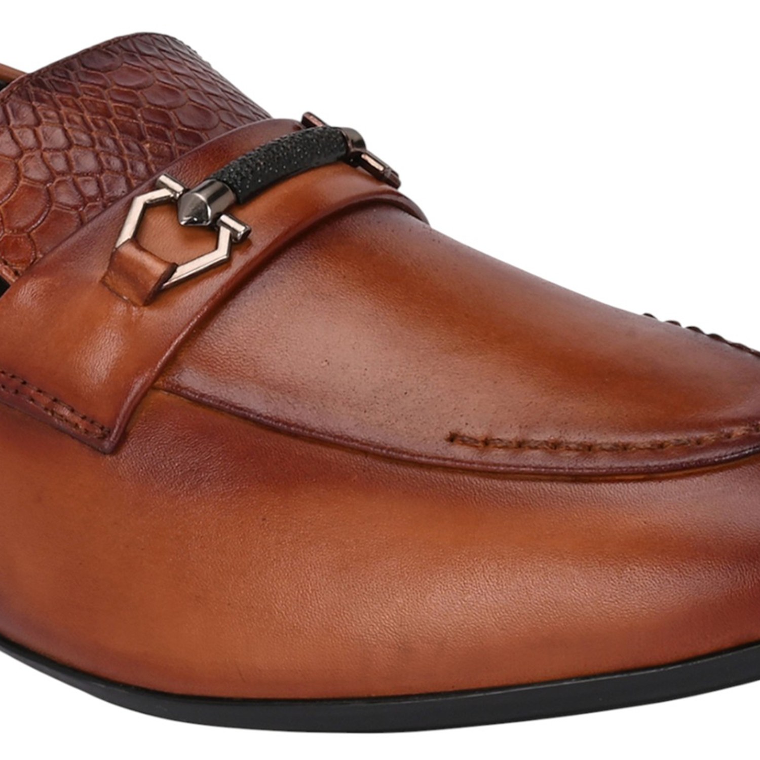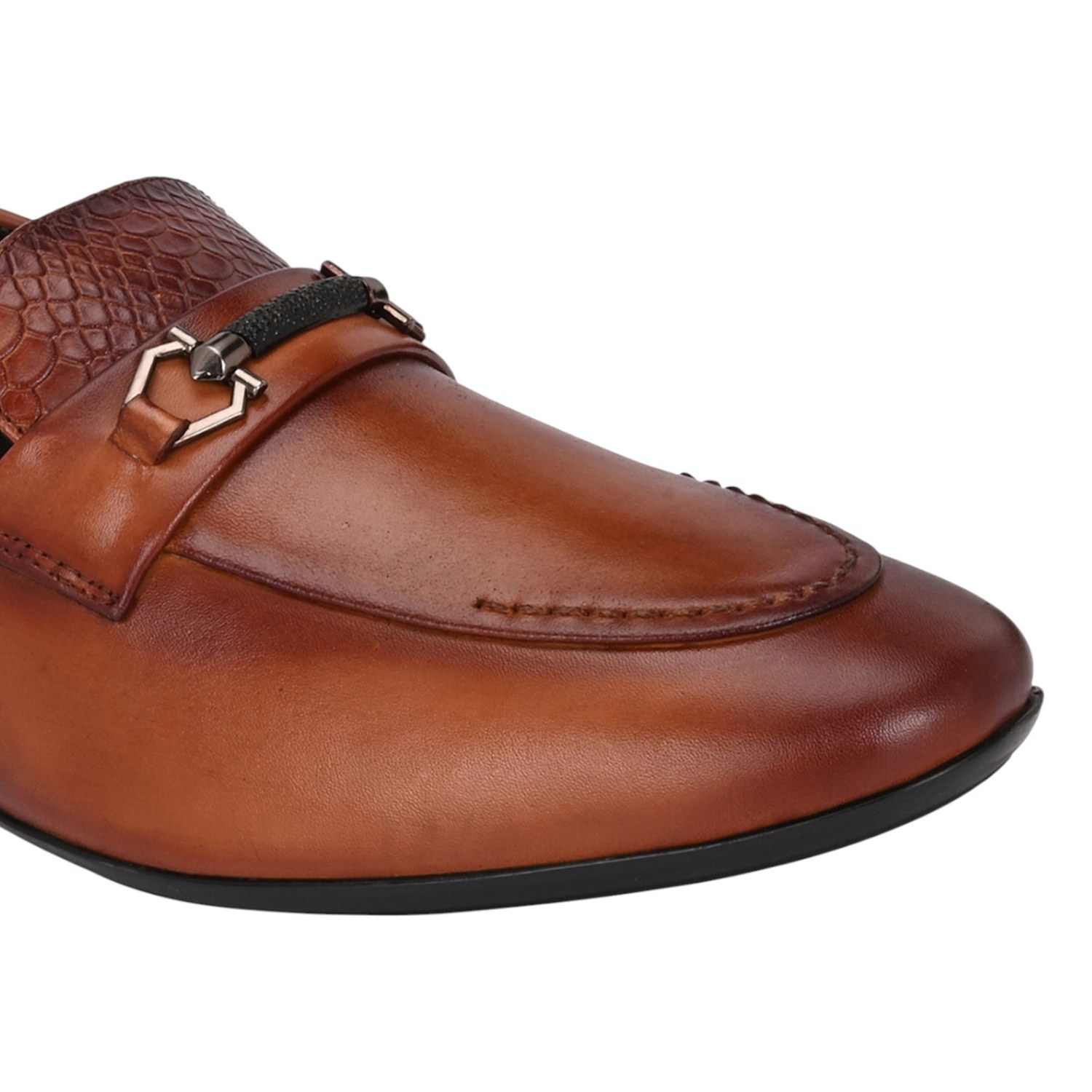 Introducing a modern and refined pair of Men's Black Bit Loafers. These slip-on shoes are crafted from smooth tan leather, offering a polished look perfect for business-casual and semi-formal occasions.