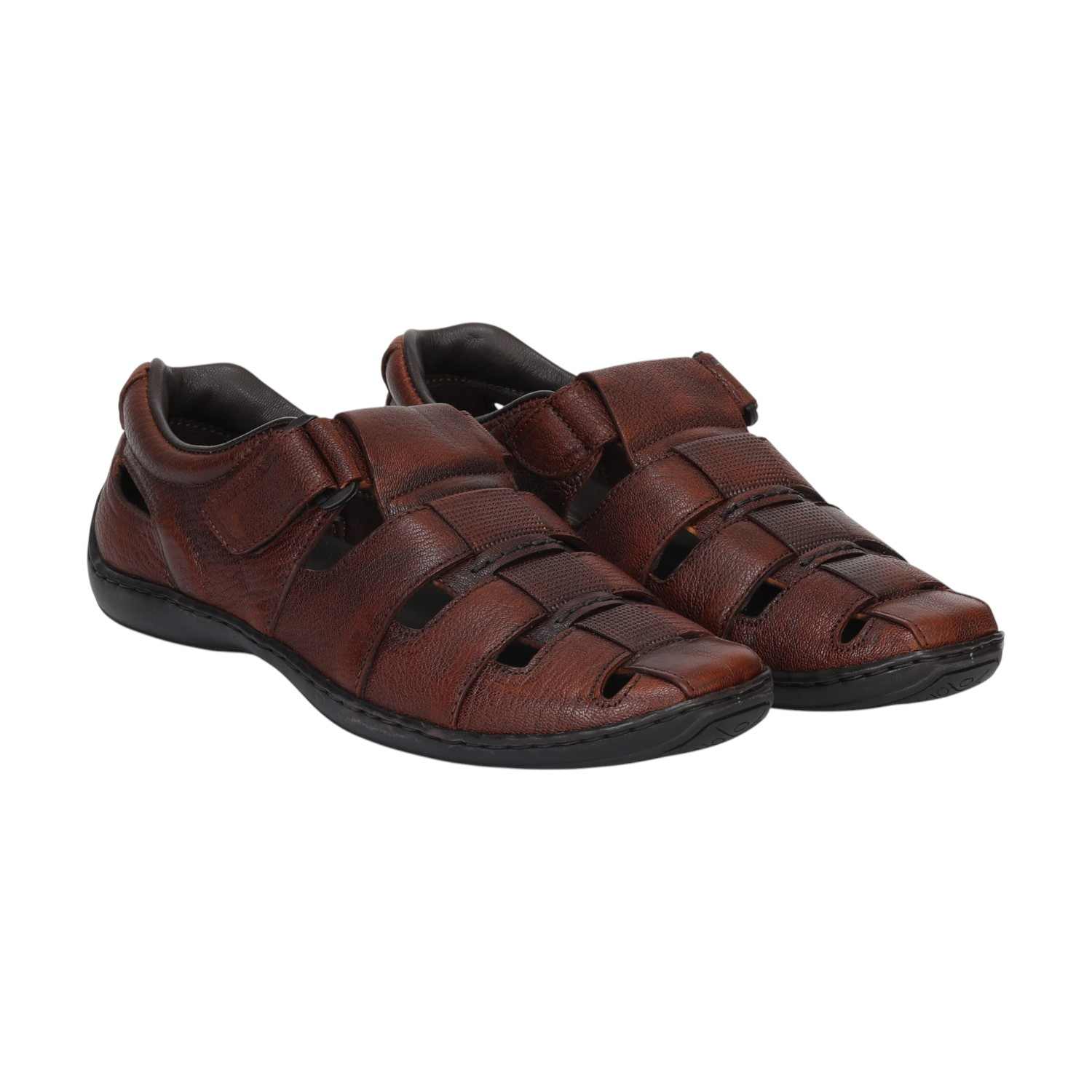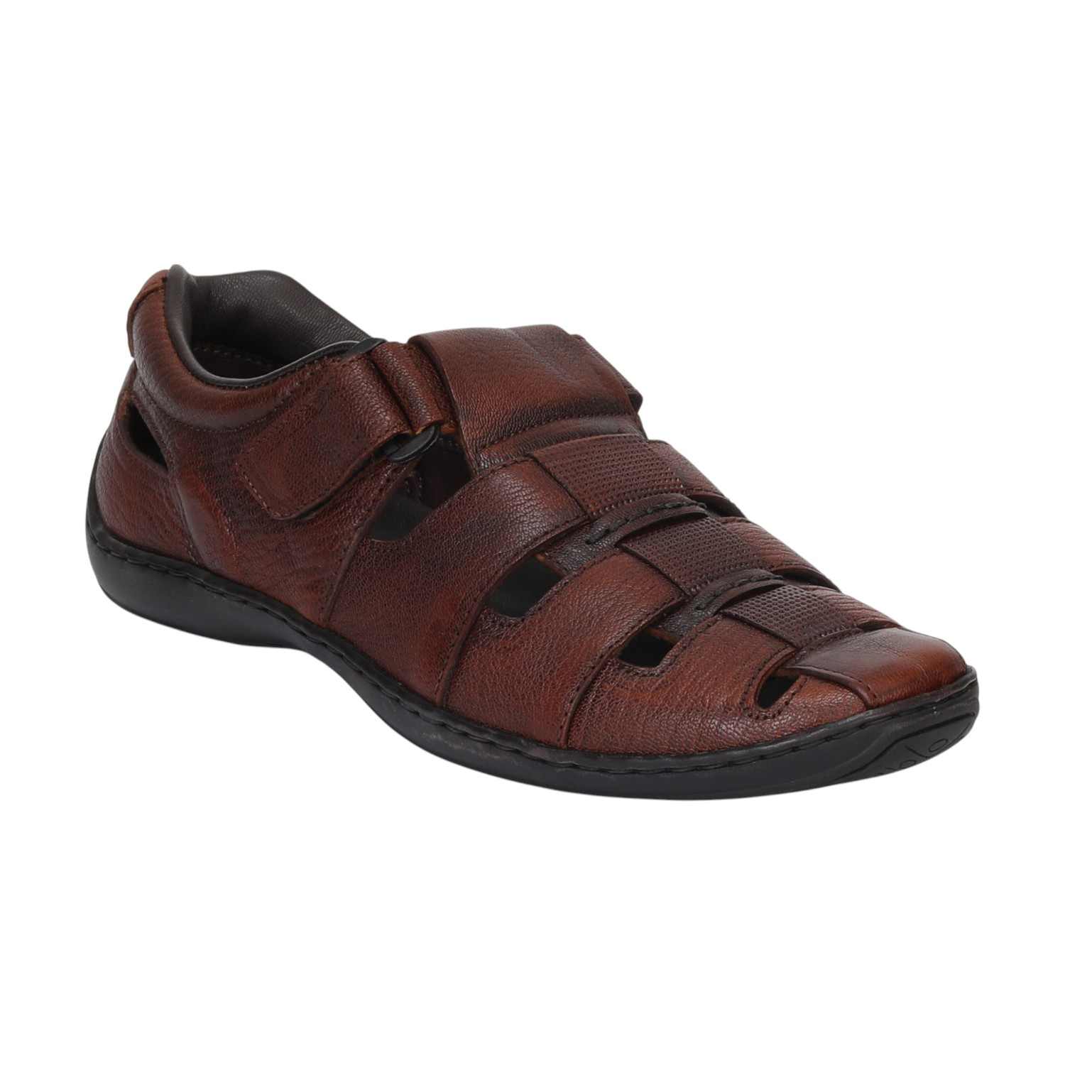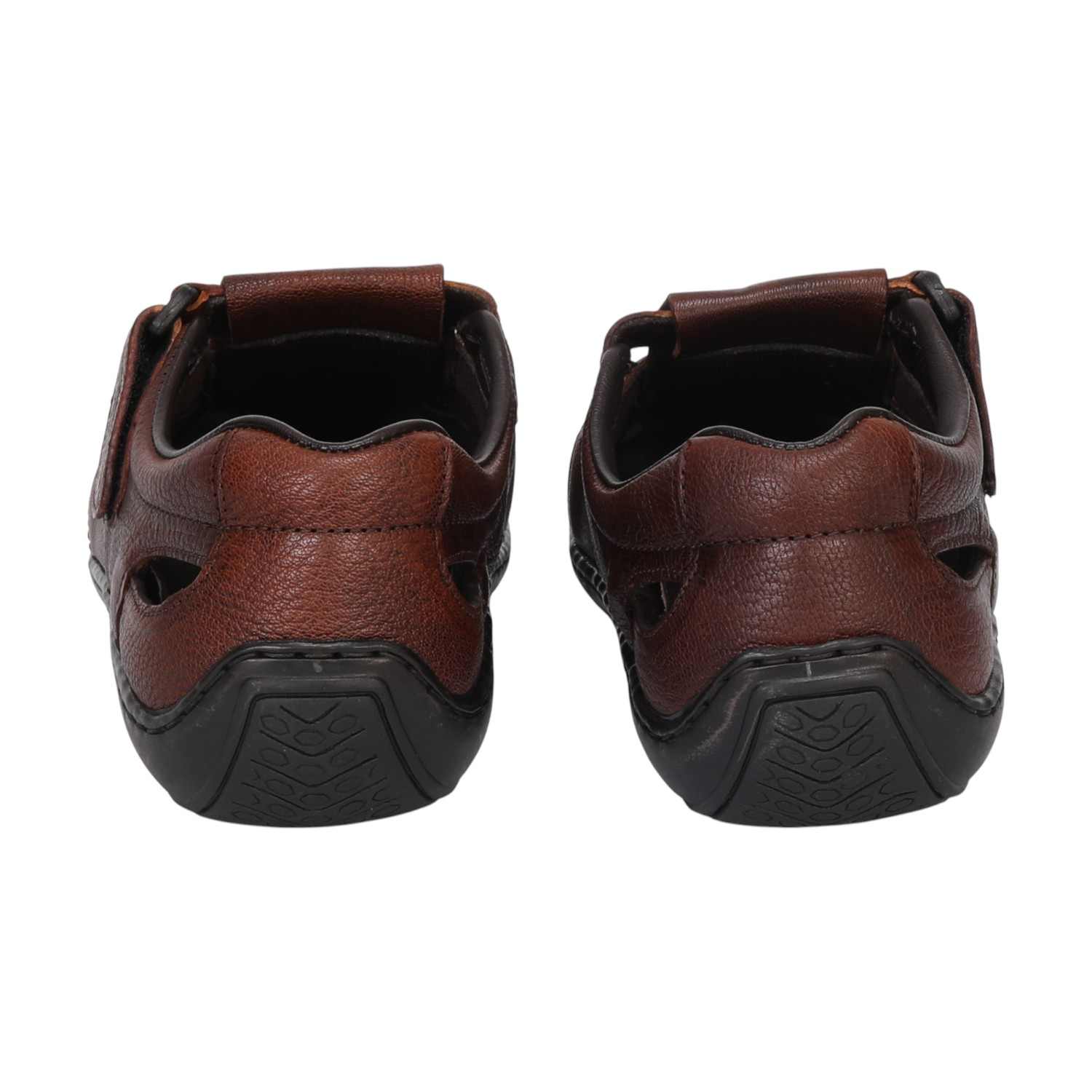 Experience all-day comfort and timeless style with these Men Tan Closed-Toe Leather Sandals. Designed with a breathable woven upper and soft genuine leather, this pair provides a secure, snug fit while keeping your feet cool during warmer days. The closed-toe design offers added protection, making it perfect for casual outings and semi-formal settings.