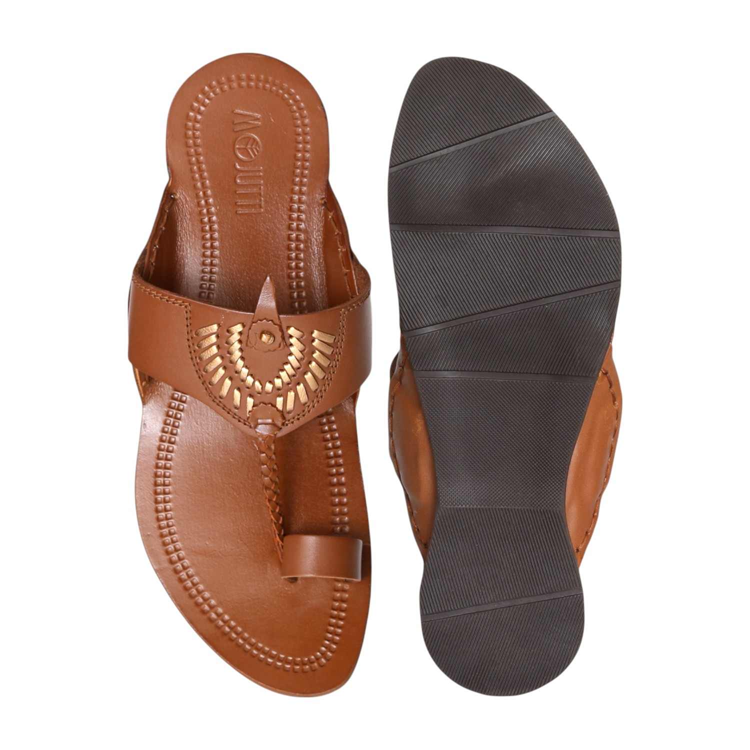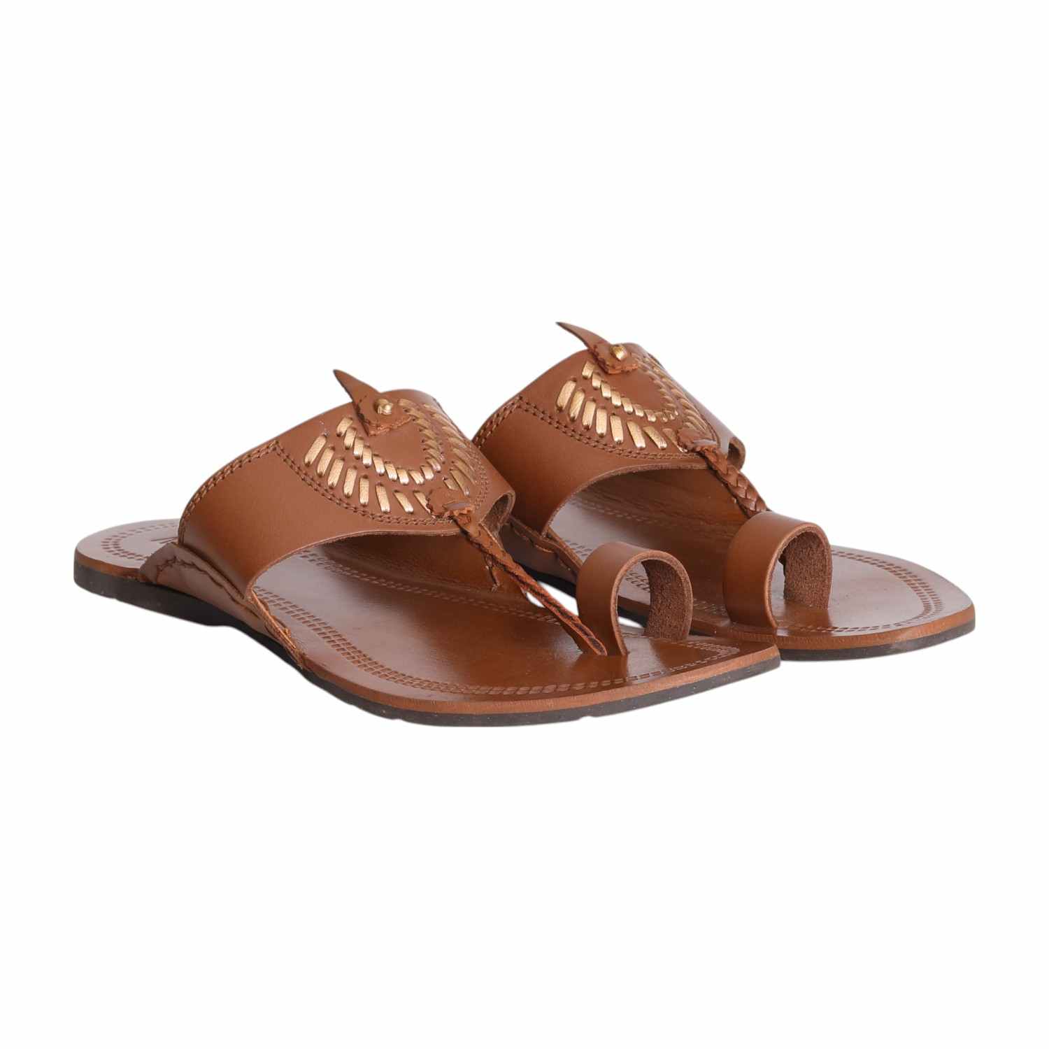 Step out in unique style with our Tan Decorative Strap Sandals. These charming sandals feature a rich tan hue, distinguished by a beautifully decorative top strap with intricate cut-outs and metallic (gold-toned) accents. The design incorporates a comfortable toe-loop for added security. A smooth brown footbed with subtle stitched details and a thin, elegant sole complete the look, making these sandals a perfect blend of traditional craftsmanship and modern flair for any casual or dressy-casual occasion.