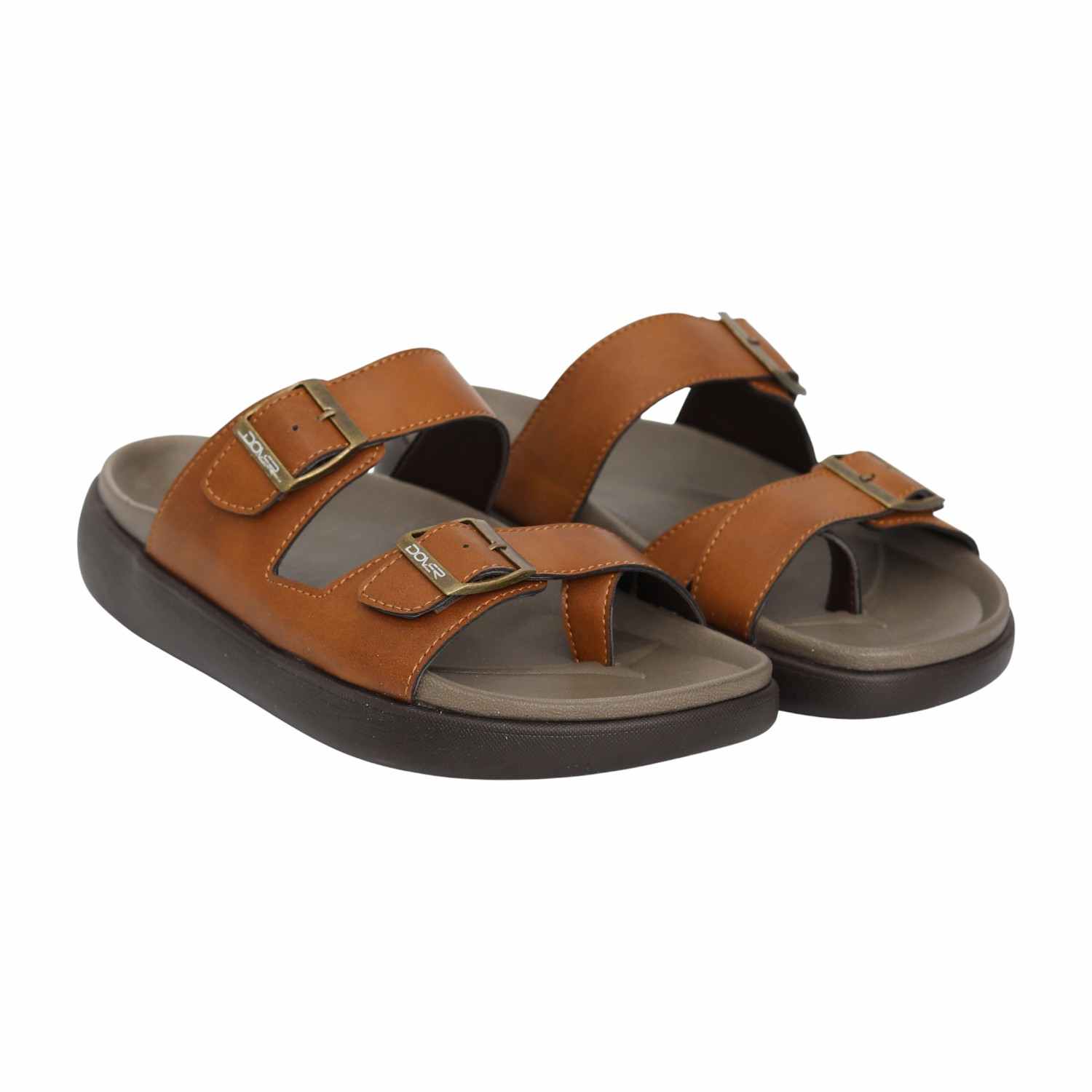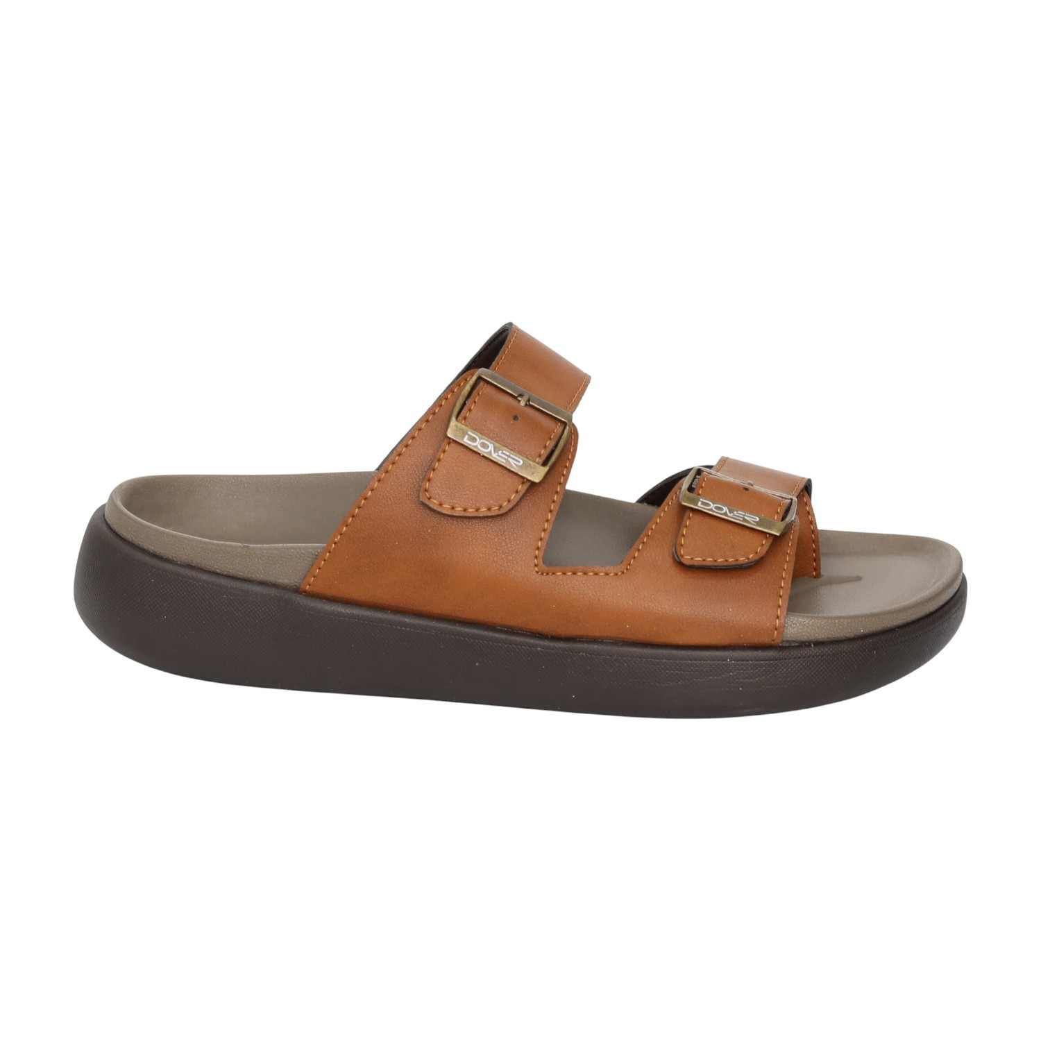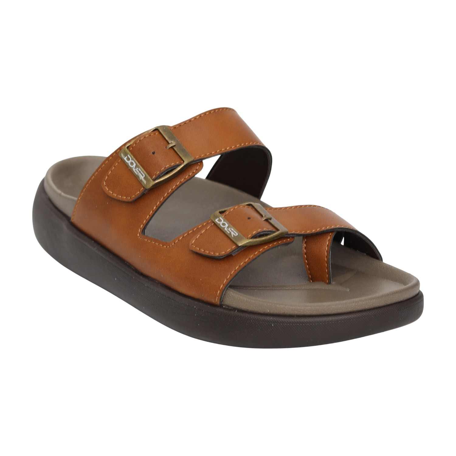Designed with a rugged yet refined look, these sandals feature a sturdy dual-strap construction paired with a cushioned sole for effortless comfort. The tan colour adds a versatile, earthy appeal that pairs easily with casual outfits, while the supportive base ensures comfort from morning to night.