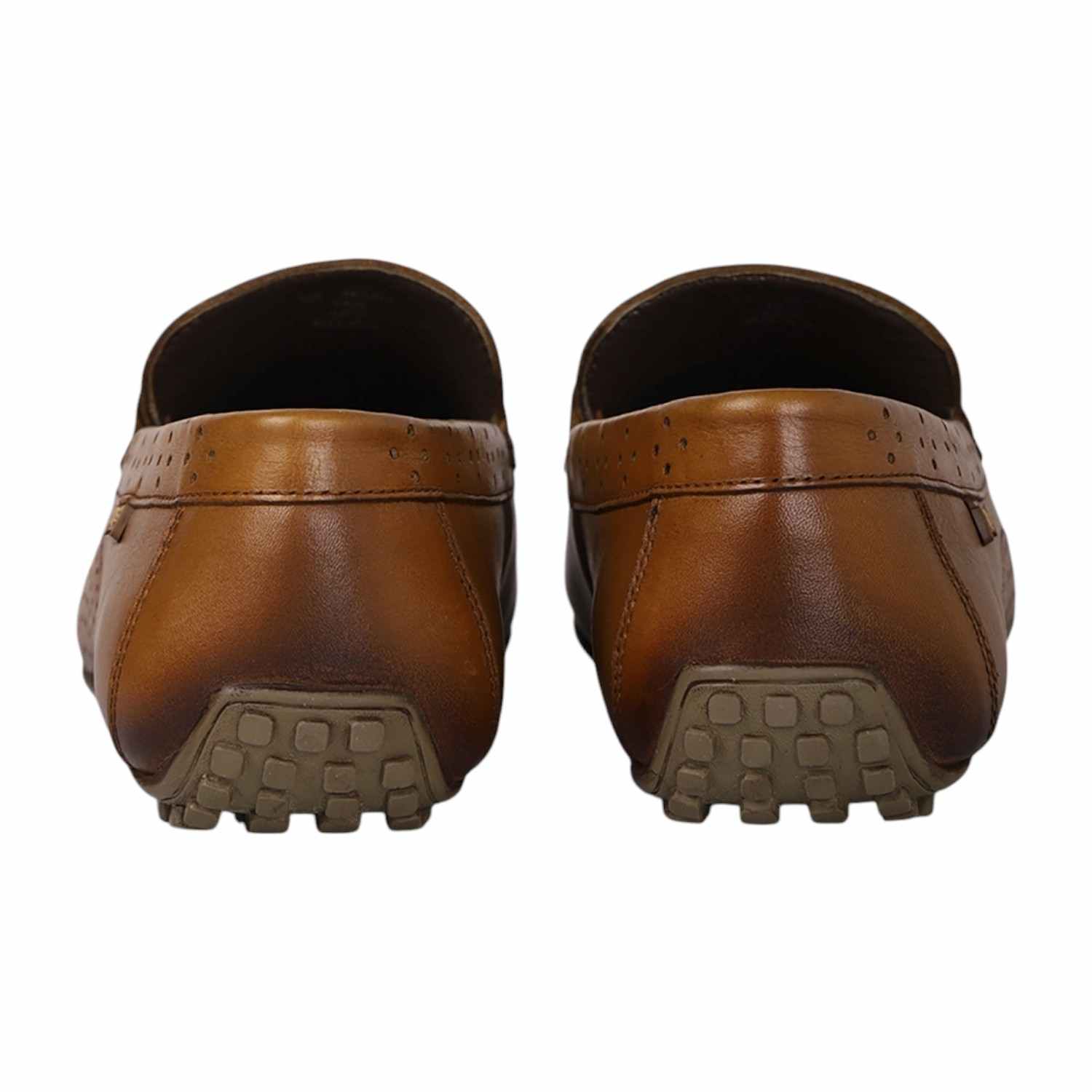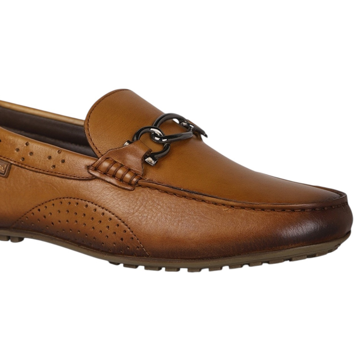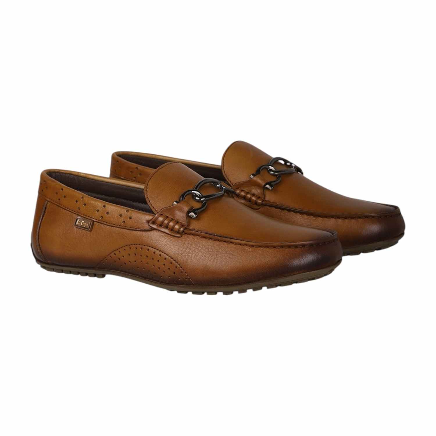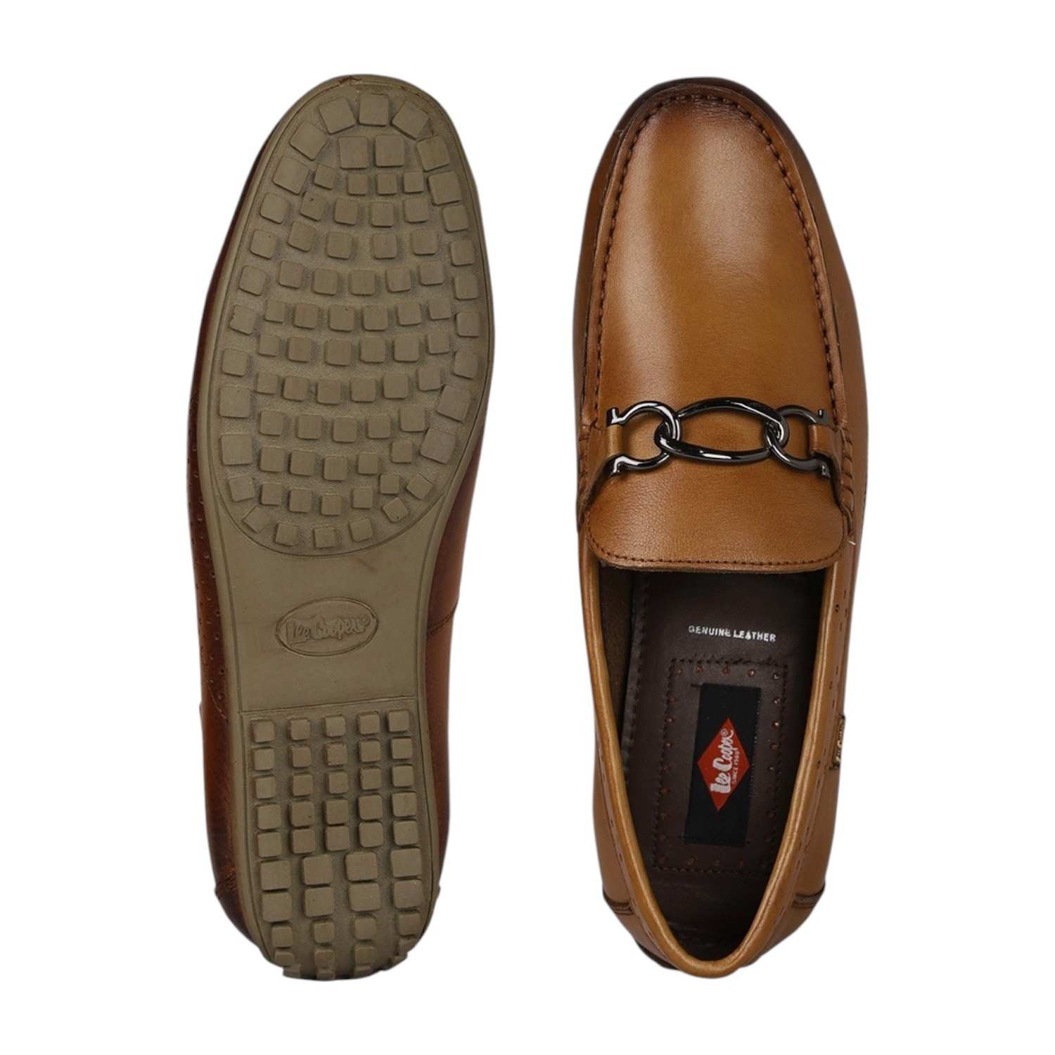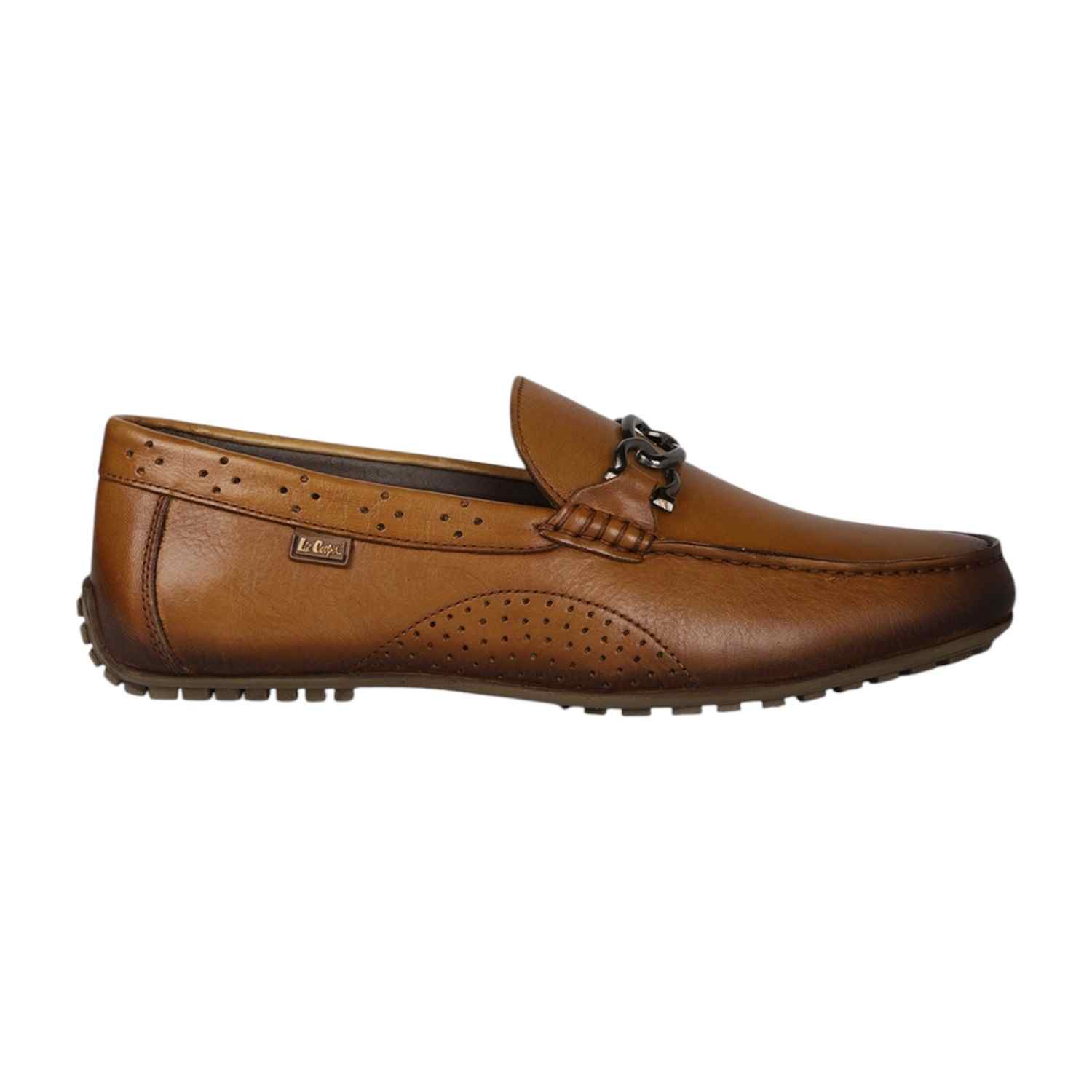 Step into timeless elegance with these tan leather loafers from Lee cooper, designed for the modern gentleman. Crafted with a sleek finish, the shoes feature subtle perforated detailing and a classic metal bit ornament on the vamp for a refined touch. The low-profile rubber sole ensures comfort and grip, making them ideal for both formal and semi-casual wear